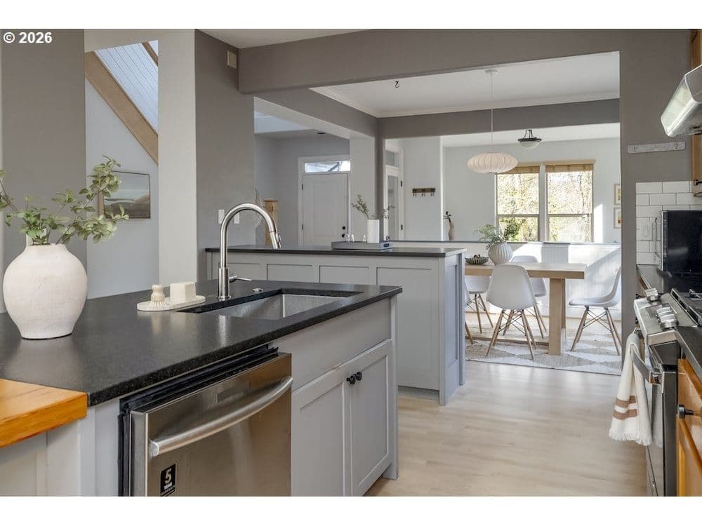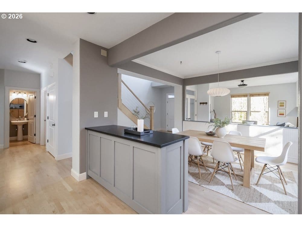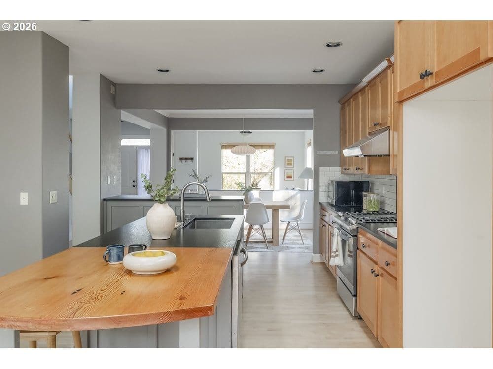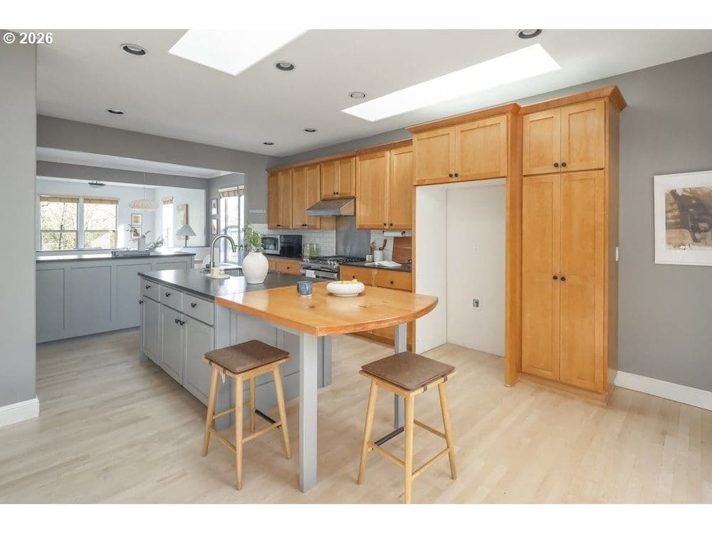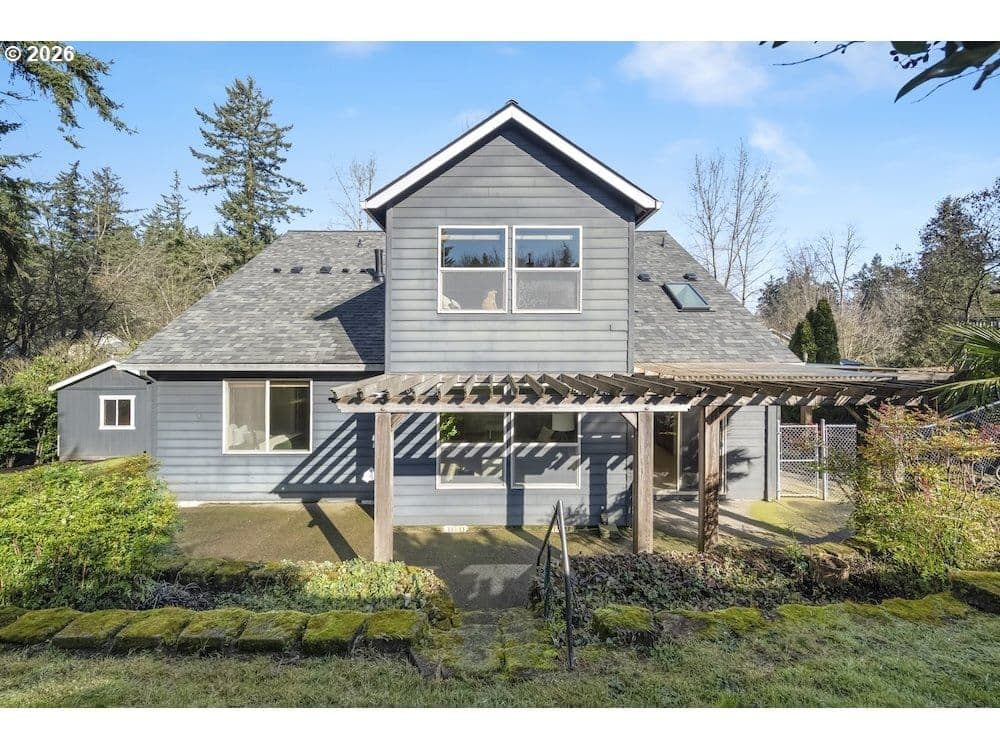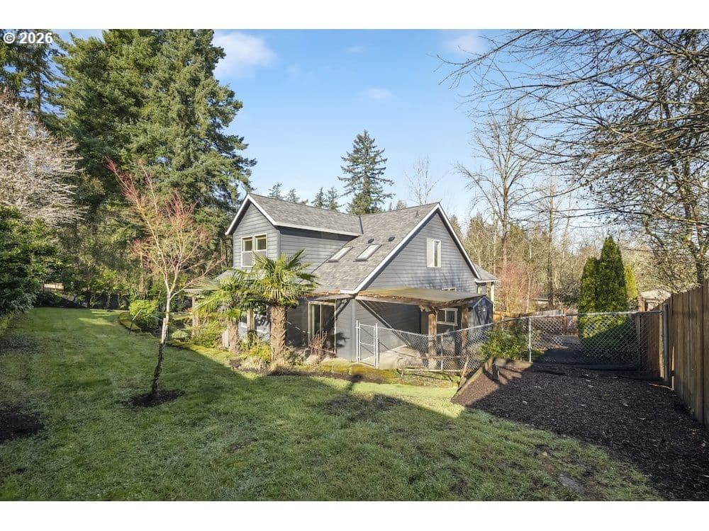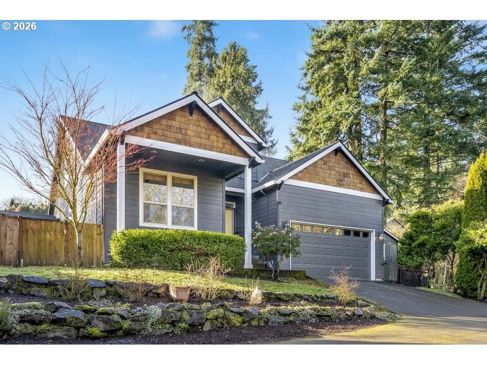 Secret yourself away from society in a beautiful green landscape, with parklands in every direction. Light-filled, modern, spacious, meticulous, with high ceilings, beautiful built-ins, and thoughtful storage solutions, throughout. A smartly articulated floor plan creates two levels of easy living: a generously sized primary bedroom with ensuite bath and walk-in closet on the main, a half bath, bonus office space, and laundry for convenience. The open confluence of contemporary kitchen, dining, and warmly illuminated great room provides social spaces for connection, with stylish floor to ceiling gas fireplace setting a scene. Contemporary appliances, a kitchen island, and room to groove welcomes gourmet gatherings. Upstairs, three additional bedrooms are afforded territorial views and uncommon privacy by clever design. A second full bath completes this level. There's RV parking for checking off road trip wish lists, a large 2-car garage providing secure parking, and there's an separate workshop structure with electricity for weekend tinkering. A covered patio overlooks an exterior that feels serene and secluded. Set out in any direction and you'll find yourself embraced by nature: parks, dog parks, creeks, and forests. Shops and schools nearby - from elementary all the way up to Portland Community and Lewis & Clark colleges - and easy commuting, as well. This beautiful home has much to offer, and is ready for you to turn the key.