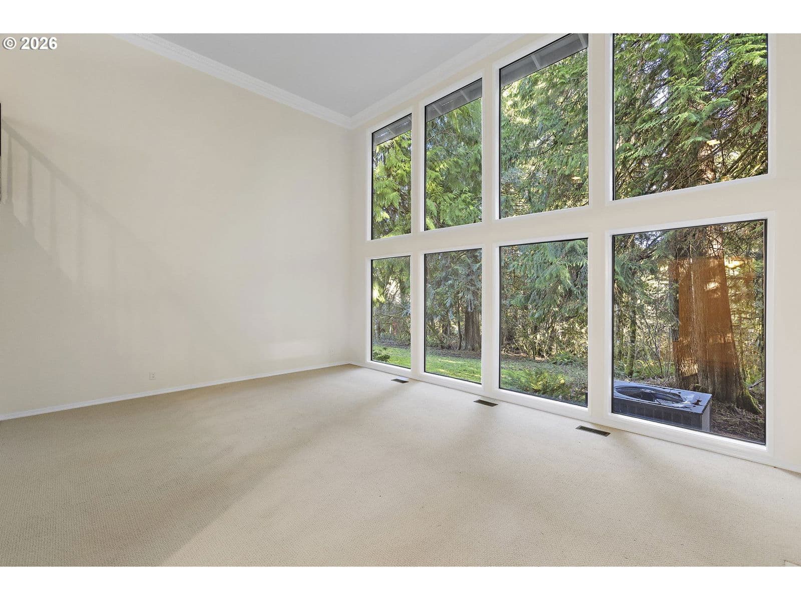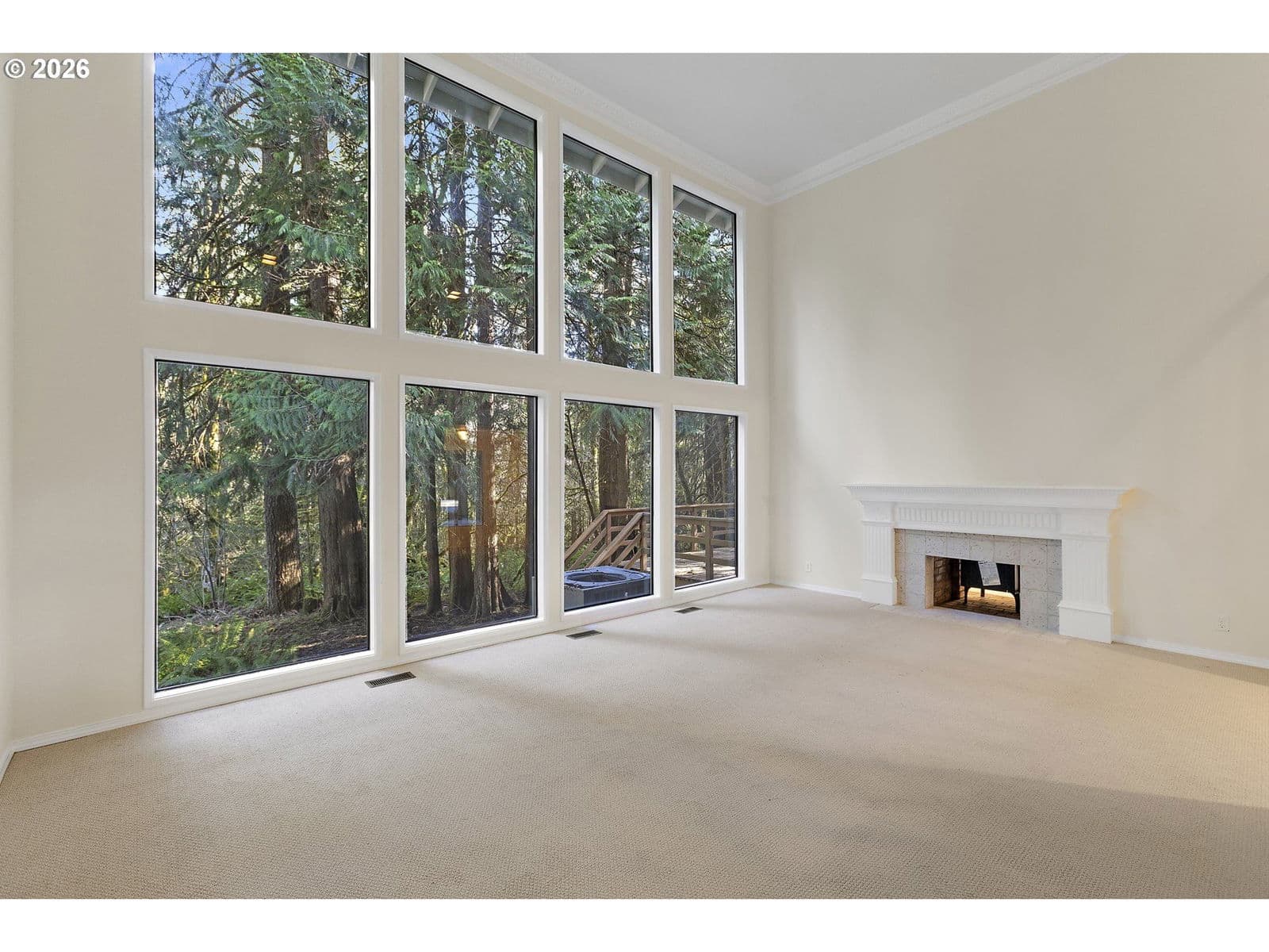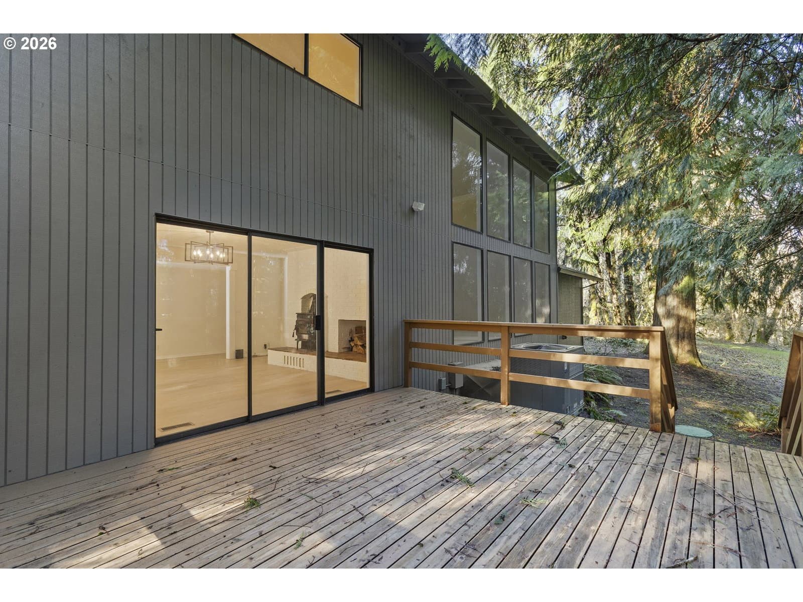 Tucked away on nearly 7 acres of serene, forested privacy, this spacious property offers the perfect blend of comfort, functionality, and natural beauty. Surrounded by mature trees and peaceful views in every direction, the home is filled with windows that frame the landscape and invite abundant natural light throughout. The spacious kitchen features granite countertops, stainless steel appliances, laminate flooring, and generous prep and storage space—ideal for everyday living and entertaining. A nearby laundry room with full sink and full bath adds everyday convenience. Sliding doors from both the living room and kitchen provide easy access to the back deck and expansive yard, creating seamless indoor-outdoor living. The impressive family room showcases soaring ceilings, floor-to-ceiling windows, and a fireplace, making it a stunning gathering space. Two bedrooms are located on the main level, including the primary suite, offering flexible single-level living. Upstairs, a banister overlooks the family room below and leads to three additional spacious bedrooms and a full bath, providing plenty of room for guests, work-from-home needs, or hobbies. Outside, the property truly shines with a large two-car garage, RV parking with covered storage, a barn, and a shed—perfect for equipment, animals, recreational toys, or workshop space. With open areas that provide space for a pasture to host livestock and animals, this property offers incredible potential for hobby farming or country living. Enjoy the peace, privacy, and endless possibilities this exceptional acreage offers, all while remaining within reach of everyday amenities. Easy access to the Banks Vernonia Linear Trail just across the road.