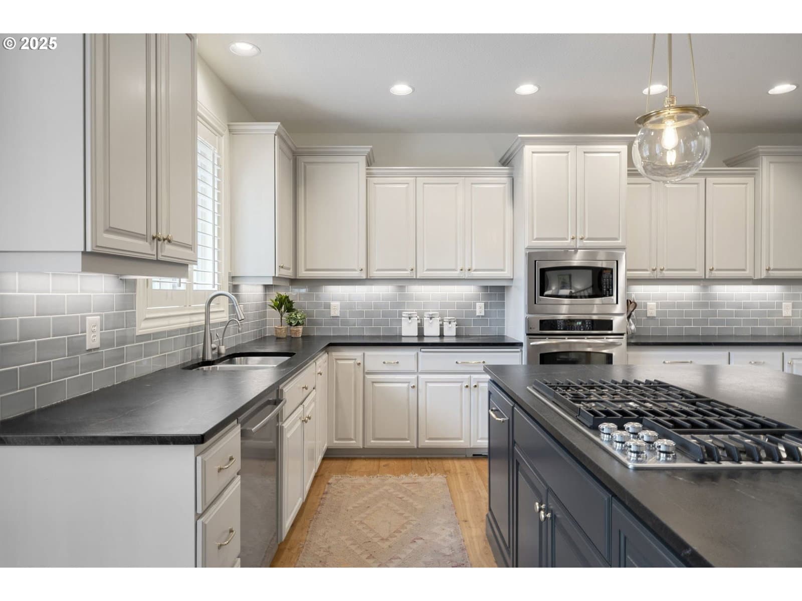 Beautifully crafted by Renaissance Homes, this certified GreenBuilt residence blends elegance with modern upgrades in a highly sought-after Camas school district neighborhood. Inside on the main level, you’ll discover brand-new wide-plank D&M White Oak engineered hardwood floors, soaring ceilings, fresh interior and exterior paint, and a dedicated office for remote work or study. The fully remodeled kitchen (2021) is the heart of the home, showcasing new soapstone countertops, a custom tile backsplash, a spacious cook island, pantry, and new stainless steel Energy Star appliances, including a refrigerator and dishwasher. Upstairs, four generously sized bedrooms are complemented by new Shaw carpet and a versatile 20x12 bonus room. Additional features include updated faucets, new hot water heater, two high-efficiency furnaces, central vacuum, a fresh-air circulation system, system wiring for surround sound, and custom window coverings with Plantation shutters. Step outside to enjoy a large fenced yard, an expansive new cedar deck with seasonal Mt. Hood views, and new side fencing—perfect for entertaining or relaxing. Located just half a block from the neighborhood pond and close to schools, this home offers a rare combination of comfort, quality, and community. OPEN HOUSE: Sunday, 2/15 Noon-2PM