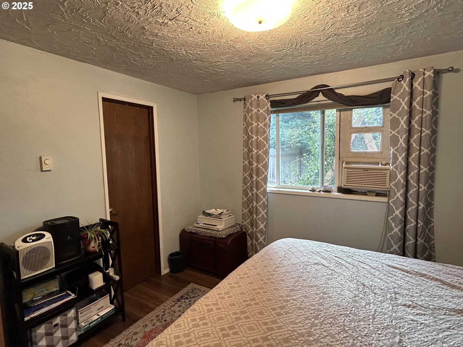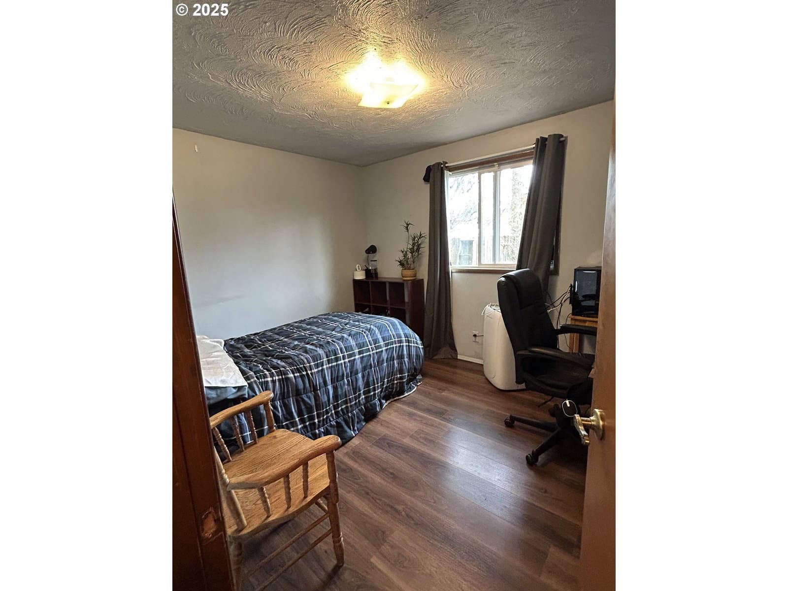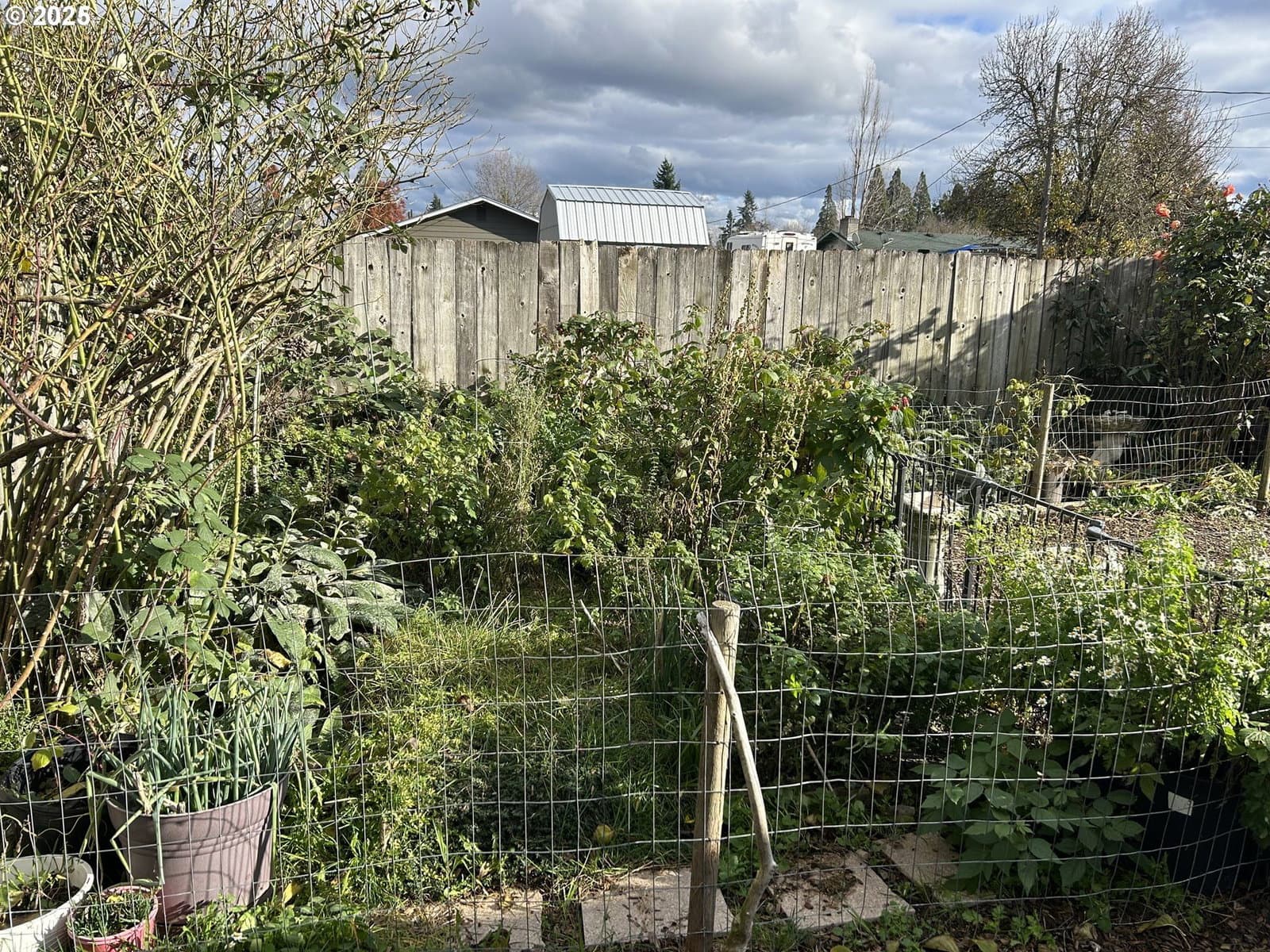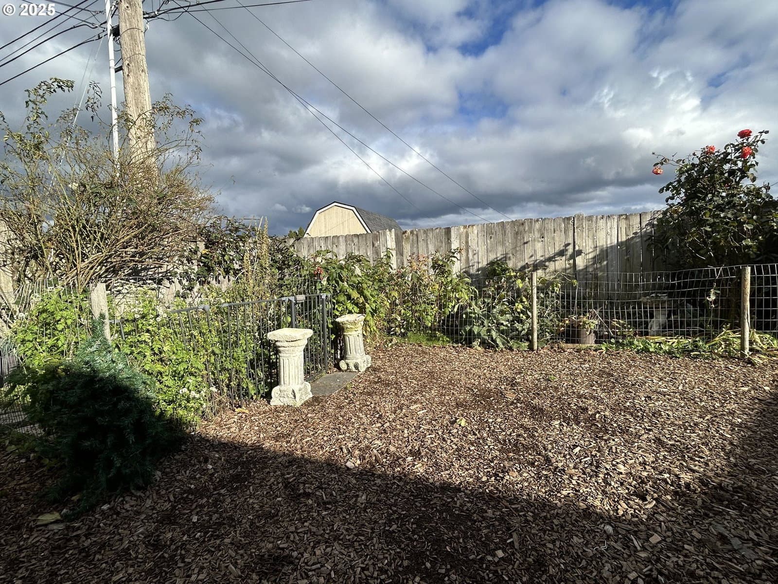 Cozy ranch style home that is recessed from the street. This well cared for home has three bedrooms and one bathroom. From the entry hallway you can enter the living room or kitchen. The eat-in kitchen includes a built-in oven with an electric range, microwave above the range, built-in dishwasher, and freestanding refrigerator. Living room with wood burning fireplace. Jack and Jill style bathroom with entry from the primary bedroom and from the hallway. Bathroom includes a shower over tub and a linen cabinet with a separating door from the rest of the bathroom. Each bedroom comes with window AC units. Updates include vinyl plank flooring throughout, a newer water heater installed this year, and a new roof as of January 2025! Garage is semi-converted with a floating wall and enough room to park a motorcycle and/or bikes as some examples. Washer/dryer hook-ups are located on the other side of the floating wall. This semi-converted space has much potential for various possibilities. Backyard is fully fenced, with many established plants, and a covered patio. Plants include and not limited to: strawberry, raspberry, blueberry, artichoke, onion, jasmine, evergreen clematis, hops, 2 lilac trees, an herb garden and more. It has come to our attention that some navigation systems are giving directions to turn onto 1st Place or 1st Street, please turn onto "Mill Street," the property cannot be accessed from 1st. Thank you. This home is located on a flag lot down a long driveway accessible from Mill St. behind another home. The driveway is across from cross street "K."