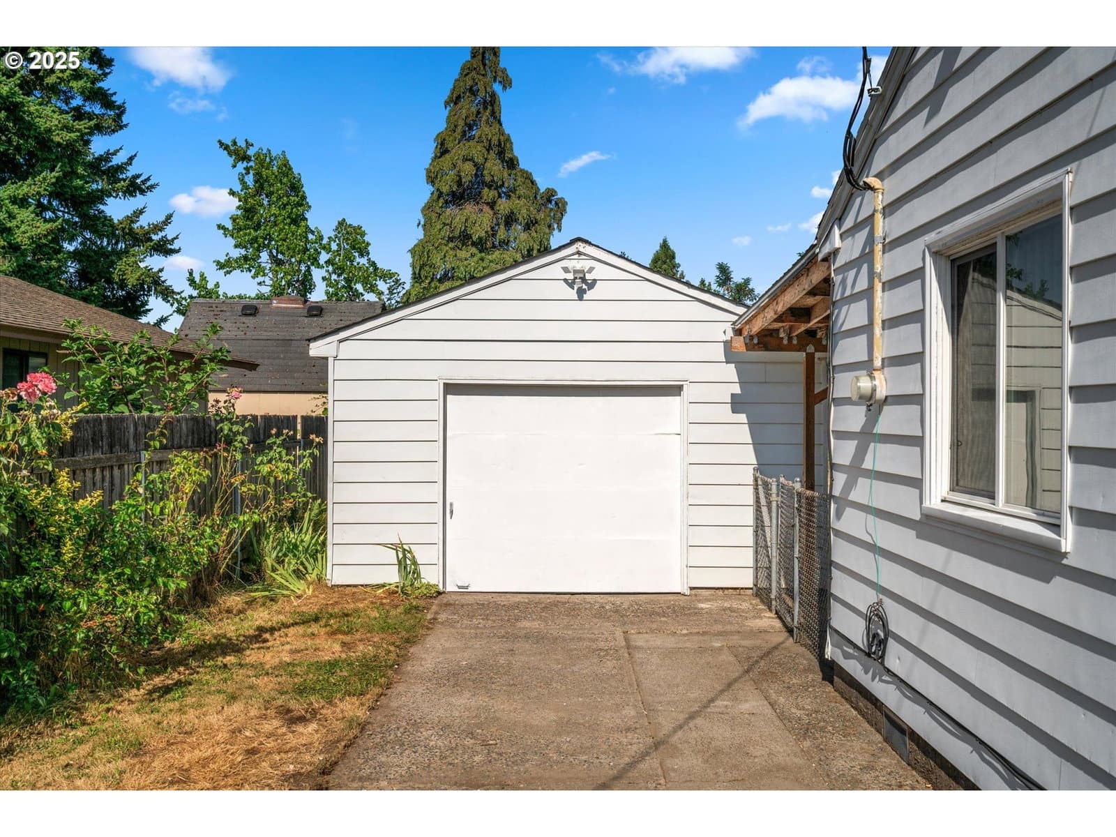Imagine living just 17 minutes from everything that matters: the vibrant pulse of Downtown, the convenience of the airport, the family-friendly fun of Happy Valley, and a diverse array of shops and restaurants. This is the kind of location that doesn't just offer a place to live, it offers a lifestyle. Forget long commutes and embrace easy access to all the best Portland has to offer. Step inside this meticulously updated 1954 home and feel the difference. Gleaming, refinished hardwood floors lead you through a bright and airy space, recently enhanced with fresh interior paint. The remodeled bathroom and refreshed utility room with a new roof add a touch of modern comfort. Spend your evenings relaxing under the covered patio, a perfect spot for entertaining or simply enjoying the quiet of your large, private backyard. The detached garage features a finished office space, perfect for remote work or creative pursuits, and can be easily converted back for full garage use. But the real value of this property lies in what you can't see on the surface: a spacious 7,840.8 sqft lot with R2.5 zoning. In a city where space is at a premium and growth is constant, this is your golden ticket. This isn't just a yard; it's a foundation for your dreams. Buyer to do their own due diligence regarding development potential. [Home Energy Score = 8. HES Report at https://rpt.greenbuildingregistry.com/hes/OR10241468]