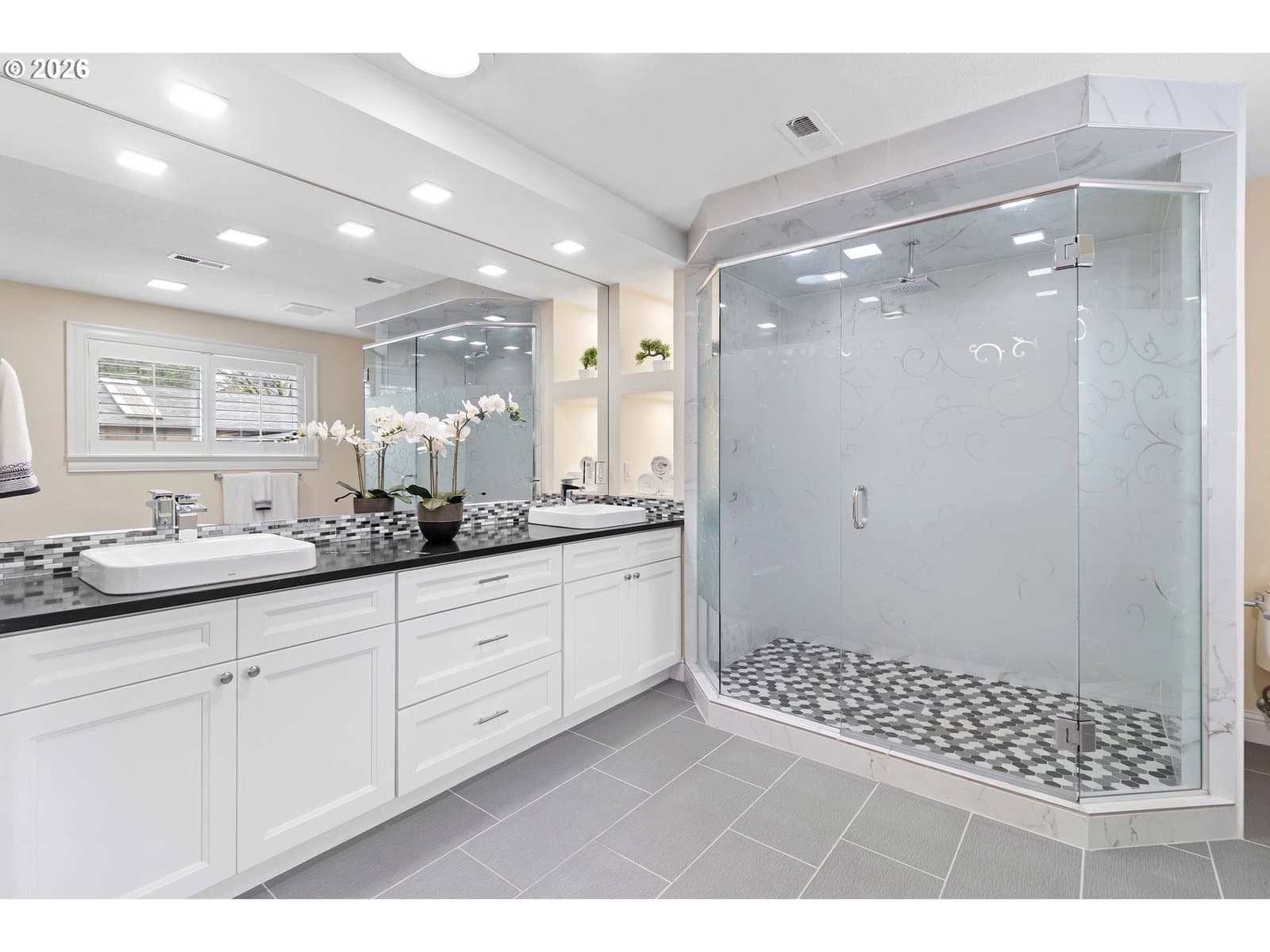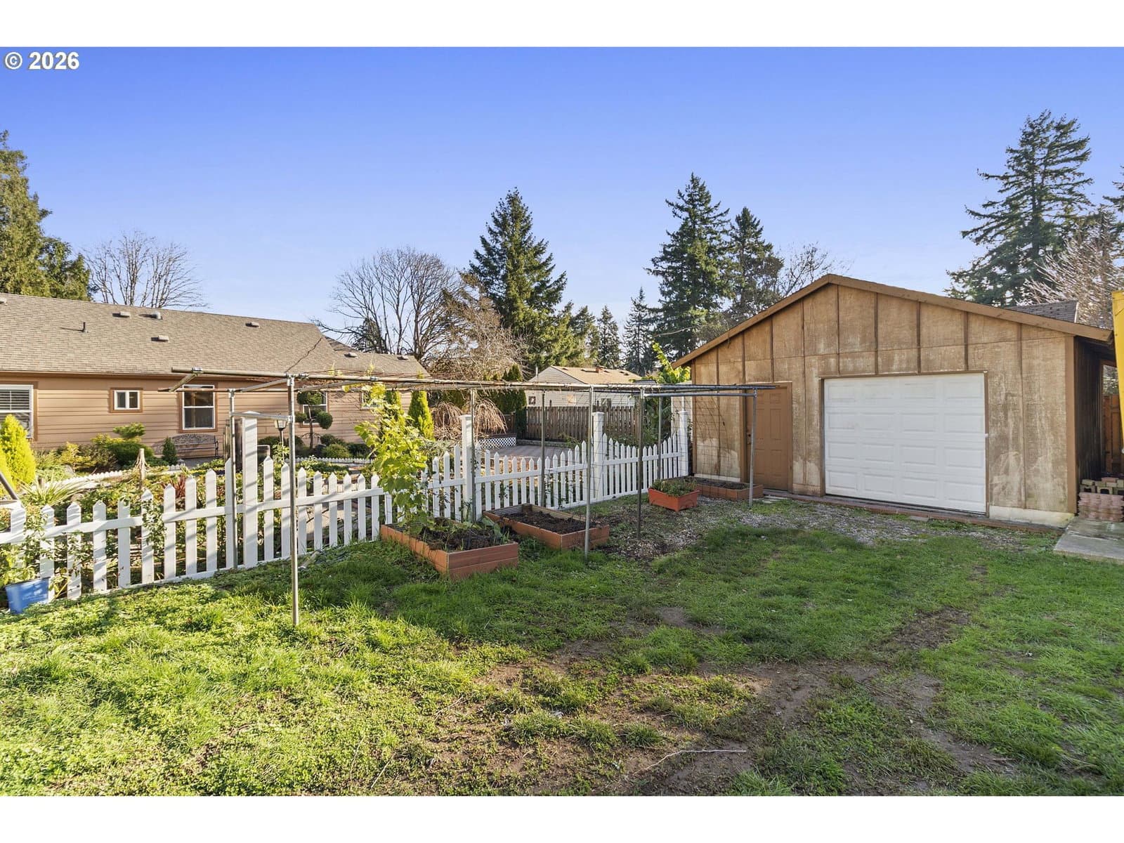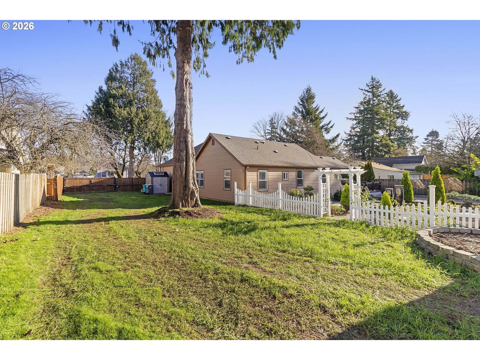This well maintained and updated 1 level contemporary craftsman home is a rare find, with spacious rooms, wide accessible hallways, and grand spaces with 10' ceilings in the main living areas. It was fully remodeled and updated in 2007 with a 1400 S/F front addition that included the gourmet kitchen, main living area, office, laundry room and a deep 2+ car garage. Additional interior improvements include wood floors, custom shutters on all windows and a remodel of the primary bedroom bath and suite in 2019. The kitchen features abundant cherry cabinetry, granite counters with an eating island, gas convection stove, a sleek and powerful range hood, dual sinks and a microwave nook. The large, spa-like primary suite looks over the garden and offers a huge walk in shower with dual shower heads, dual sinks with quartz counters, and is currently open to the 4th bedroom for added space and flexibility. Gardeners will love the sunny, level .44 acre lot with raised beds, fruit trees and Zen meditation garden. Have hobbies or a business? The backyard has a detached garage/shop with 220 power, plus additional storage containers that offer incredible opportunity to pursue your goals and passions. The yard is fully fenced and has a large, custom gate to allow for RV access/storage. An expansive back deck with garden view and spacious paved patio make this a fabulous place to entertain. The finished attached garage has high ceilings, epoxy floors, plug for back-up generator, and tall garage doors allow high vehicle/van access and room for your toys for work or play. If you have future development dreams, check with the City to find out lot division or cottage cluster possibilities on this R-7 lot. Call your agent to schedule a viewing today! [Home Energy Score = 4. HES Report at https://rpt.greenbuildingregistry.com/hes/OR10093363]