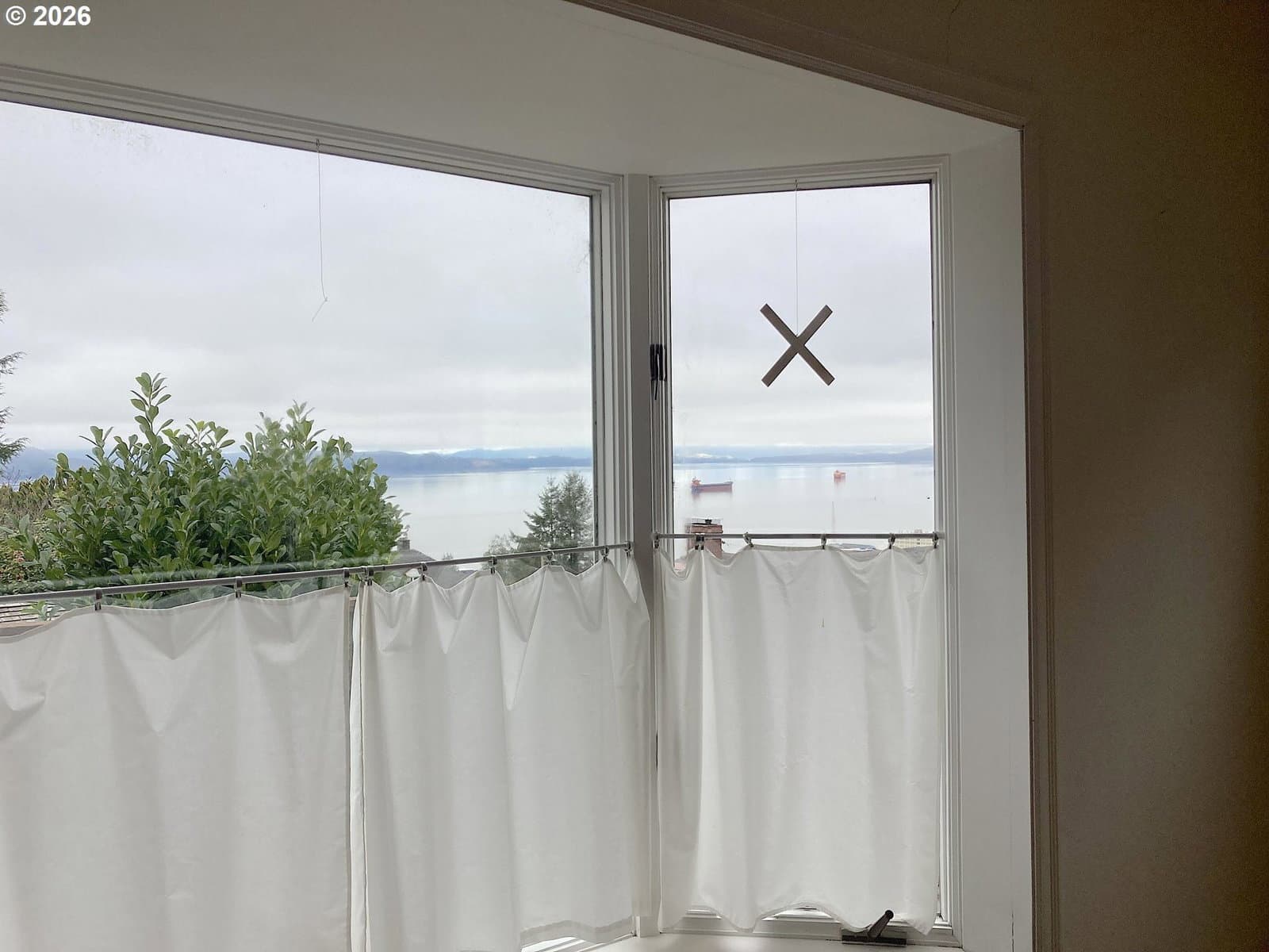 Astoria Hilltop Cape Cod house with stunning views of the Columbia River from two floors, from the house and from the deck outdoors. This home features three bedrooms, two baths, a large basement, and a detached garage. This house has real charm!