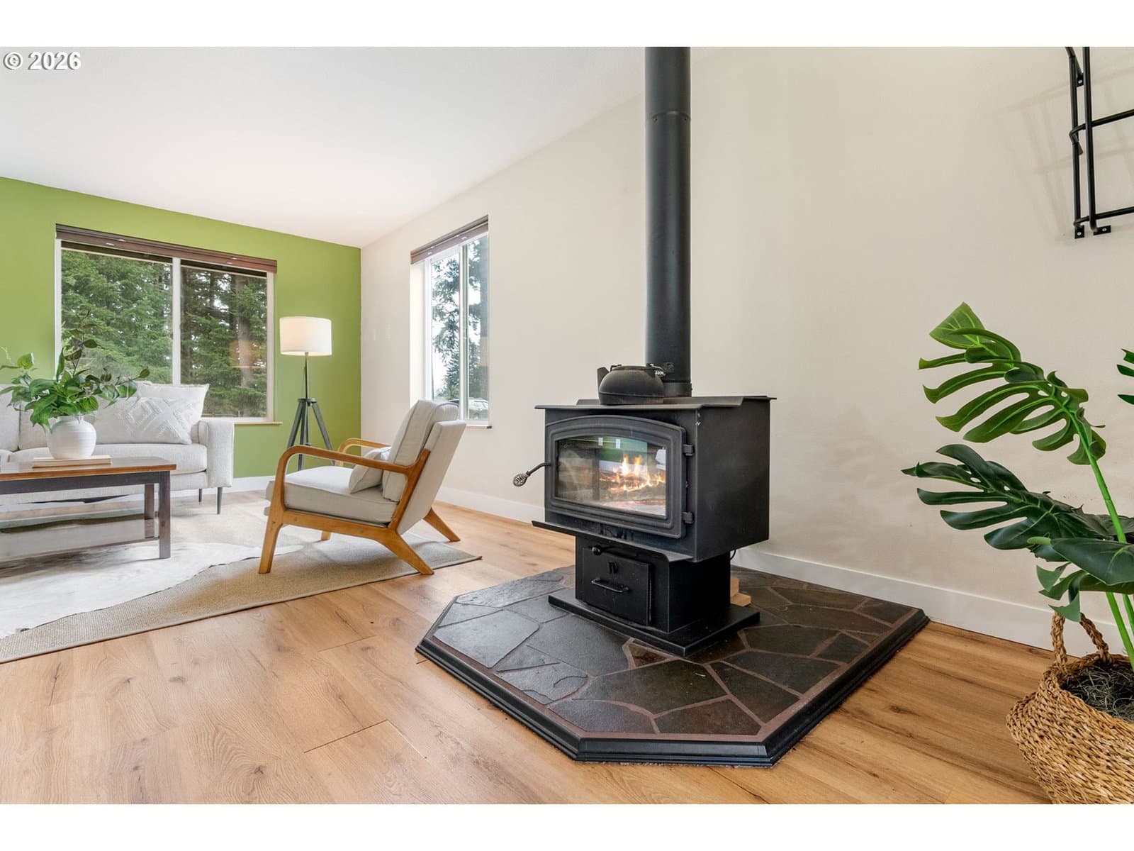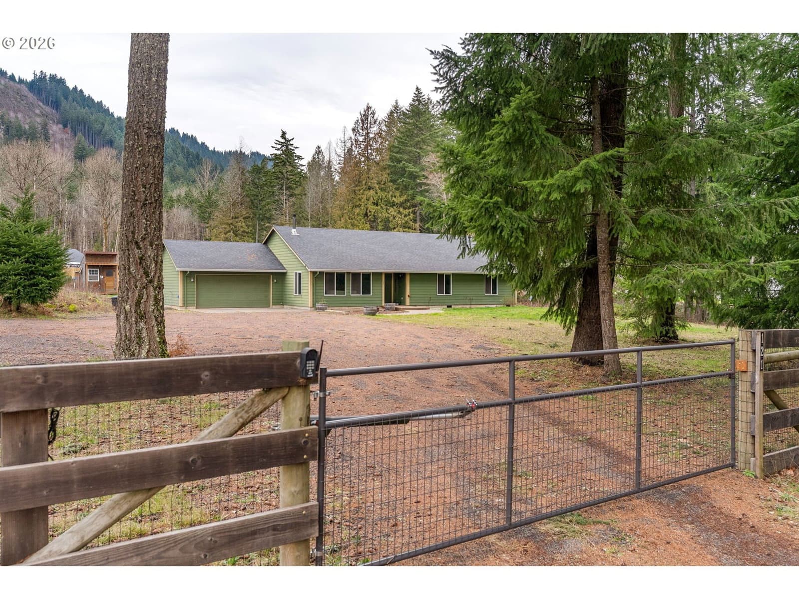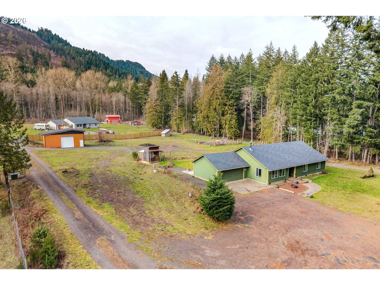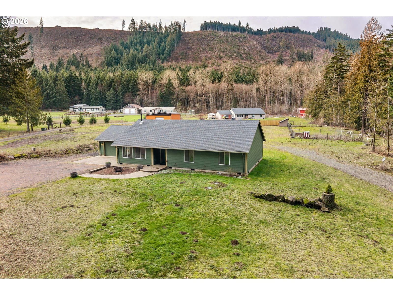 Spacious, well-maintained home on 2.37 acres! This open concept home invites you in with a cozy wood fireplace and thoughtful single-level layout. Kitchen features include a large pantry, breakfast bar and stainless steel appliances. The dedicated dining area has direct access to a back patio perfect for outdoor entertaining. Recent upgrades since 2022 include mini-splits, LVP flooring, interior paint, and new kitchen appliances. Located in Carson, the fully fenced property includes a gated entry and offers both close proximity to town and outdoor recreation, while being surrounded by forest and a seasonal creek. It is perfectly set up for hobby farming with a fully enclosed pole barn, carport, two chicken coops, fenced garden, fenced pasture with stable, RV parking, and plenty of room to expand.