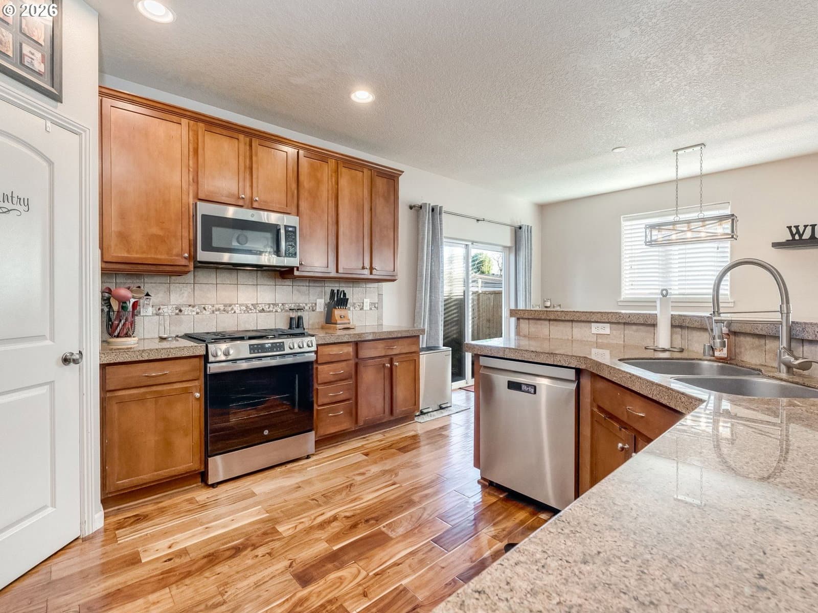 Just when you thought your dream home was impossible to find, here it is! Set on nearly half an acre, this property offers exceptional outdoor living, from the park-like backyard which is shaded with mature white oak trees, fire pit gathering area, garden space, dog run, hot tub, covered back patio, garden shed, and a she-shed, to the peaceful greenspace with a quarter-mile trail and bridge where deer often wander through. Step inside and you’ll immediately feel how thoughtfully designed this home is for both comfort and connection. The main level features multiple living and dining spaces, perfect for hosting, relaxing, or everyday life. The family room flows into the dining area, with an additional formal dining or flex space that adapts to your lifestyle. A large office with French doors provides a quiet, light-filled workspace. The kitchen is the heart of the home and truly delivers, featuring a brand-new gas range, walk-in pantry, and a dedicated coffee bar that makes mornings a pleasure and entertaining effortless. This space is both functional and welcoming. Upstairs, all four bedrooms are conveniently located, creating a comfortable and cohesive layout. An additional family room offers the perfect spot for movie nights, play space, or a relaxing retreat at the end of the day. This home is completely move-in ready, with the washer and dryer, refrigerator, hot tub, and patio furniture all included so you can settle in and start enjoying it immediately. Plus, an EV charger installed in your 2.5 car garage. Ideally located near Trader Joe’s, grocery stores, hospitals, dining, shopping, and freeway access, this home offers the perfect balance of an unbeatable outdoor lifestyle with convenience to all the comforts of city life.