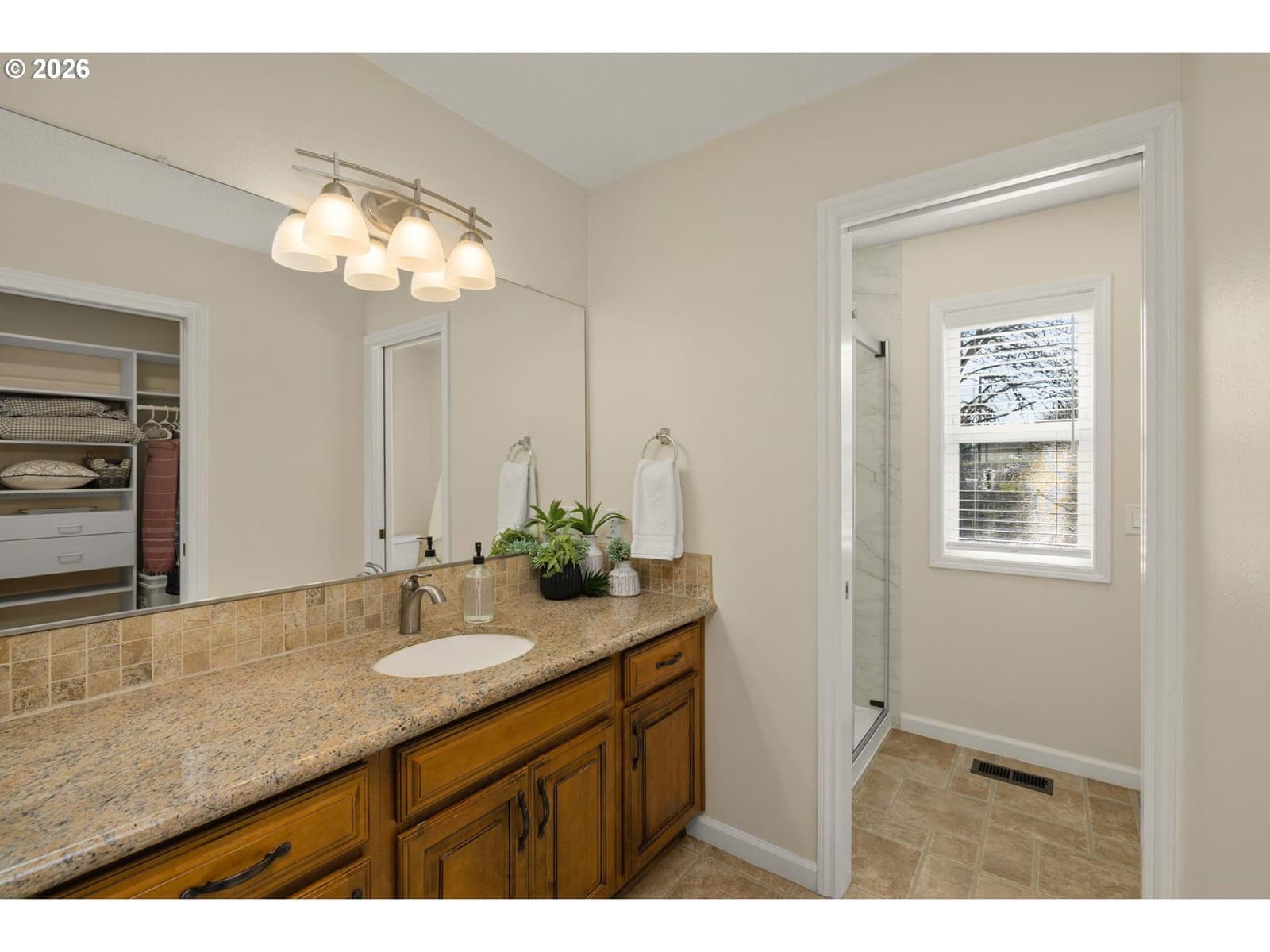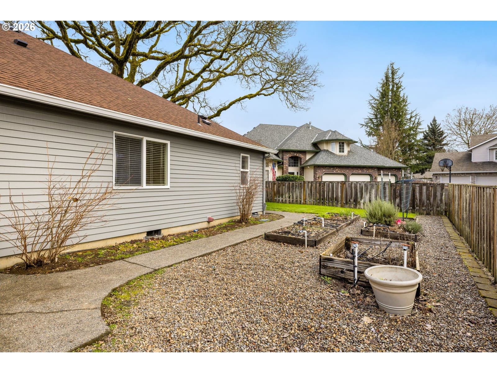 Professionally pre-inspected for Home/Sewer/Radon/HES/AirQuality for a smooth transaction. Desirable Jackson School single-story home with a generous 3-car garage. The upgraded kitchen showcases custom cabinetry and granite countertops, blending elegance with everyday convenience. A vaulted living room highlighted by oversized windows invites natural light and enhances the home’s spacious design. Step outside to find a tranquil backyard with patio space for outdoor entertaining and raised garden beds, ideal for cultivating your favorite plants or vegetables. Recent updates include the dishwasher, central AC system, water heater, garage door opener, blinds and fresh exterior/interior paint, ensuring the home feels like new. A true treasure in home ownership. [Home Energy Score = 7. HES Report at https://rpt.greenbuildingregistry.com/hes/OR10244154]
