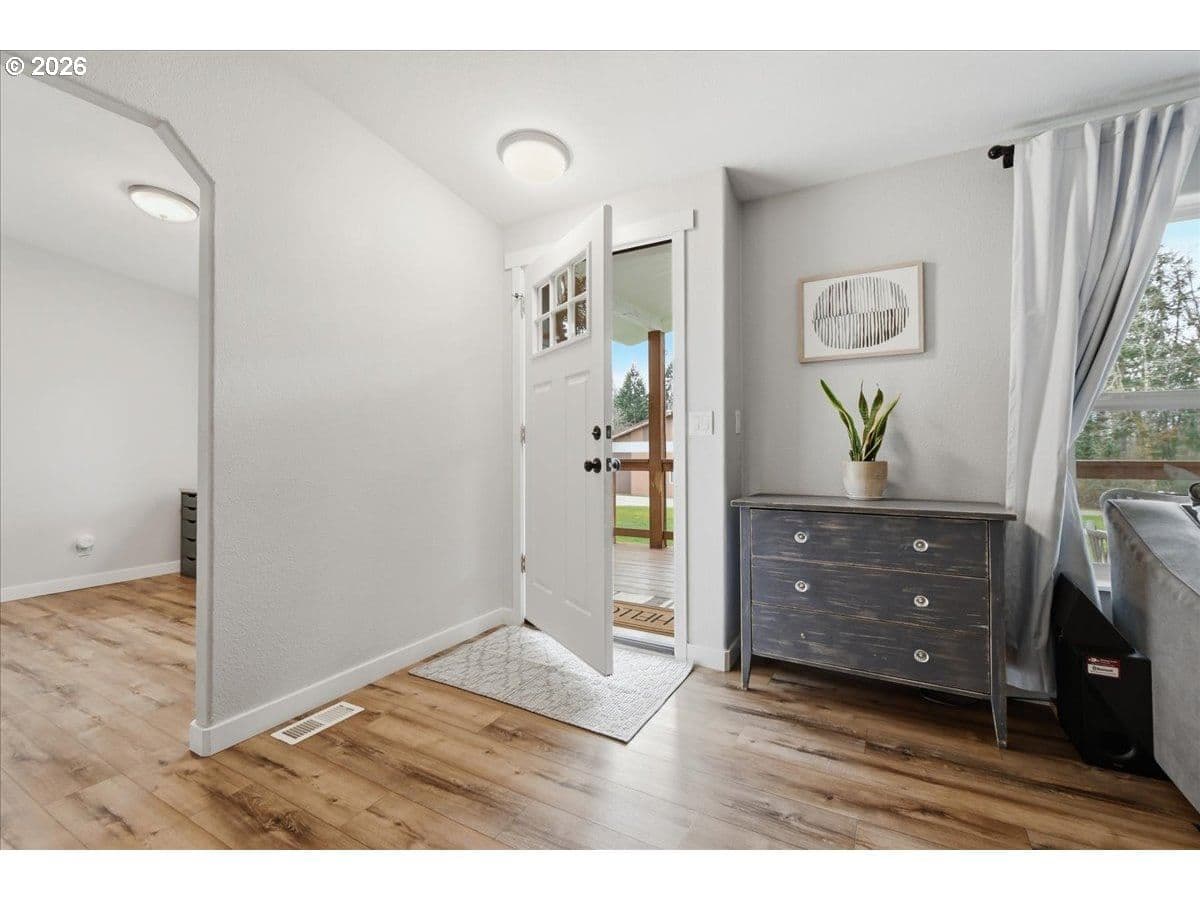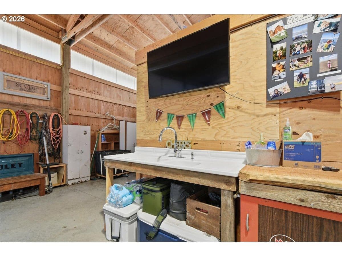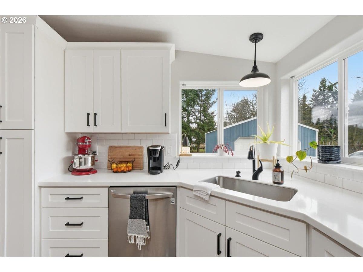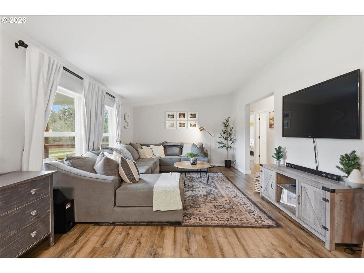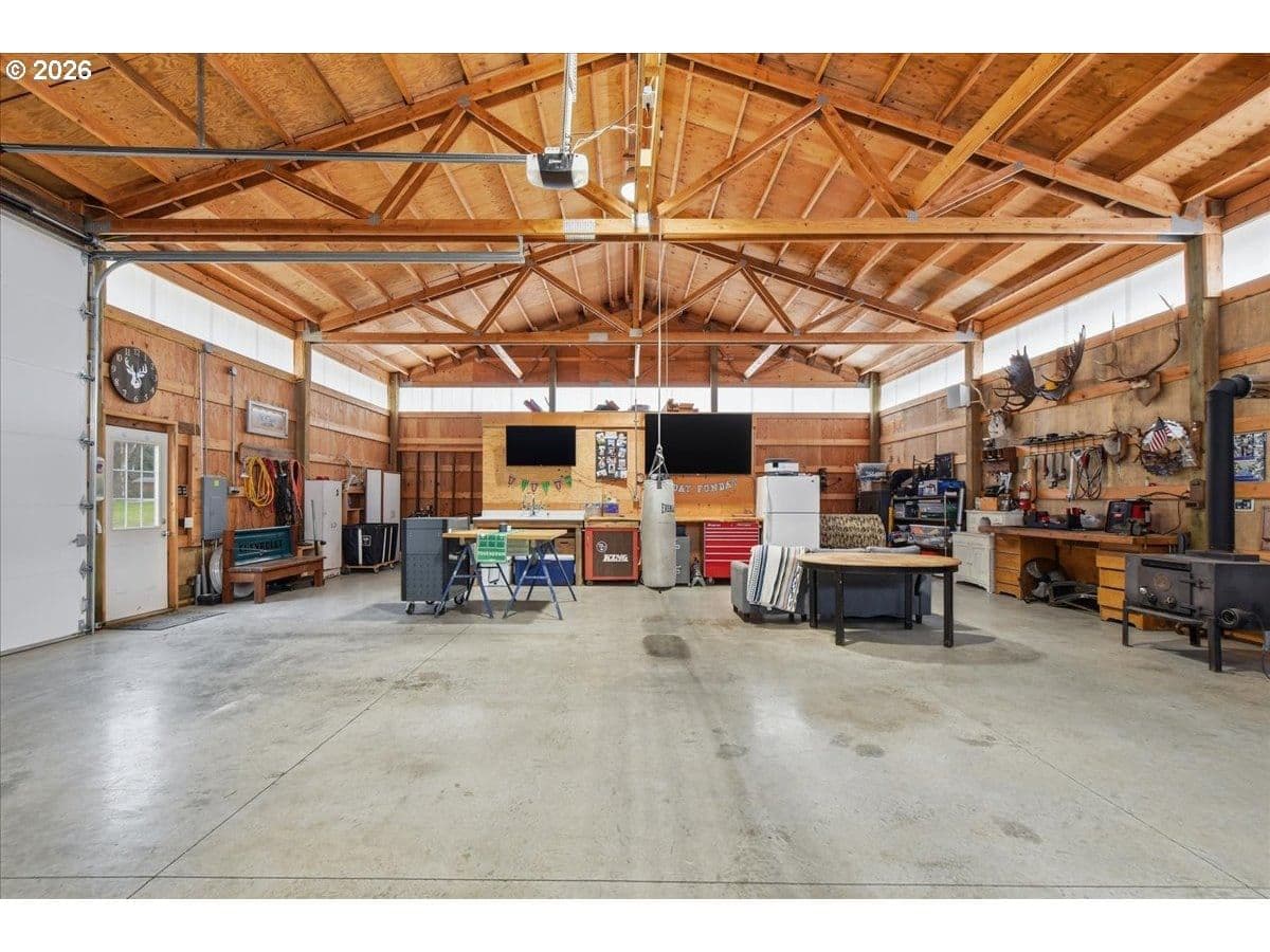 Ridgefield Private Acreage+Huge Shop!1876 SF Home on 4 private acres in sought-after Ridgefield location. Remodeled and updated throughout. Open bright and light vaulted living room with LVP flooring, Wood-stove. Office area. Updated kitchen has NEW custom cabinets, center island, Stainless appliances,Formal dining room with French doors leading to oversized covered patio. Spacious primary suite has double closets, soaking tub in primary bath. Property features 2160 SF detached shop, oversized doors, guest bedroom, plus a detached two car garage, chicken coop, Gated entrance, fenced flat 4 acre. Located in highly desirable Ridgefield School District. Plenty of space for hobbies, storage, or home business.