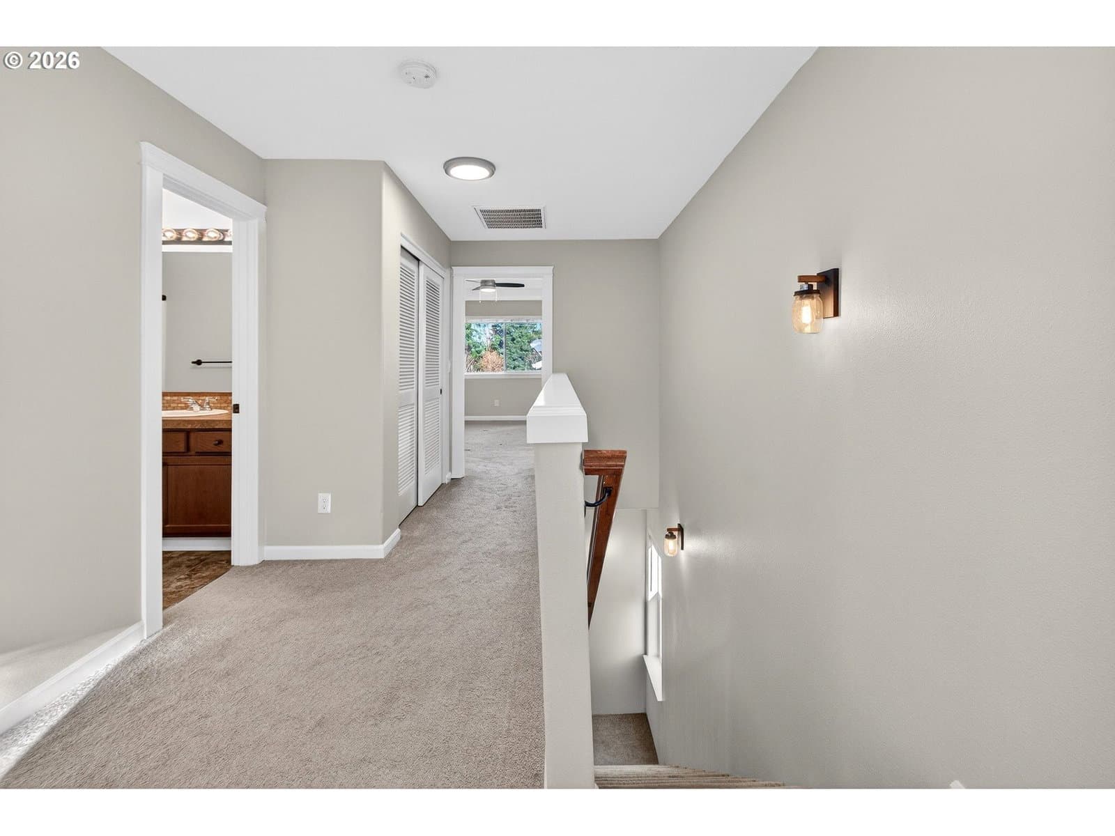 Beautifully designed two-level home offering 3 bedrooms and 2.5 baths, ideally located in the desirable Oregon City area. The main level features hardwood floors throughout and a bright, open-concept layout that seamlessly connects the living, dining, and kitchen spaces. The living room is warm and inviting with a cozy fireplace and ceiling fan, while the spacious kitchen impresses with granite countertops, a large island, ample cabinetry, and a pantry—perfect for both everyday living and entertaining. A dedicated laundry room with extra storage adds convenience, and the dining area opens to a covered back deck, ideal for year-round outdoor enjoyment.Upstairs, wall-to-wall carpet provides comfort throughout the bedrooms. The primary suite is a relaxing retreat with high ceilings, a ceiling fan, a walk-in closet, and an ensuite bathroom featuring double sinks. Located at 14085 Passage Pkwy, this home is nestled in a quiet, well-maintained neighborhood close to parks, trails, shopping, and dining, with easy access to I-205 for commuting. Enjoy nearby outdoor recreation, scenic river access, and the charm of historic downtown Oregon City—all while living in a welcoming community that blends comfort, convenience, and lifestyle.
