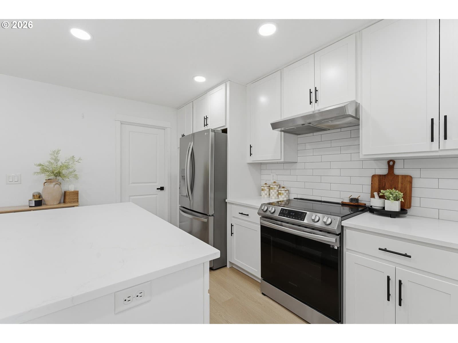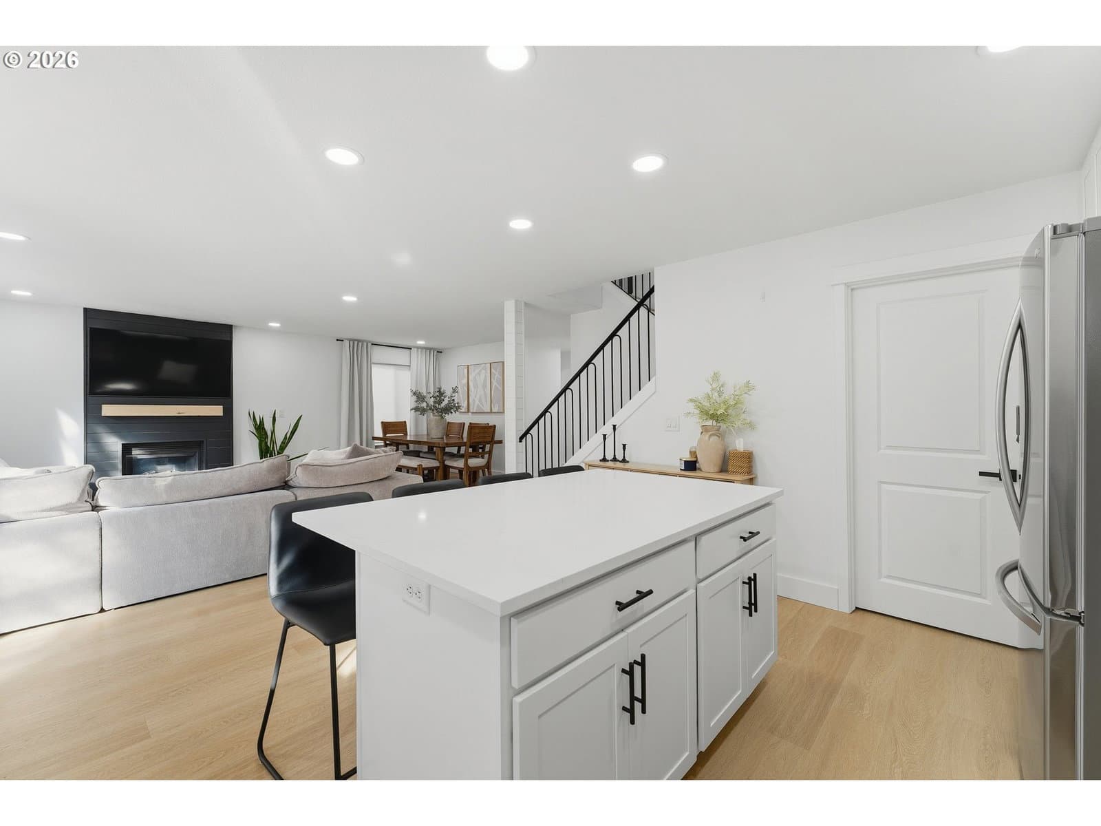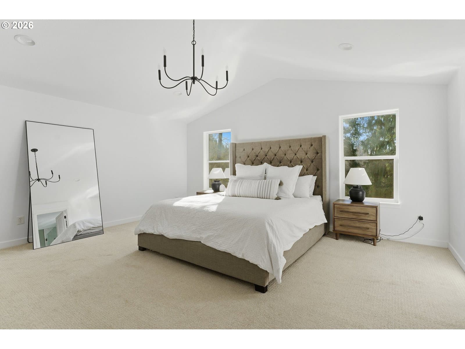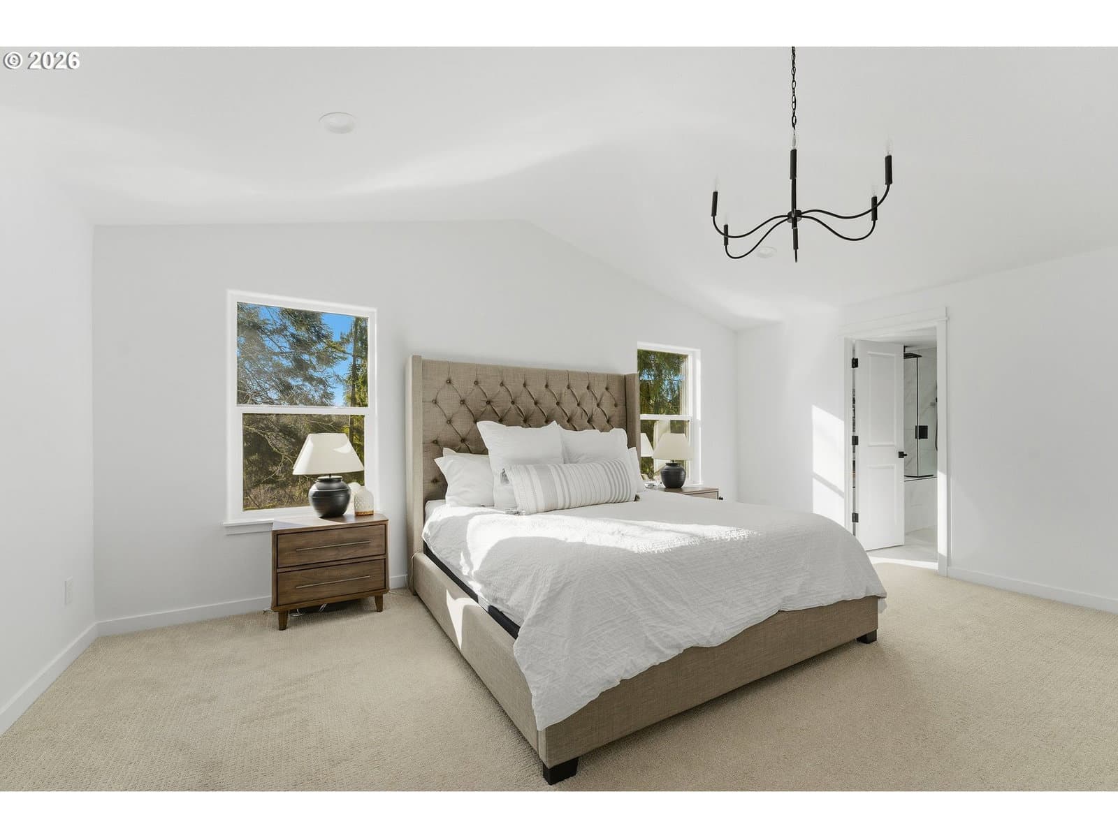 A rare opportunity to own a beautifully remodeled home backing to forest land, with the added advantage of an assumable 4.55% FHA loan for qualified buyers.This home has been fully remodeled inside and out, including fresh modern exterior paint. Inside, you’ll find new LVP flooring, a designer LVP staircase with dark railings, and upgraded chandeliers and modern lighting throughout. The remodeled kitchen features a quartz island, and all bathrooms have been beautifully remodeled. The spacious primary suite offers vaulted ceilings and a luxurious primary bath with heated tile floors.Large windows provide abundant natural light throughout the home. Step outside to a covered patio overlooking peaceful forest land, creating a private Northwest retreat.Fully remodeled, move-in ready, and hard to find at this level of finish and setting.
