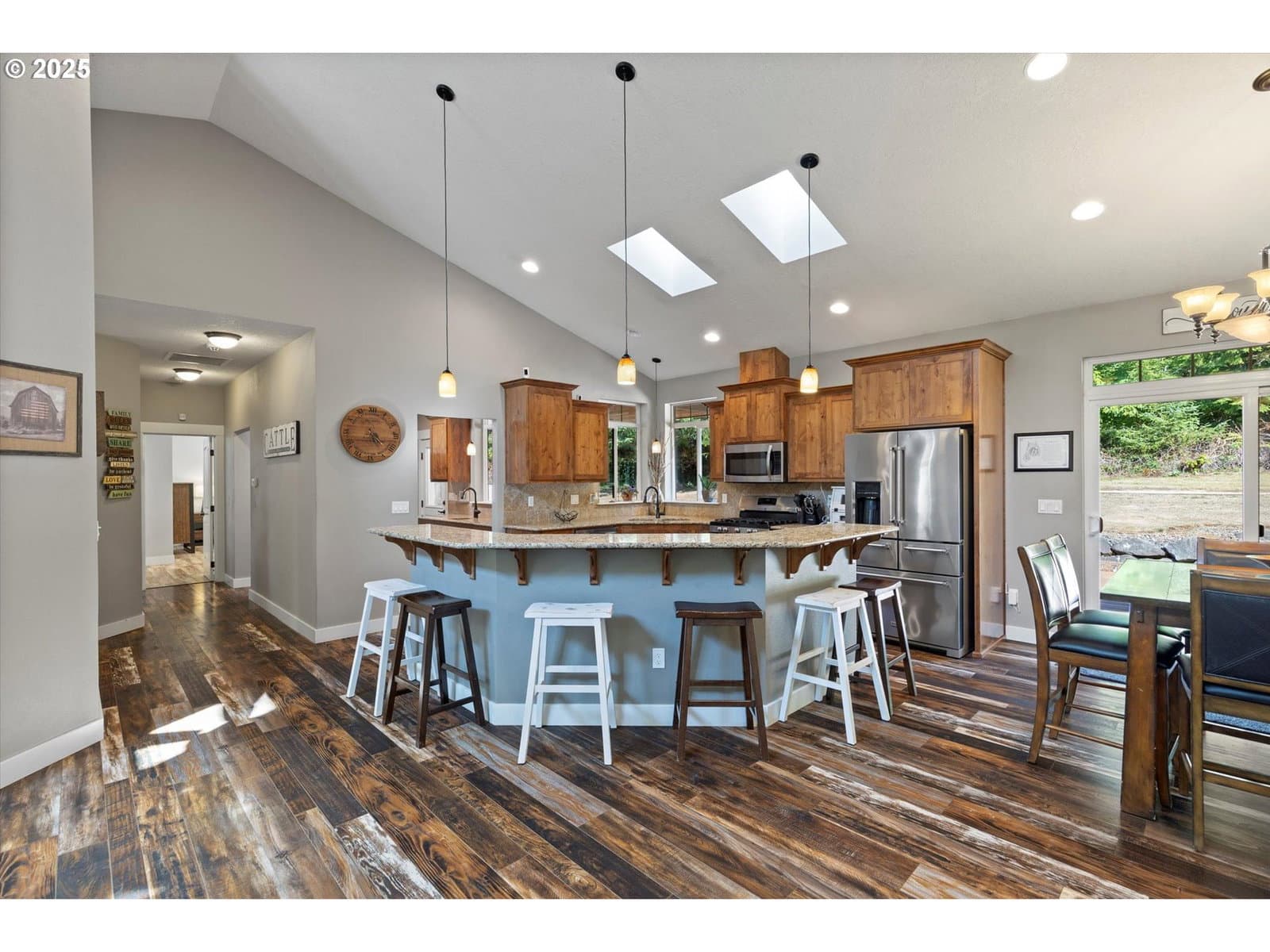 Luxury custom built all 1 level 2,616 sq ft 4 bedroom 2 full baths/2 1/2 baths. Kitchen with many upgrades such as commercial grade stainless steel appliances, butlers pantry, granite countertops. Master bathroom with walk in shower & separate bath tub. Great room, vaulted ceilings, and natural gas fireplace featuring floor to ceiling cultured stone Large Skylights and solar tube skylights to amplify the light. Natural tankless gas hot water heater. Attached 528 sq ft 2 car garage, metal 1800 sq ft 30x60 detached triple car shop with concrete floor. This home is on level, usable 2.38 acre parcel. Outdoor inviting living space with covered porch entry, rear wood deck, Marquis hot tub, garden area and partially fenced yard. Shown by appointment only.