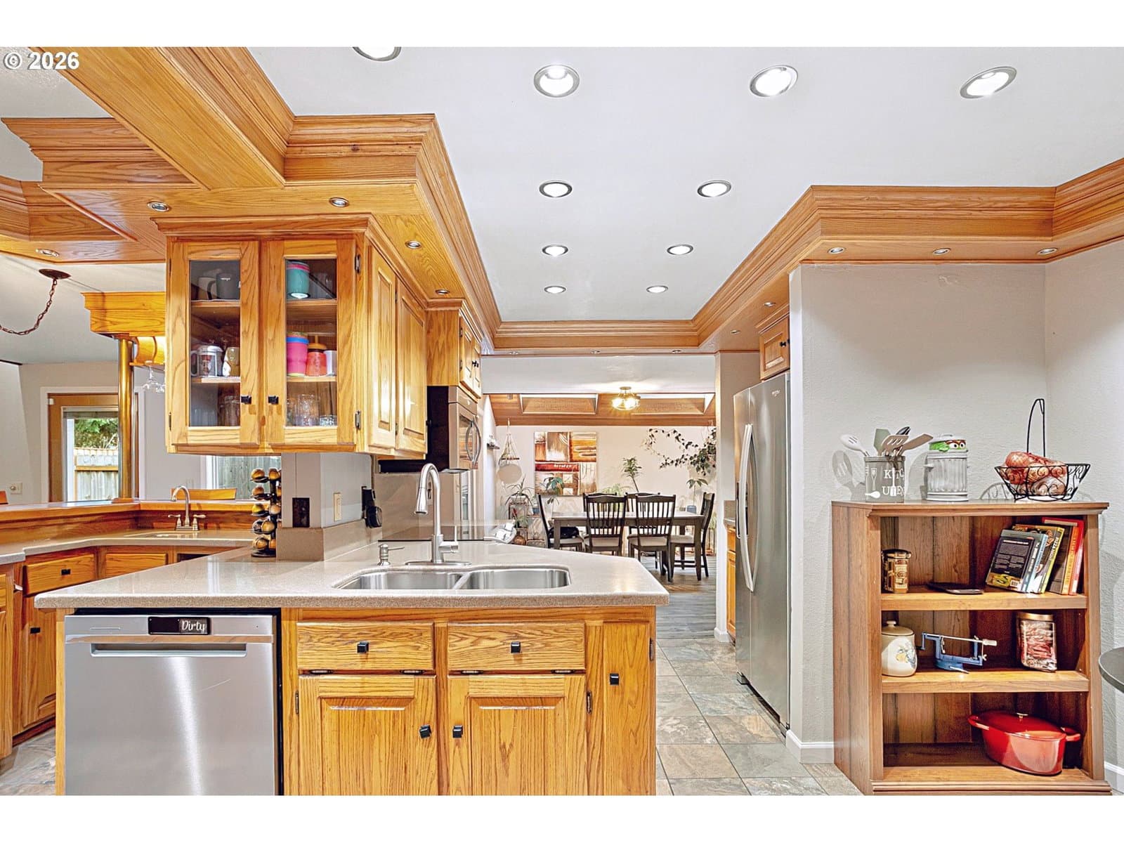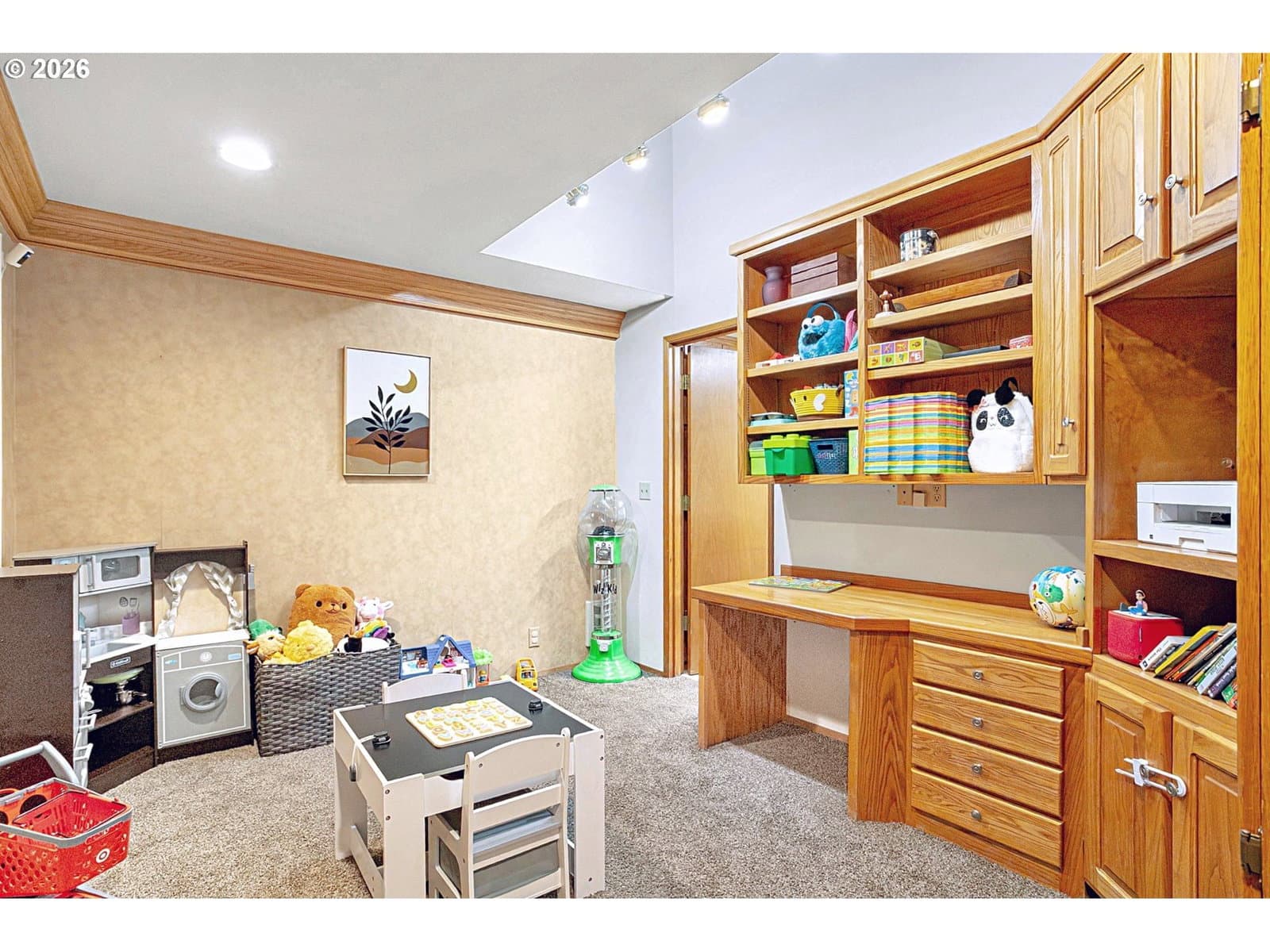 Nestled in the desirable North Gilham neighborhood, this beautiful and spacious home features 4 bedrooms, 2.5 bathrooms, and an office area. All 4 bedrooms are upstairs, with the primary suite offering vaulted, beamed ceilings, a walk-in closet, soaking tub, and a private outdoor balcony. The generously-sized 4th bedroom, connected to a Jack and Jill bathroom and featuring vaulted ceilings, could also serve as a versatile bonus room or loft area.The downstairs office, currently used as a playroom, offers flexibility for your needs. The unique kitchen and wet bar combination, featuring a wine fridge, is ideal for entertaining and flows seamlessly into a bright family room with skylights, a cozy living room, and a dedicated dining area. Outside, enjoy a large covered deck, charming brick patio, and a low-maintenance, fully fenced backyard with privacy.Updated in the last three years, this home boasts new LVP flooring, fresh exterior paint, high privacy fencing, new gutters, and efficient dual-zone heating and cooling with two new heat pumps and furnaces. The oversized garage includes a workspace area with potential for an additional vehicle.Located within the 4J School District and just minutes from Costco, local shopping, the Eugene Swim & Tennis Club, and freeway access, this home offers the perfect combination of comfort, functionality, and location in one of Eugene’s most sought-after neighborhoods.