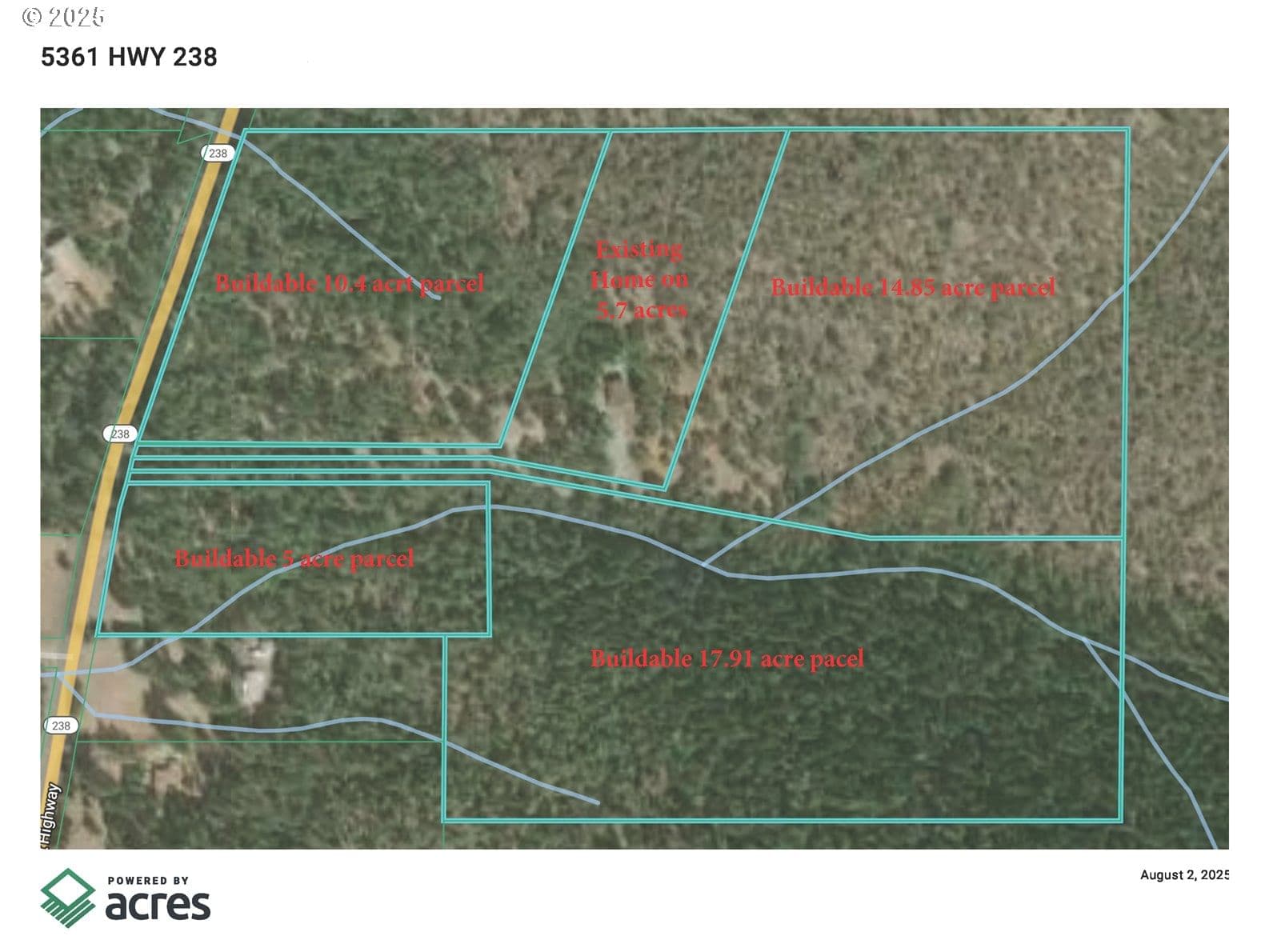 Logtown Holdings is proud to present a unique and expansive offering: 54 acres of pristine, gently sloped land, thoughtfully subdivided into five distinct buildable parcels. Ranging in size from 5 to 18 acres, each parcel boasts its own deeded access, ensuring privacy and exclusivity. This remarkable property provides an unparalleled opportunity to develop a luxury gated community, all within a short, convenient drive from the charming and historic town of Jacksonville. The main dwelling spans three well-defined levels, offering a generous 2,584 square feet of comfortable and inviting living space. Below the main living areas, a substantial 680-square-foot basement provides ample storage solutions or presents an exciting opportunity for further customization, allowing for an expansion of the home's functional footprint to suit your specific needs. Inside, the layout of the home masterfully strikes a perfect balance between intimacy and spaciousness.