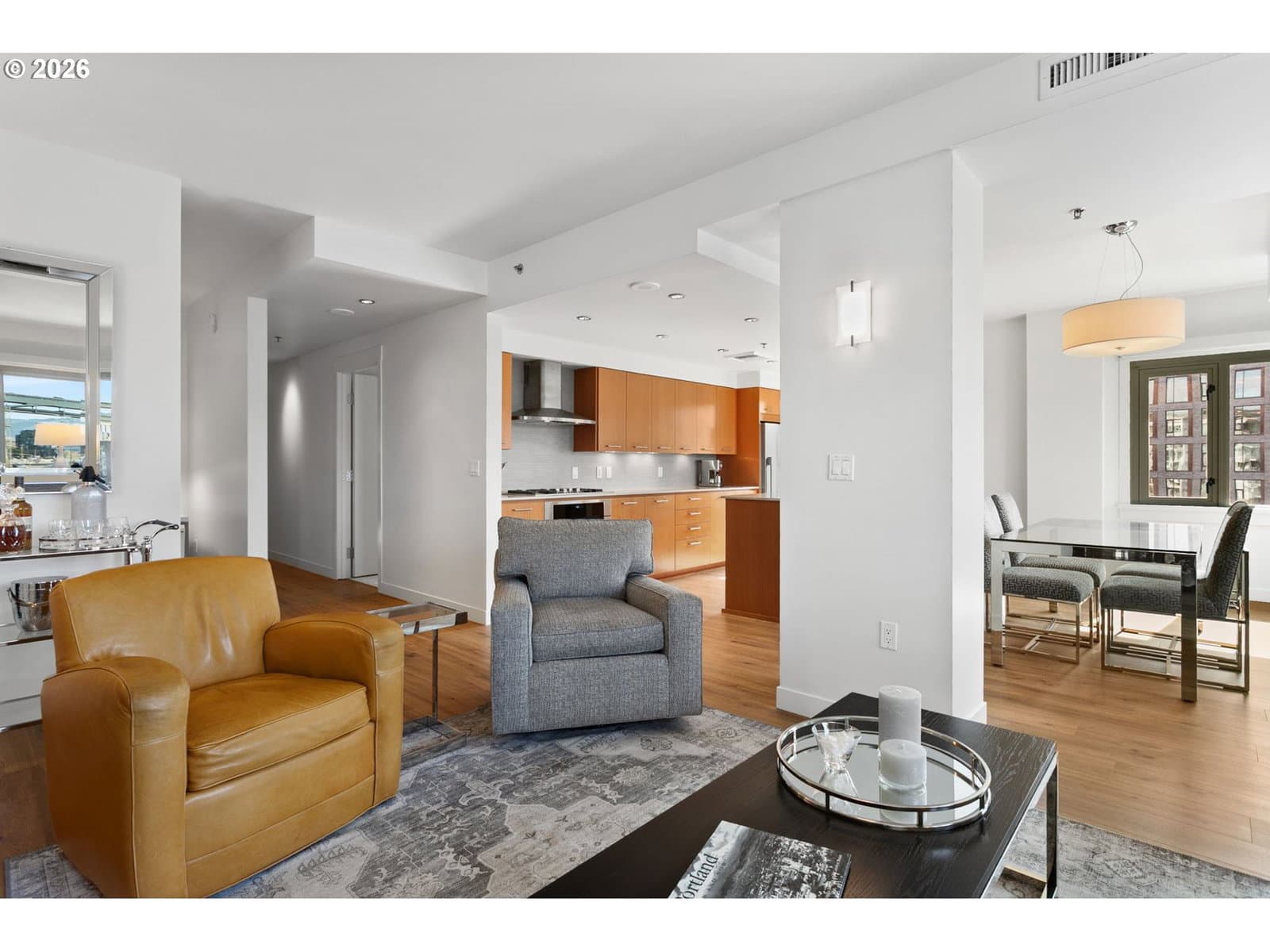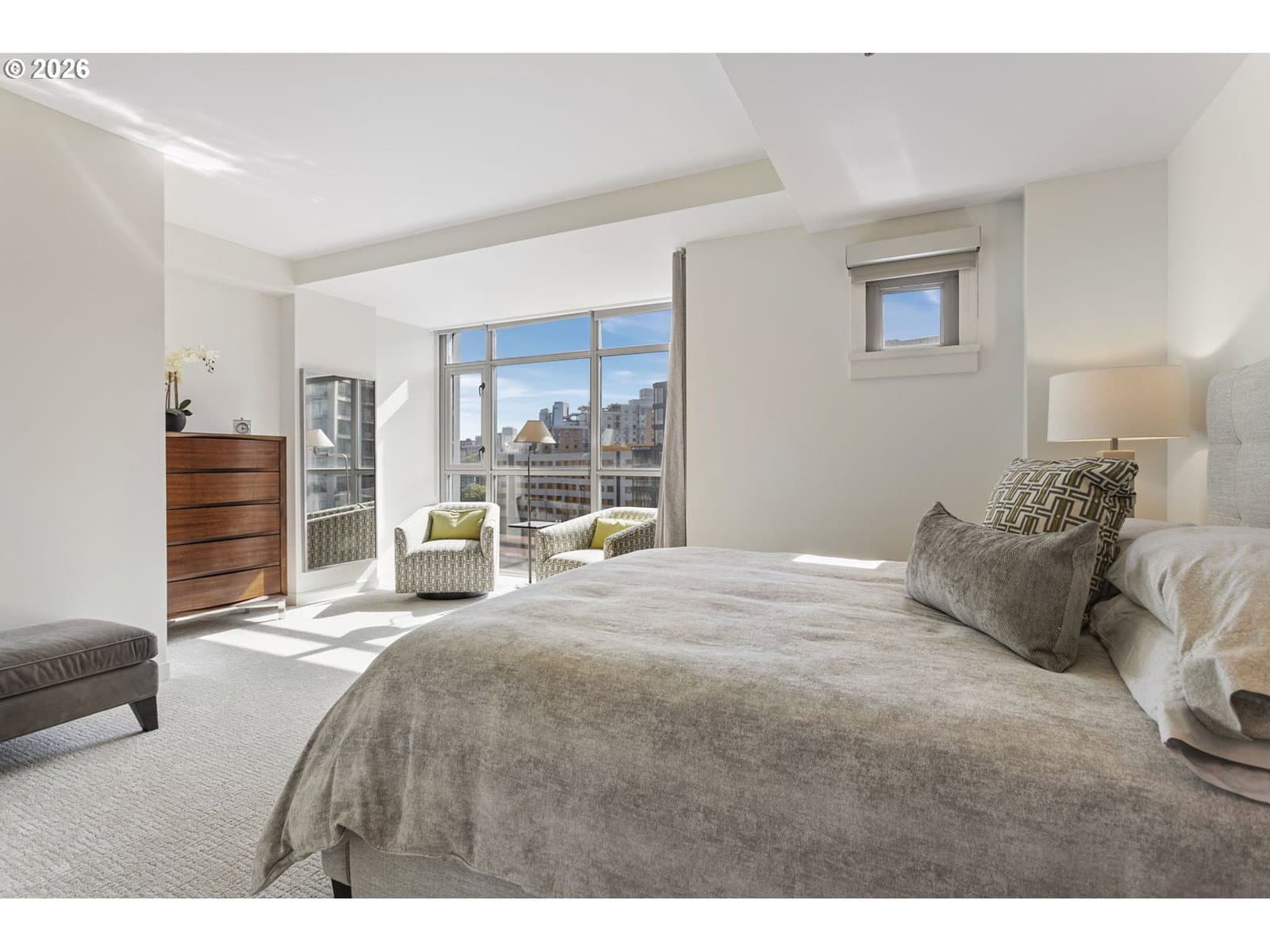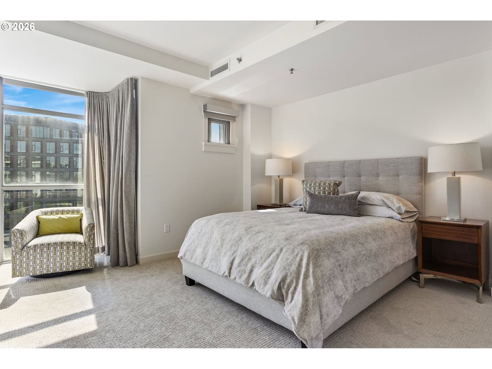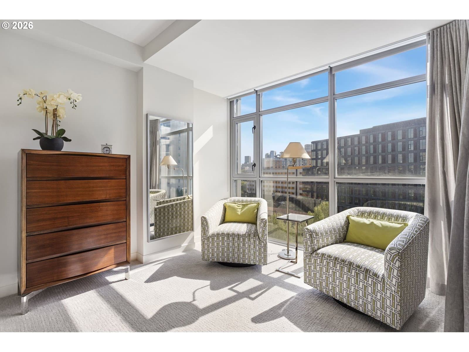 This exceptional 1,592 square foot condominium offers a prime riverfront location with stunning river views. Situated in the sought-after Pearl District, this residence combines modern living with urban convenience. The property features two spacious bedrooms, each with its own ensuite bathroom, providing privacy and comfort. An additional half bathroom adds to the convenience. The open concept living area includes a den, perfect for a home office or additional living space. The expansive kitchen is designed for both functionality and style, ideal for cooking and entertaining. Enjoy the tranquility of riverfront living while being just steps away from the vibrant Pearl District, known for its dining, shopping, and cultural attractions. Experience the best of Portland living in this well-appointed condominium. Deeded parking and storage included!
