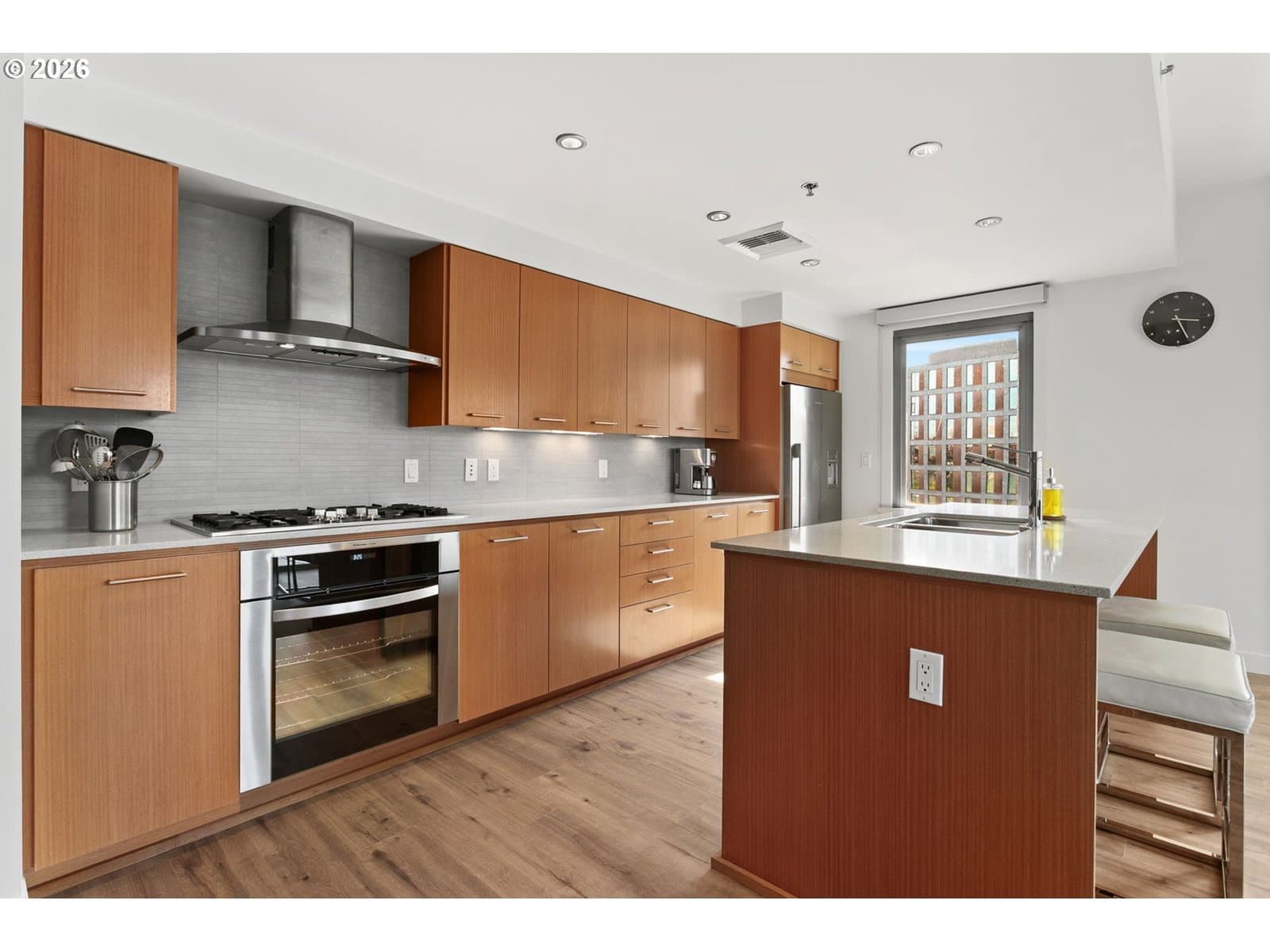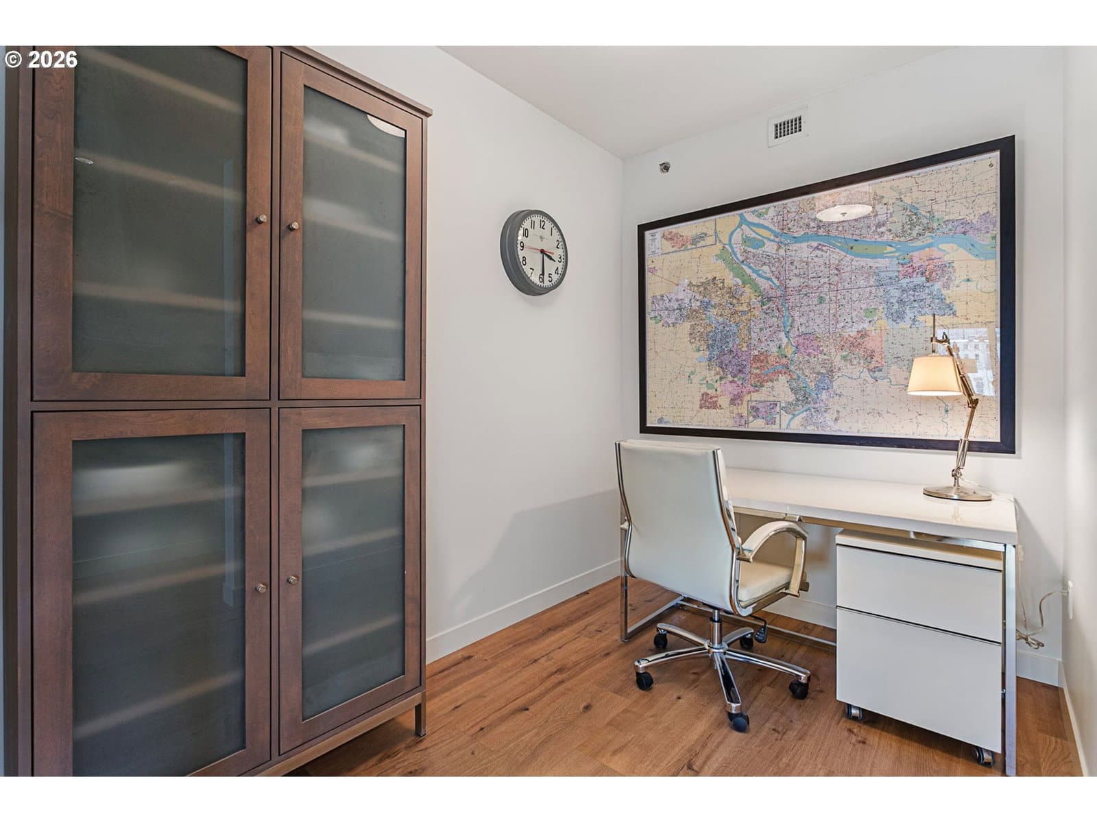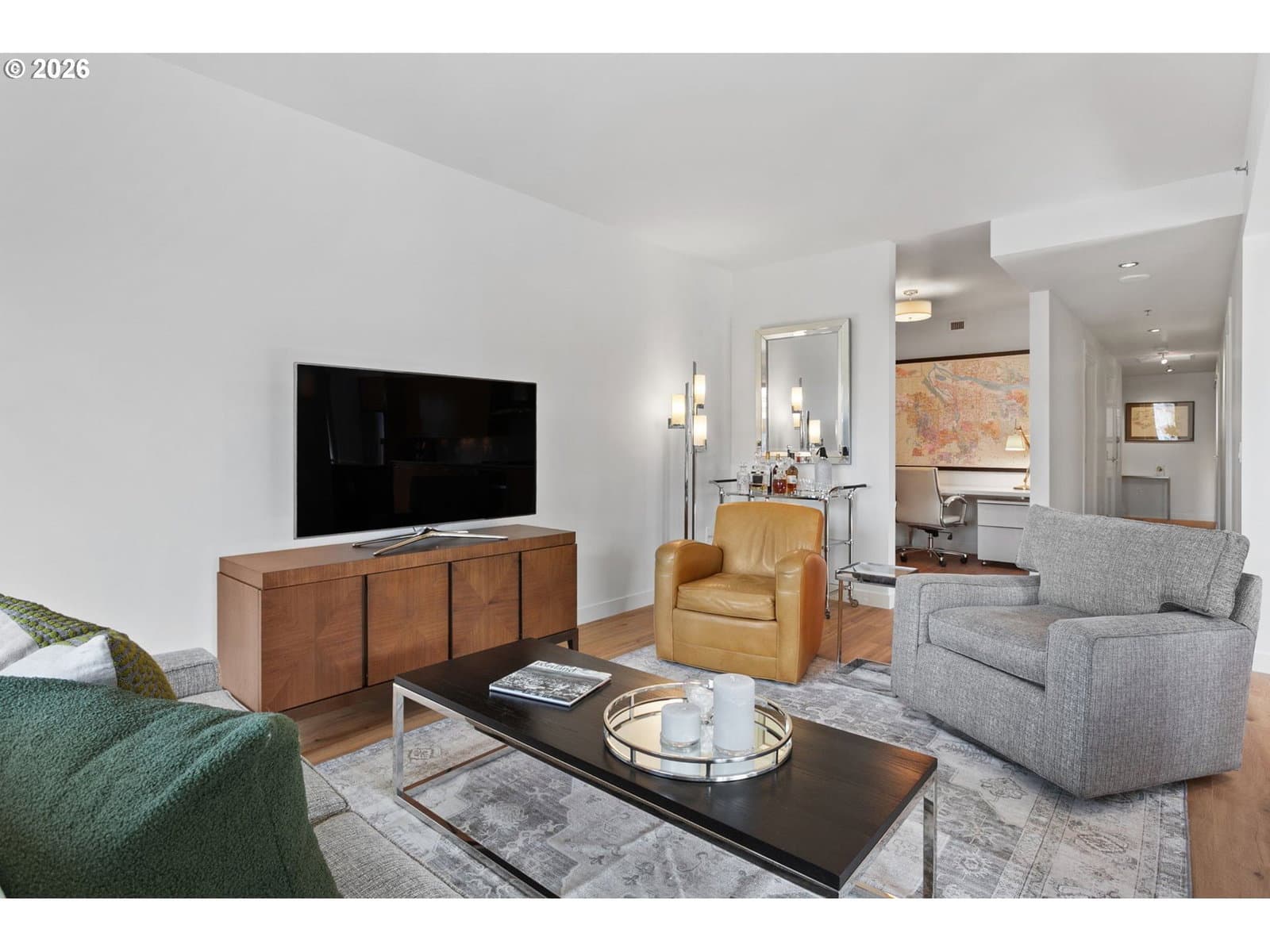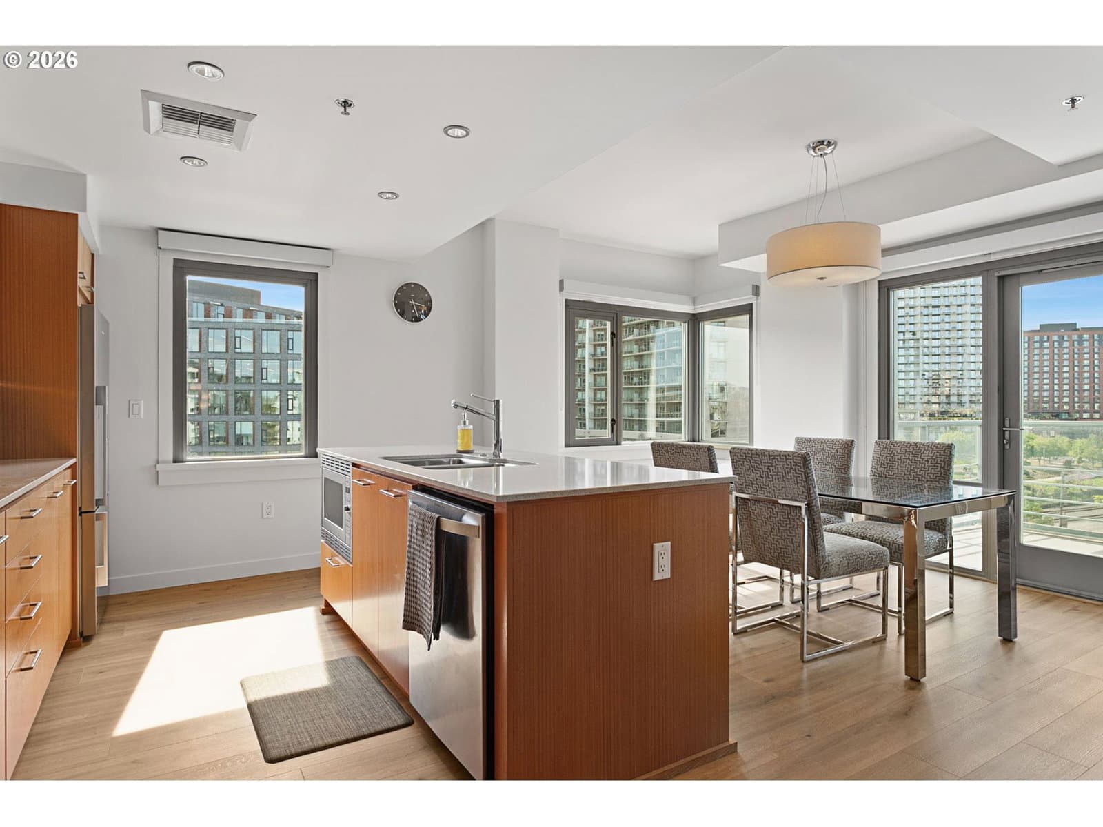 This exceptional 1,592 square foot condominium offers a prime riverfront location with stunning river views. Situated in the sought-after Pearl District, this residence combines modern living with urban convenience. The property features two spacious bedrooms, each with its own ensuite bathroom, providing privacy and comfort. An additional half bathroom adds to the convenience. The open concept living area includes a den, perfect for a home office or additional living space. The expansive kitchen is designed for both functionality and style, ideal for cooking and entertaining. Enjoy the tranquility of riverfront living while being just steps away from the vibrant Pearl District, known for its dining, shopping, and cultural attractions. Experience the best of Portland living in this well-appointed condominium. Deeded parking and storage included!