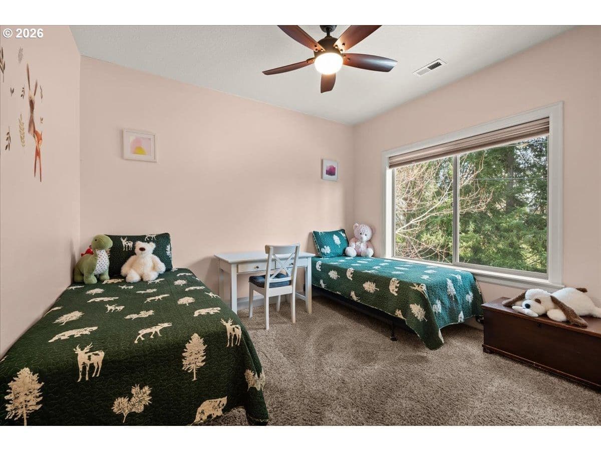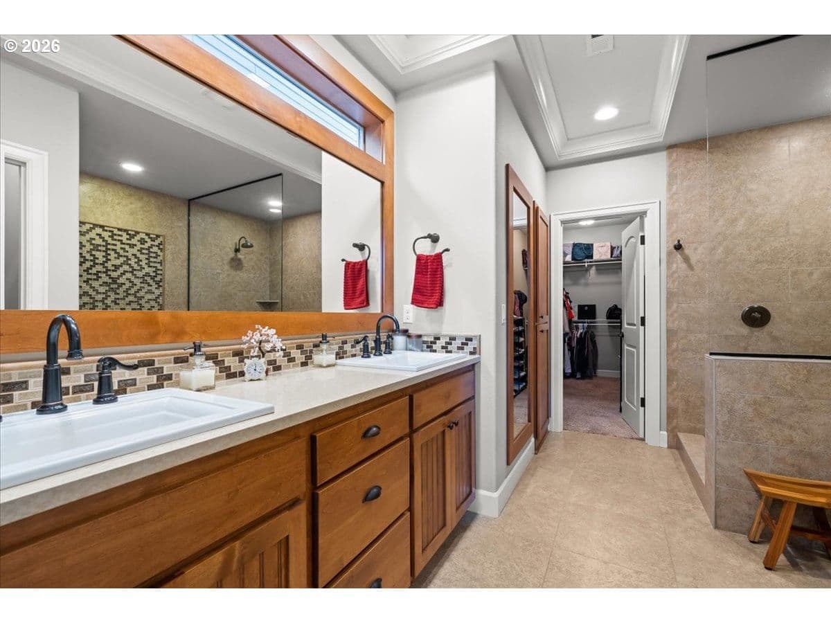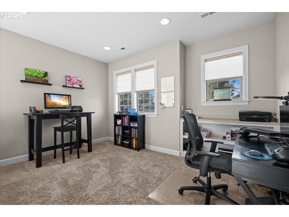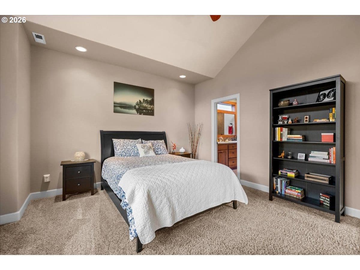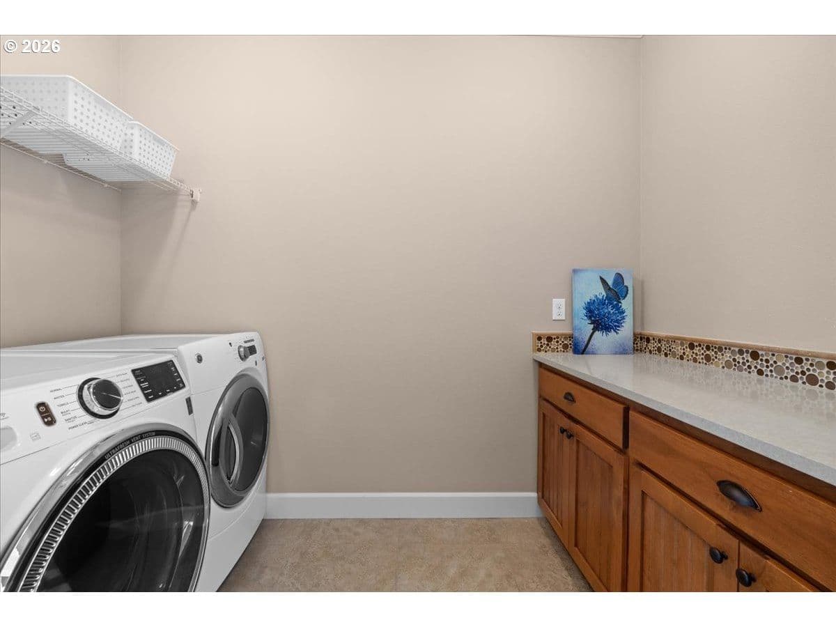 Impeccable craftsmanship and refined finishes define this stunning home, ideally situated in a fantastic location on a quiet dead-end street with easy access to everything you need. Just minutes from Nike campus, intel campuses, shopping & restaurants. Step inside to discover real hardwood floors, wainscot, high ceilings accented by crown molding and recessed lighting, creating an elegant yet welcoming atmosphere throughout the home. The chef’s kitchen is beautifully appointed with gas cooking, stainless steel appliances, slab granite countertops, gorgeous cabinetry, and an inviting adjacent breakfast bar — perfect for both everyday living and entertaining. The living room offers warmth and comfort with custom built-ins surrounding a cozy gas fireplace, making it the heart of the home. Retreat to the relaxing spacious owner's suite featuring a spa-inspired bath with a walk-in shower, dual vanities, and a generous walk-in closet. In addition upstairs, you’ll find a spacious loft area that functions beautifully as a second living space, media room, sitting area, or home office. Two additional bedrooms and a full bathroom with double sinks provide comfort and convenience, while the upstairs laundry adds everyday ease and functionality. A main-level bedroom provides flexibility for guests, multi-generational living. Enjoy a private backyard setting — ideal for summer evenings, morning coffee, or quiet relaxation. With timeless finishes, thoughtful design, real hardwood flooring, and an exceptional location in desirable Cooper Mountain, this home truly offers the perfect blend of comfort, quality, and convenience.