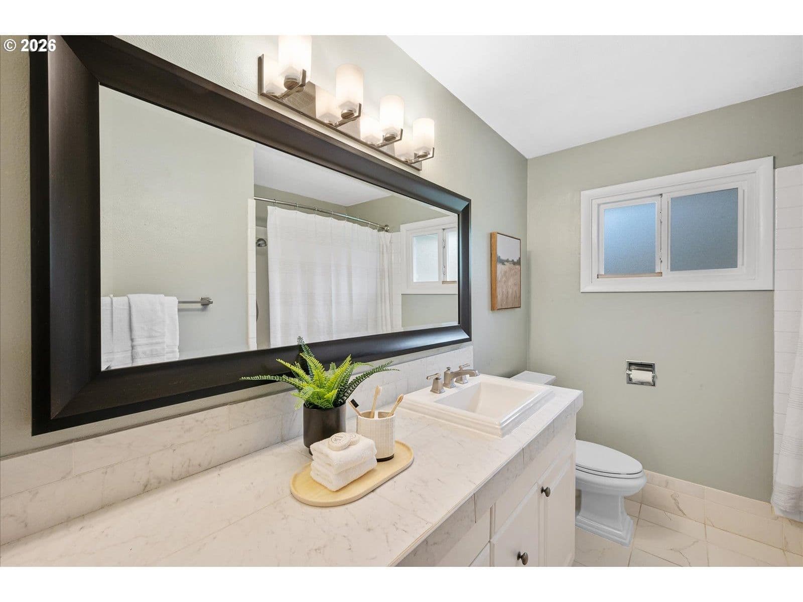 This charming one-level home offers beautiful curb appeal with mature landscaping and a fully fenced, level yard perfect for entertaining or relaxing outdoors. This beautifully maintained home has a great floor plan designed for easy living. You’ll find inviting wood floors, a wood-burning fireplace, and large picture windows that fill the home with natural light. The updated kitchen features modern shaker cabinetry, a subway tile backsplash, tile flooring, an eat-at bar, and a built-in desk for added functionality. A sliding door leads to a large patio, perfect for gatherings or quiet evenings outside.