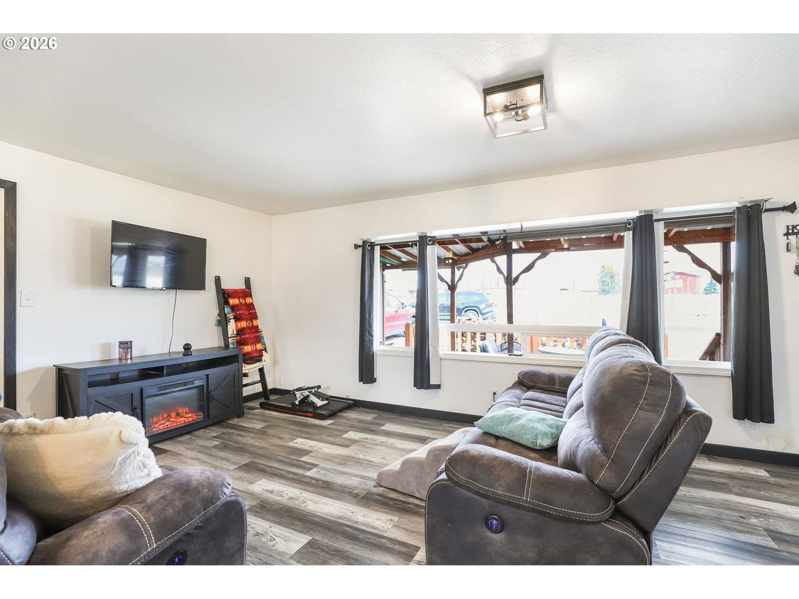 Small-town charm meets everyday comfort in this inviting home in Dufur! This 3-bedroom, 1-bath home offers 1,092 sq ft of easy living on a spacious corner lot with a fully fenced backyard perfect for pets, play, or relaxing outdoors.Inside, you’ll find vinyl flooring throughout and a bright kitchen featuring stainless steel appliances and a convenient eat-at bar for casual meals or entertaining. A cozy wood stove adds warmth and character, making the living space feel extra inviting during cooler months.The home also includes a bonus flex room ideal for a home office, hobby space, workout area, or guest overflow. A one-car garage with attic storage provides extra room for tools, gear, and seasonal items.Enjoy your morning coffee or unwind in the evening on the front patio, while the metal roof adds durability and low-maintenance peace of mind. With its functional layout, great outdoor space, and welcoming small-town atmosphere, this home is a fantastic opportunity to enjoy life in Dufur.