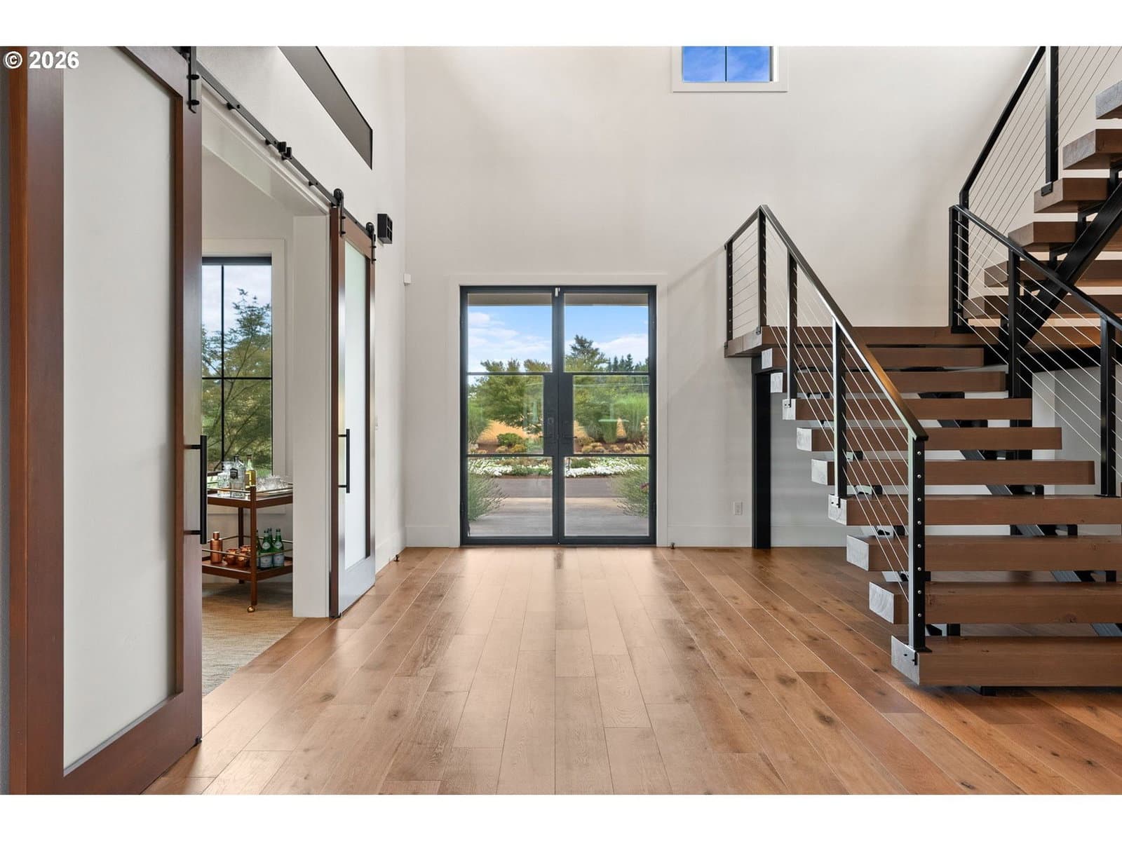 Welcome to the ultimate resort style living with this custom-built gated Stafford estate offering luxury and privacy across 10+ level easy care acres, with significant benefits and long-term savings from a valuable tax farm deferral. The approx. 5400 SF main residence features main-level living with 5 bedrooms, 3 full and 2 half baths. A newly completed 1,800 SF pool/guest house includes a full bedroom suite, kitchenette, and state-of-the-art fitness center. The nearly 3,000 SF dream shop with RV parking/up to 12 vehicles offers soaring two-story ceilings and a full bathroom. Resort-style amenities include pool, spa, outdoor kitchen, turf lawns, sleek patios, and a poolside fireplace and bar. Inside, enjoy premium finishes: a vaulted wood-clad great room, metal floating staircase, folding glass walls for seamless indoor-outdoor living, a showcase wine room, and generous bonus spaces. The main-level primary suite offers a private patio, elegant dressing room, and spa-style bath with heated floors. Upstairs includes 4 bedrooms, a playroom, and an office. The acreage is ideal for equestrian use, vineyards, or expansion. Located in a top-rated West Linn/Wilsonville school district with the option to attend the new Riverside High School and its prestigious International Baccalaureate (IB) program, south of the Portland Metro area and close to nearby famed wine country. Easy access to freeway as well as Portland International Airport. Shown by appointment to qualified buyers.