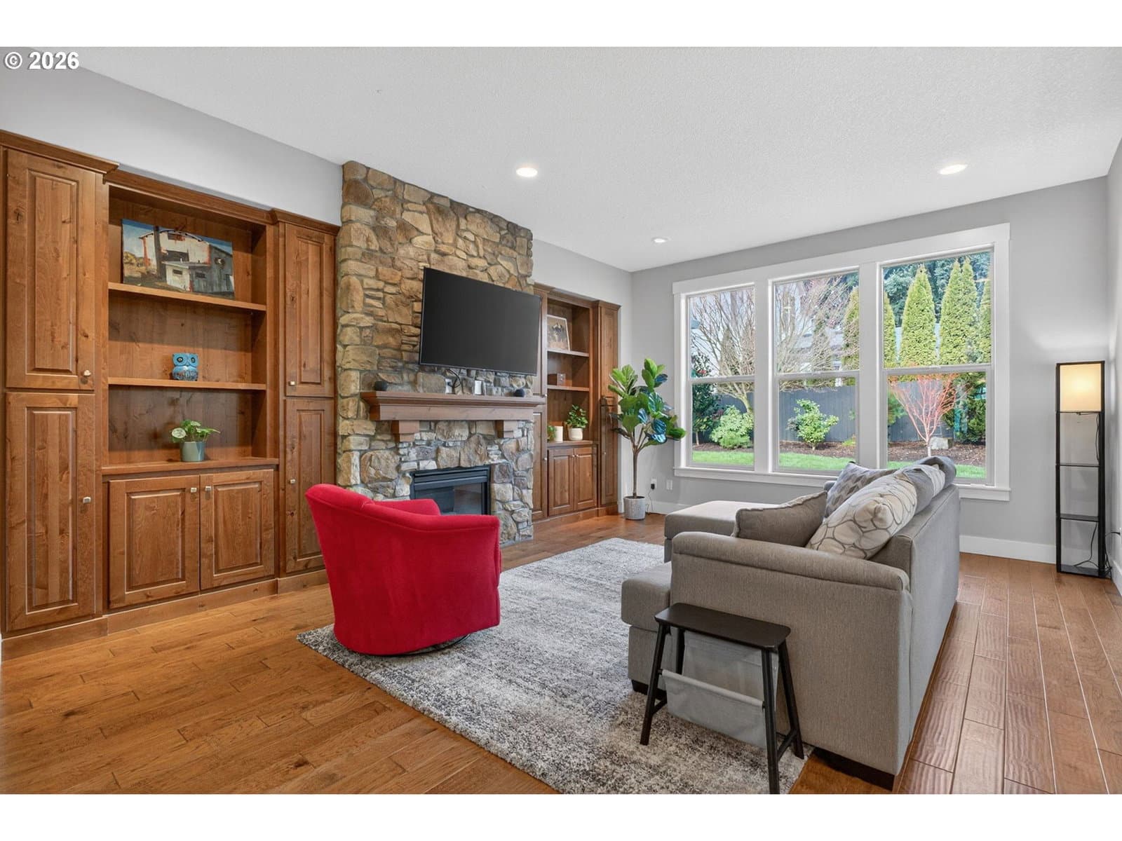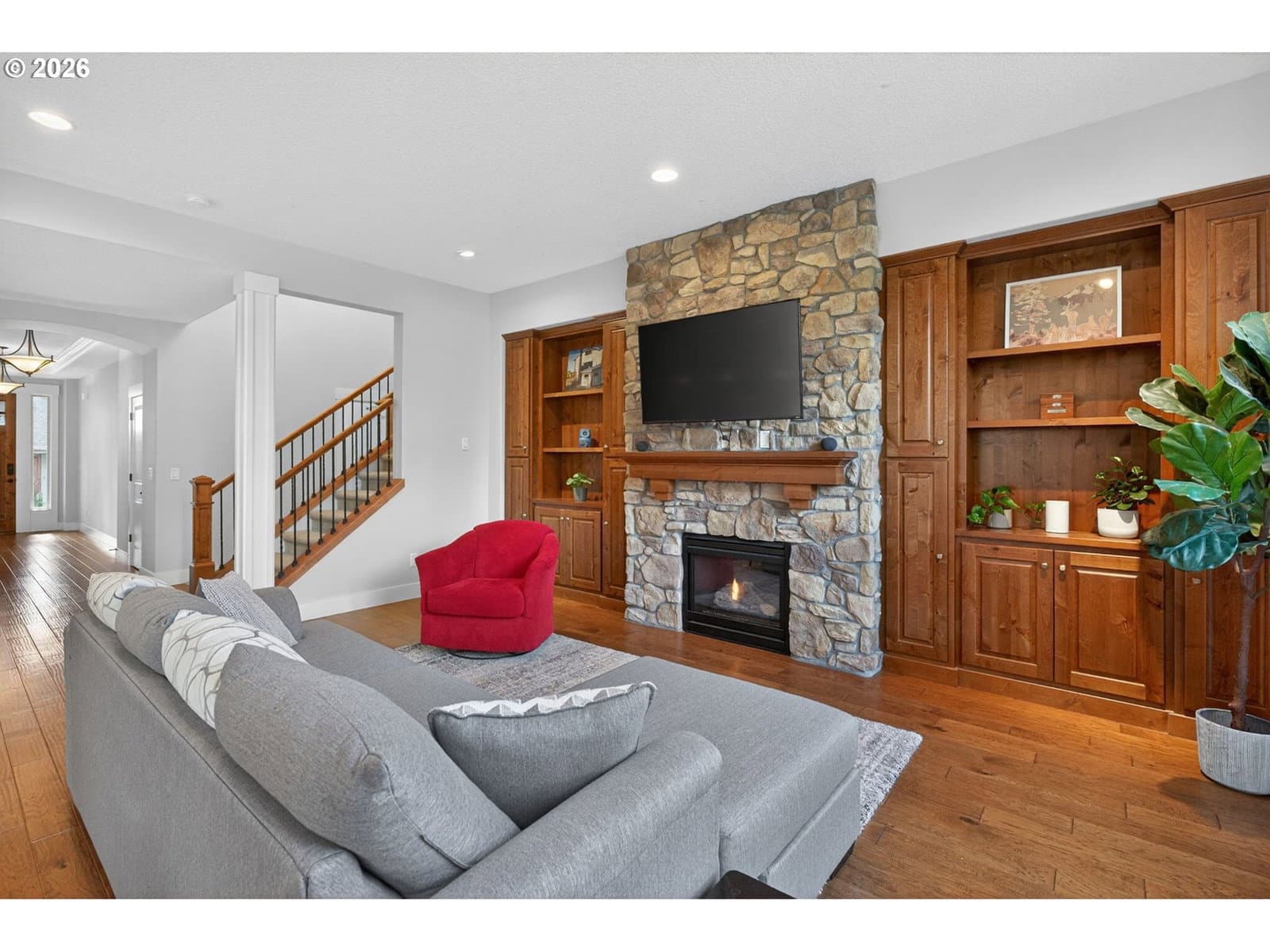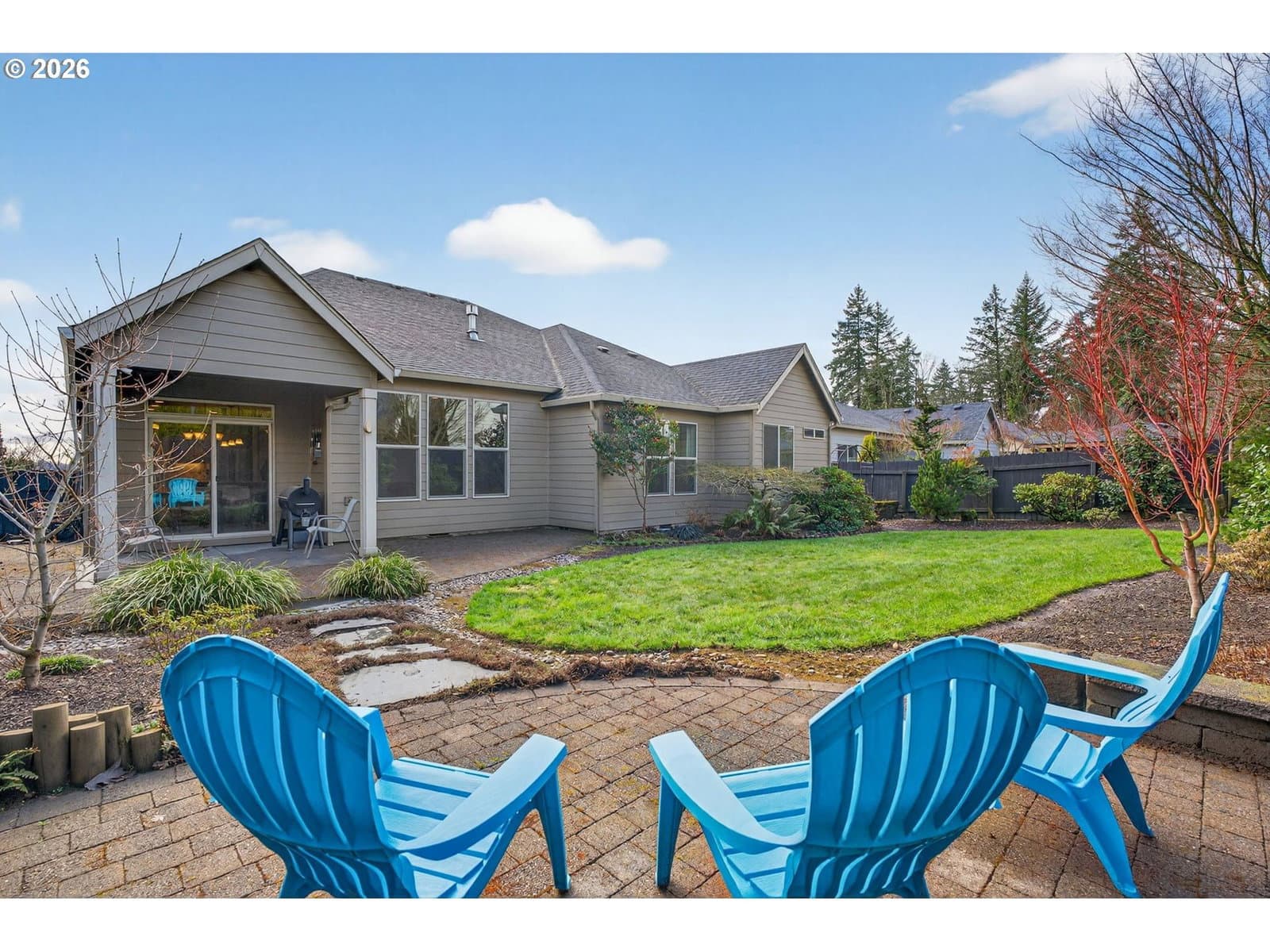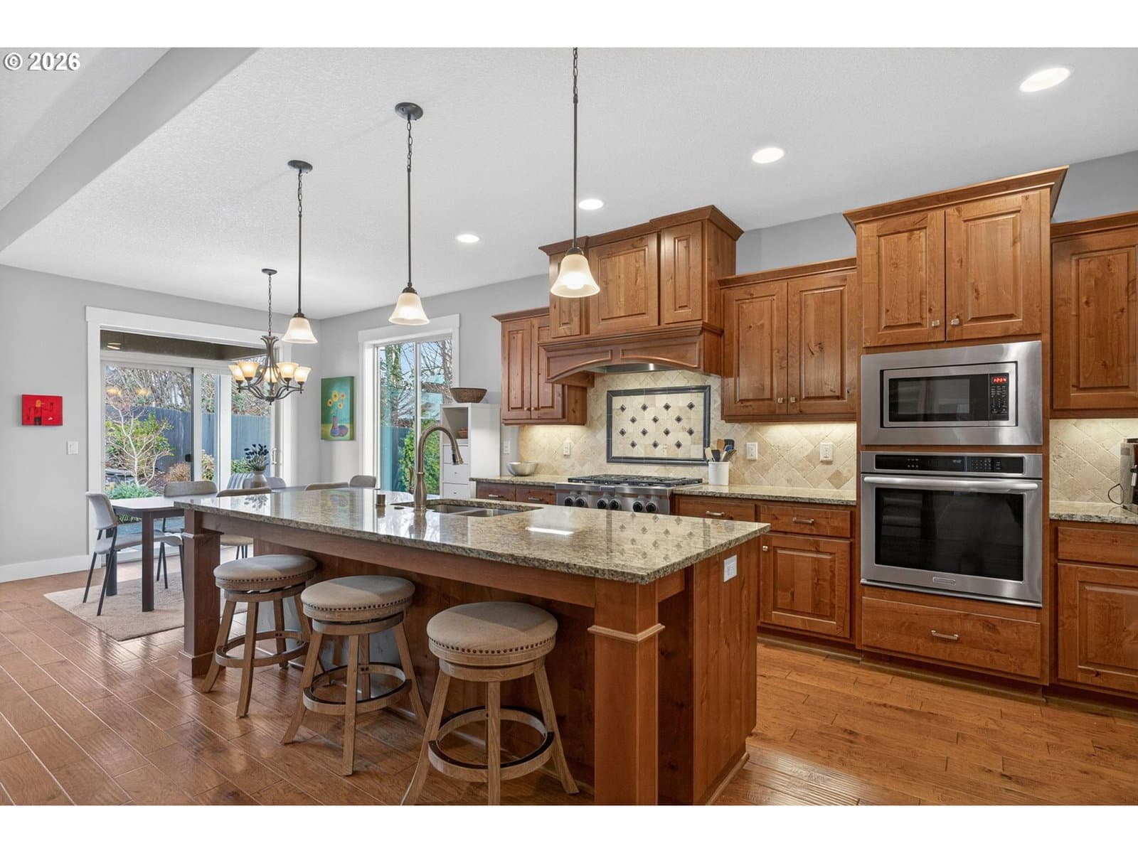 This thoughtfully designed home, tucked at the end of a quiet no-through street, is the perfect blend of style and functionality. With the Primary Suite and two additional bedrooms on the main floor, this is single level living with the bonus of a full suite on the upper level. As you enter, a dedicated office space is off the wide hallway leading to the great room, anchored by a stone floor-to-ceiling fireplace with gas insert. The kitchen is perfect for entertaining with its large island with seating, gas cooktop, butler's pantry and walk-in pantry. The dining area off the kitchen leads out to the private back yard, and the adjacent formal dining room (currently used as a reading room) features wainscoting and a view of the neighboring acreage. The main level Primary Suite looks out to the manicured back yard, and features two walk-in closets with custom closet systems, elegant light fixture that accents the tray ceiling with ambient lighting, en-suite bathroom with walk-in shower with dual shower heads and soaking tub. Two additional bedrooms, a full bath, and a dedicated mud room / laundry room with bench seating and coat hooks round out the main level. The upper level is a self-contained living space with a generous bedroom, loft sitting area, and full bath — a natural fit for dual living or a guest suite. A spacious three-car garage completes this exceptional home. The neighboring acreage provides added privacy and a serene backdrop, while shopping, dining, freeway access, and nearby medical campuses keep everyday conveniences within easy reach.