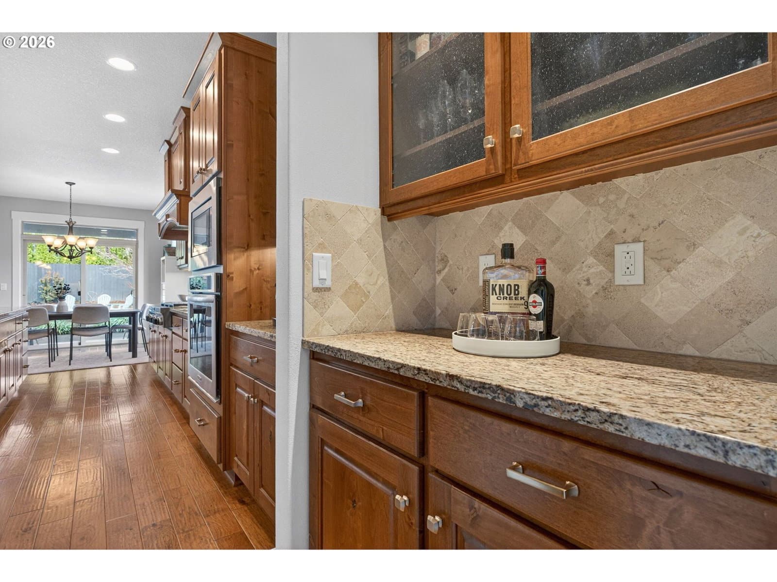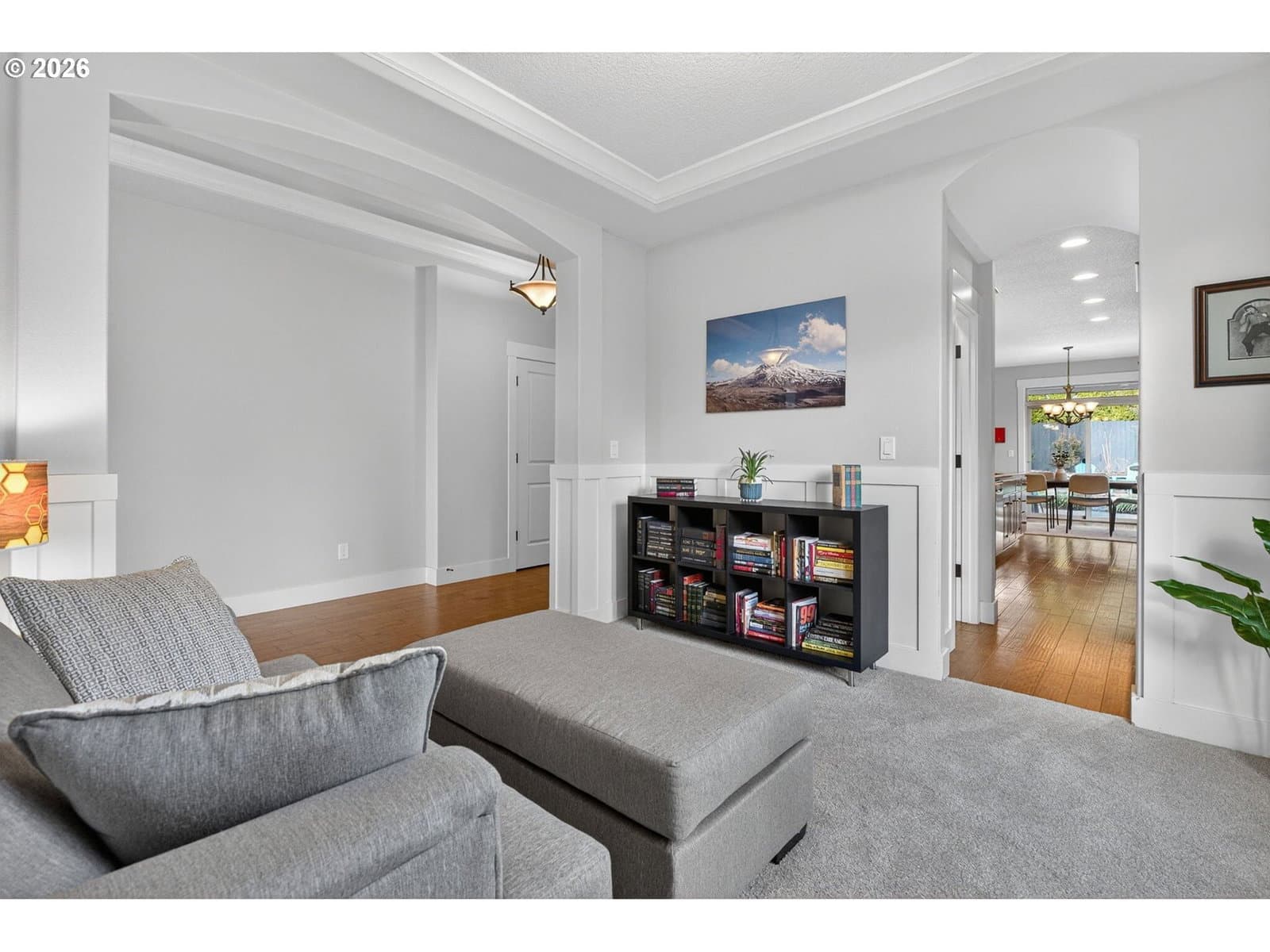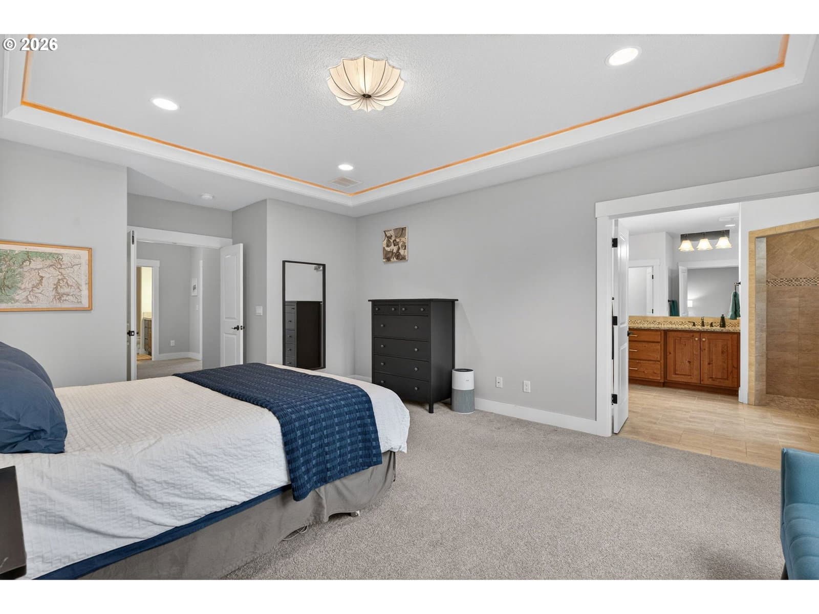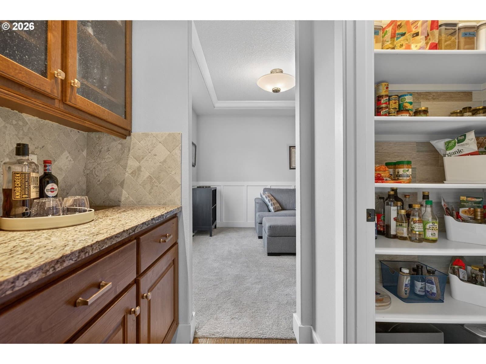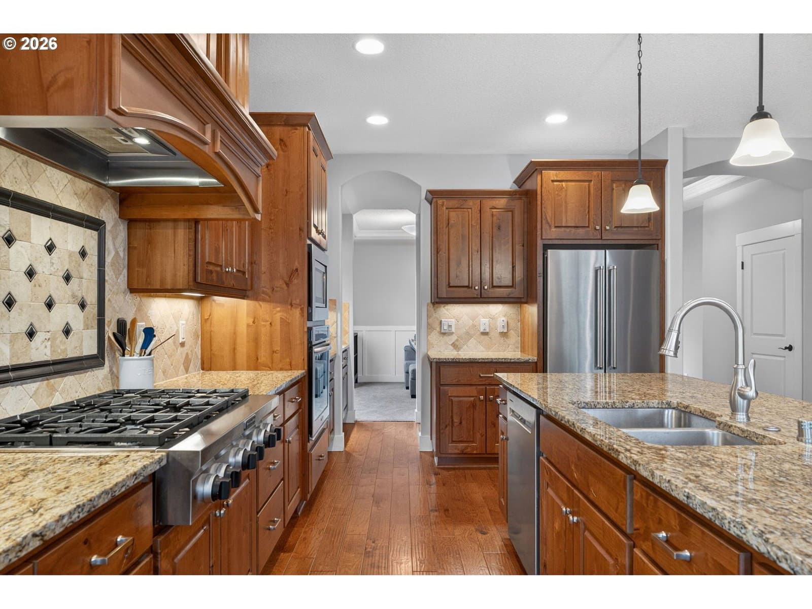 This thoughtfully designed home, tucked at the end of a quiet no-through street, is the perfect blend of style and functionality. With the Primary Suite and two additional bedrooms on the main floor, this is single level living with the bonus of a full suite on the upper level. As you enter, a dedicated office space is off the wide hallway leading to the great room, anchored by a stone floor-to-ceiling fireplace with gas insert. The kitchen is perfect for entertaining with its large island with seating, gas cooktop, butler's pantry and walk-in pantry. The dining area off the kitchen leads out to the private back yard, and the adjacent formal dining room (currently used as a reading room) features wainscoting and a view of the neighboring acreage. The main level Primary Suite looks out to the manicured back yard, and features two walk-in closets with custom closet systems, elegant light fixture that accents the tray ceiling with ambient lighting, en-suite bathroom with walk-in shower with dual shower heads and soaking tub. Two additional bedrooms, a full bath, and a dedicated mud room / laundry room with bench seating and coat hooks round out the main level. The upper level is a self-contained living space with a generous bedroom, loft sitting area, and full bath — a natural fit for dual living or a guest suite. A spacious three-car garage completes this exceptional home. The neighboring acreage provides added privacy and a serene backdrop, while shopping, dining, freeway access, and nearby medical campuses keep everyday conveniences within easy reach.