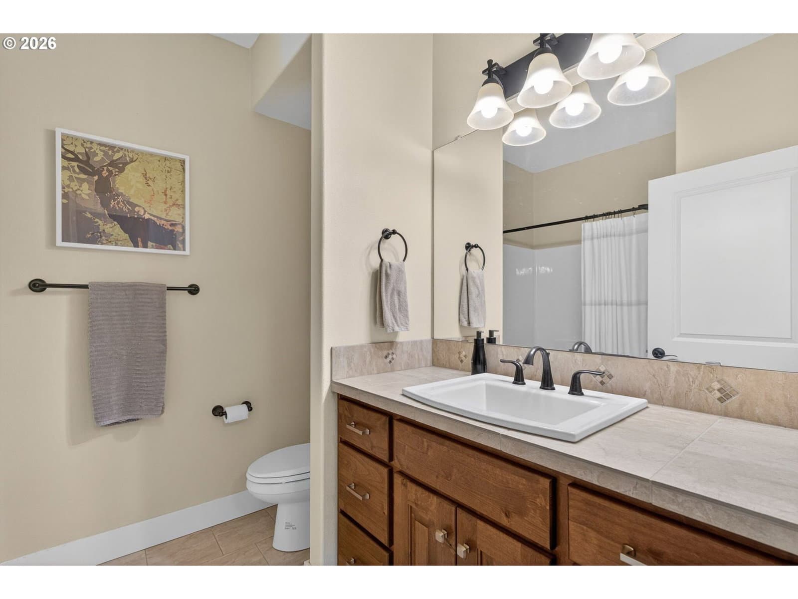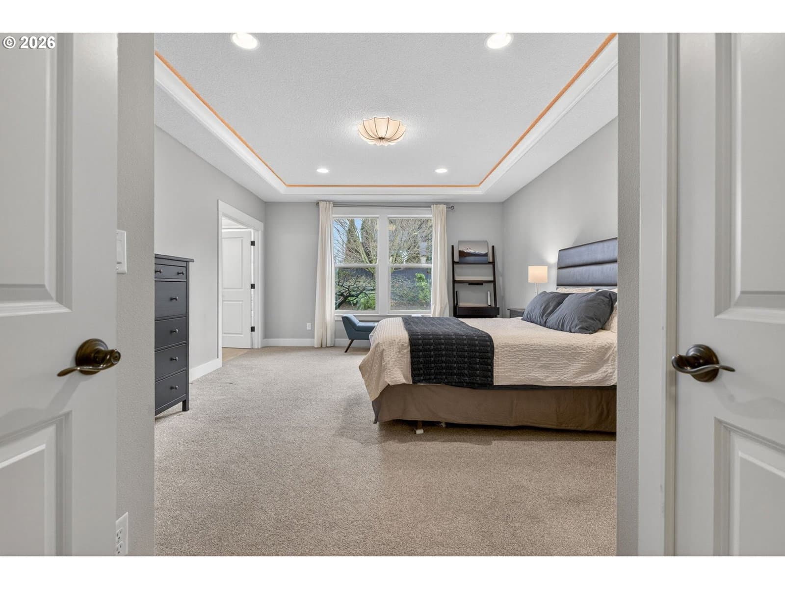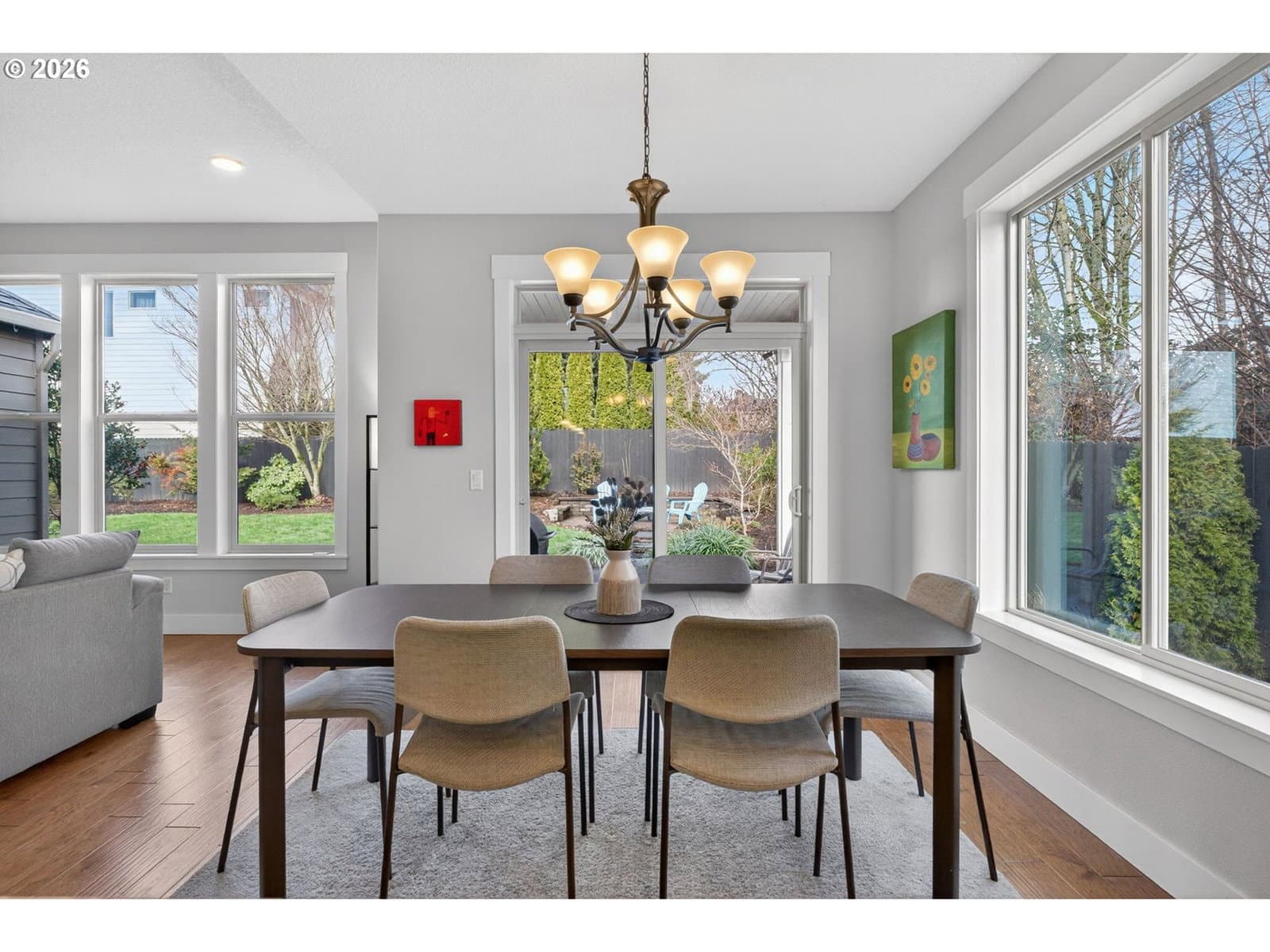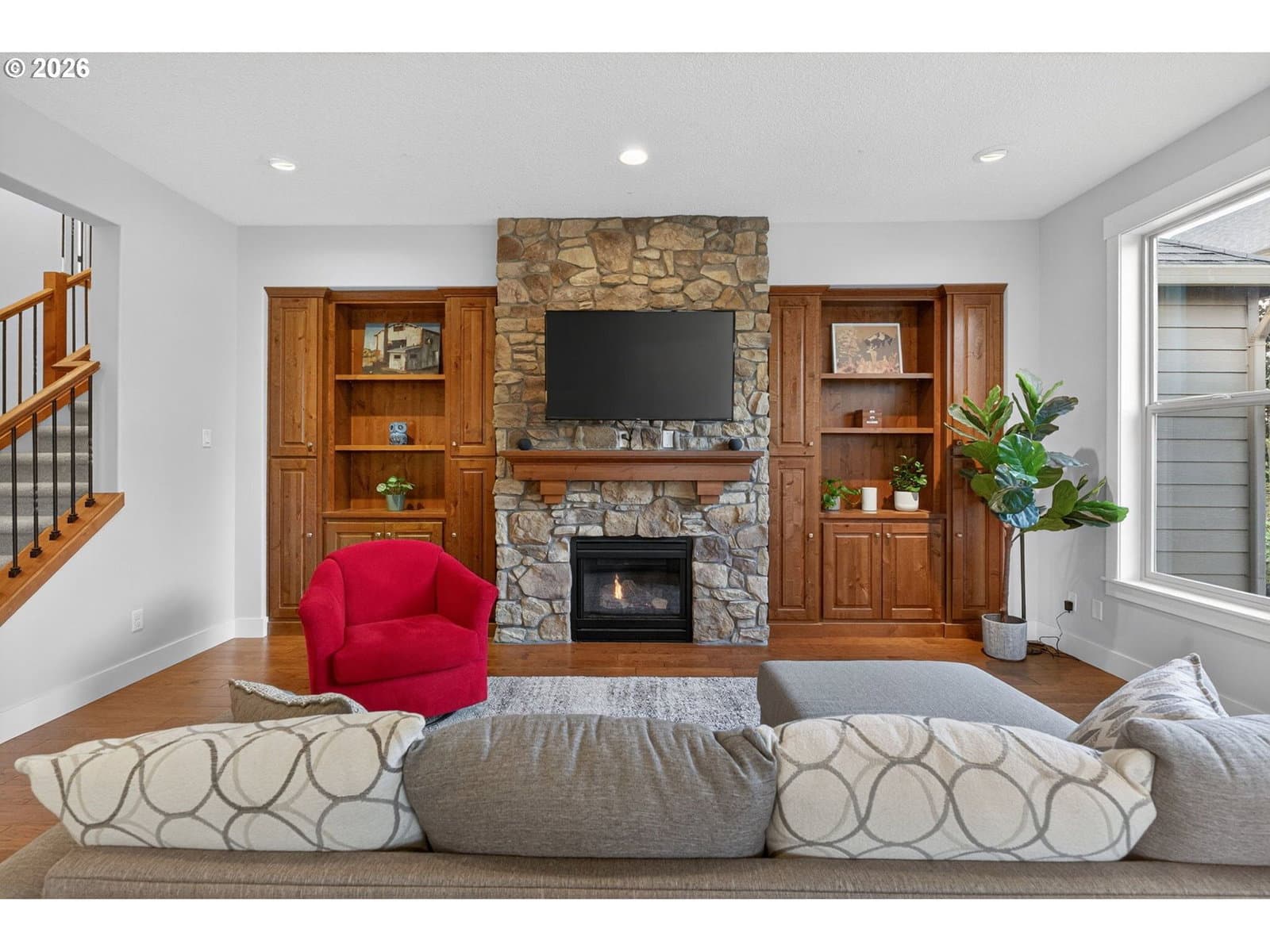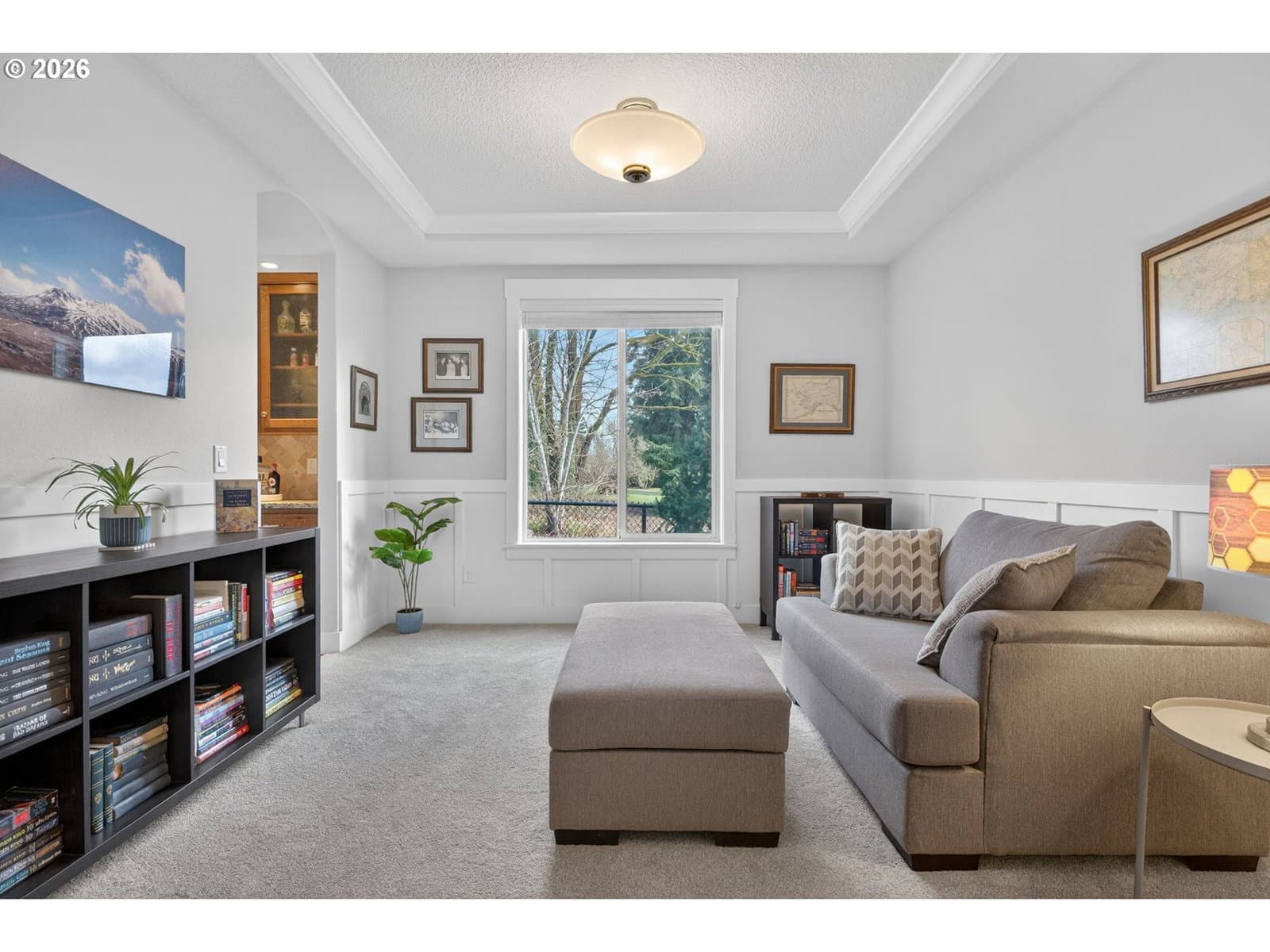 This thoughtfully designed home, tucked at the end of a quiet no-through street, is the perfect blend of style and functionality. With the Primary Suite and two additional bedrooms on the main floor, this is single level living with the bonus of a full suite on the upper level. As you enter, a dedicated office space is off the wide hallway leading to the great room, anchored by a stone floor-to-ceiling fireplace with gas insert. The kitchen is perfect for entertaining with its large island with seating, gas cooktop, butler's pantry and walk-in pantry. The dining area off the kitchen leads out to the private back yard, and the adjacent formal dining room (currently used as a reading room) features wainscoting and a view of the neighboring acreage. The main level Primary Suite looks out to the manicured back yard, and features two walk-in closets with custom closet systems, elegant light fixture that accents the tray ceiling with ambient lighting, en-suite bathroom with walk-in shower with dual shower heads and soaking tub. Two additional bedrooms, a full bath, and a dedicated mud room / laundry room with bench seating and coat hooks round out the main level. The upper level is a self-contained living space with a generous bedroom, loft sitting area, and full bath — a natural fit for dual living or a guest suite. A spacious three-car garage completes this exceptional home. The neighboring acreage provides added privacy and a serene backdrop, while shopping, dining, freeway access, and nearby medical campuses keep everyday conveniences within easy reach.