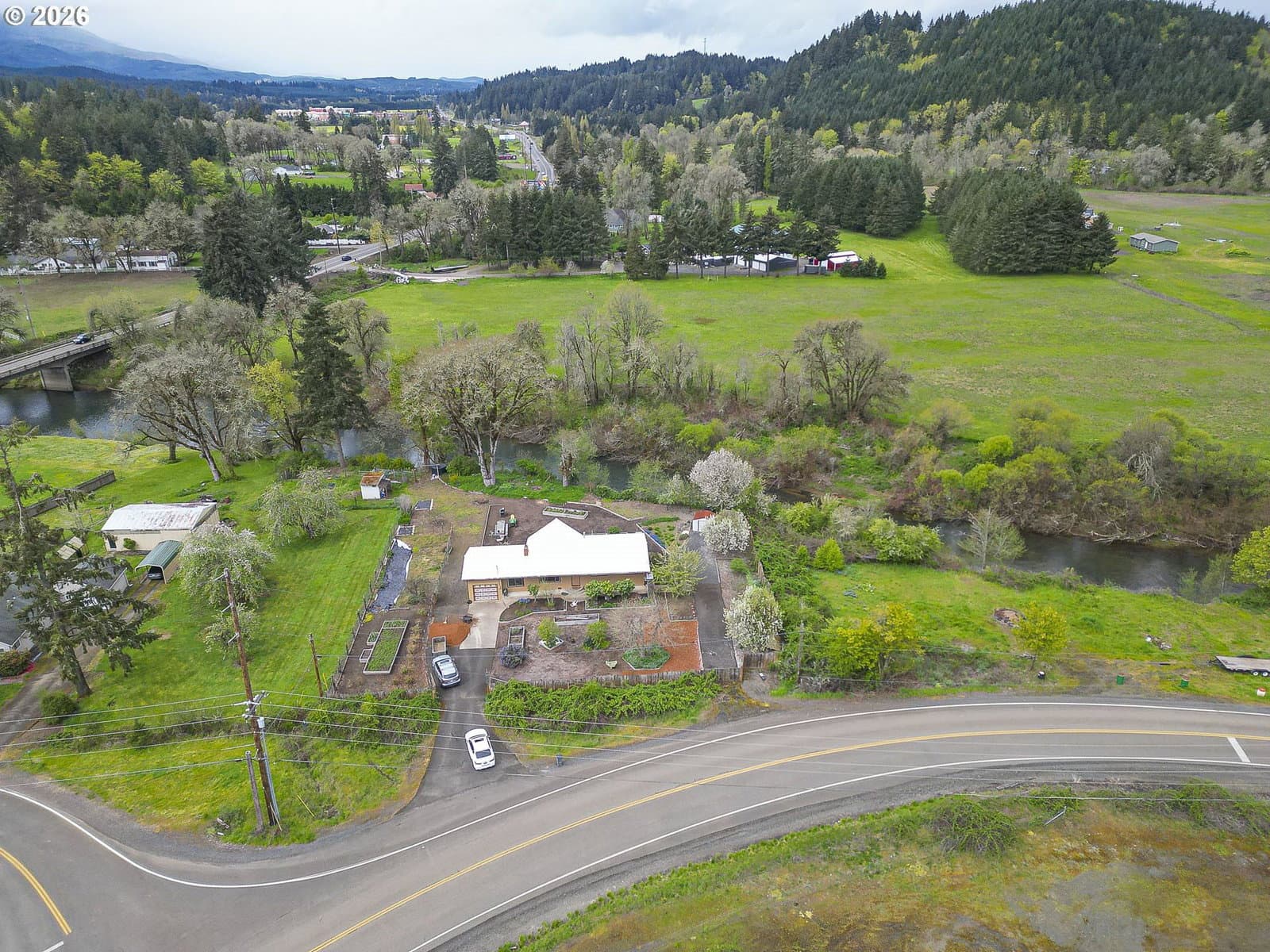 Stunning small acreage with river frontage. A gardener's delight with fruit trees, raised beds and berry bushes. Beautiful wood floors and new carpet in the bedrooms. New gas furnace installed March of 2026. Owner has crafted and installed beautiful new trim all around as well as updated wood countertops. 30 minutes to the beautiful Oregon Coast, 30 minutes to McMinnville and Salem and just minutes from Spirit Mountain Casino.