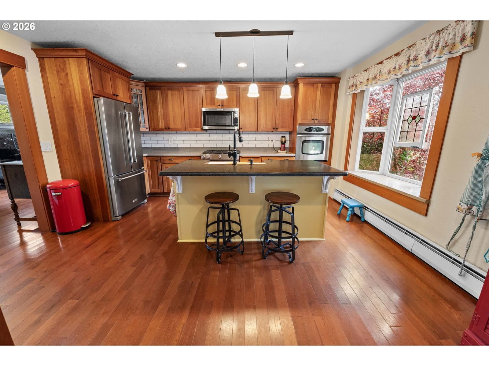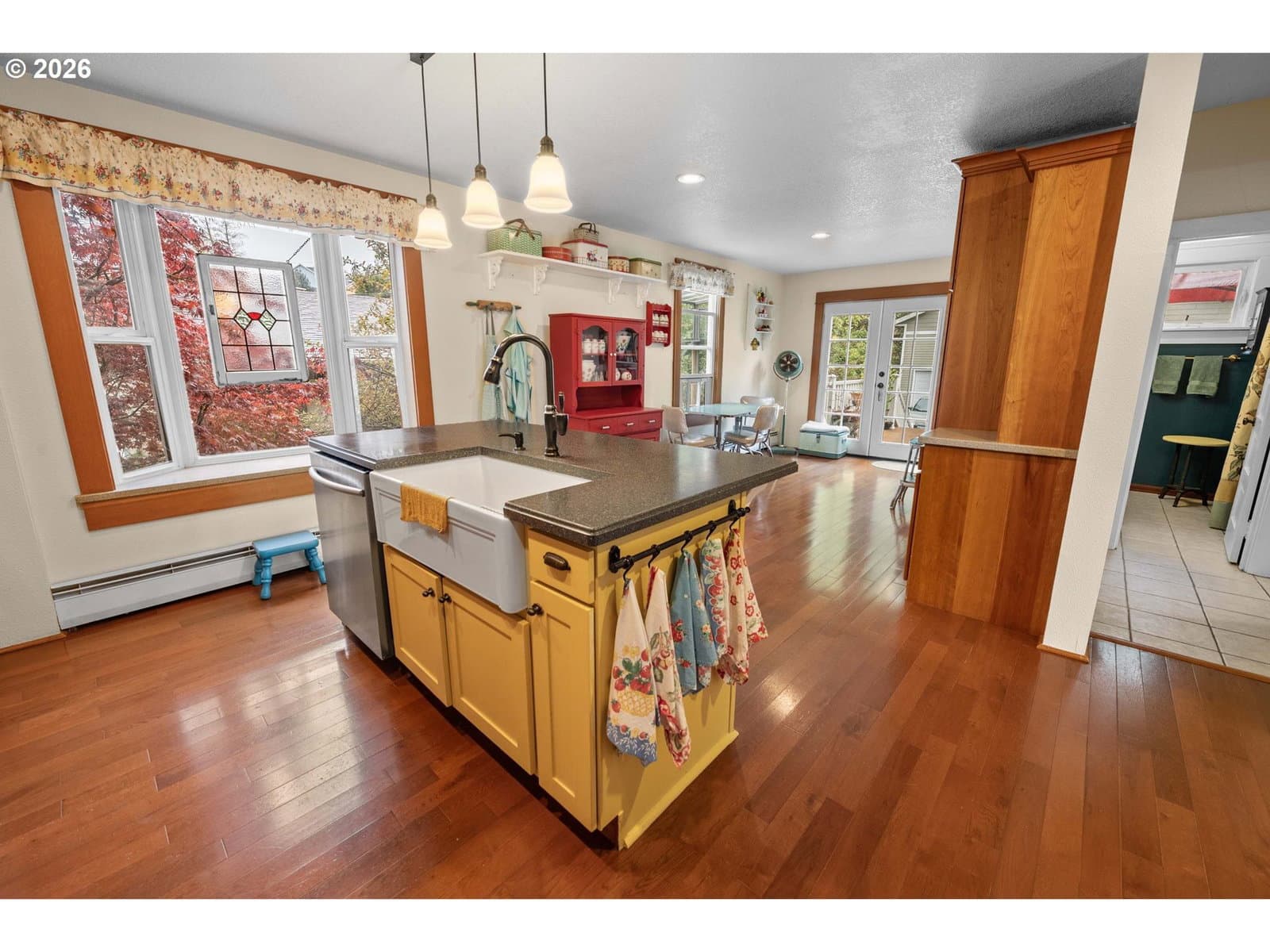 Best of both worlds: A quintessential 1922 Craftsman in Astoria proper with the addition of a modern 35’ x 35’ shop! With peeks of Youngs Bay, this 3 bedroom 2 full bath home has a traditional floor plan - updated kitchen with Corian countertops, Gas range, and beautiful wood cabinetry, a formal dining room and a breakfast nook, a large laundry room, and a partially finished basement makes amazing flex space. Upstairs spa-style bathroom has tile throughout, a luxury soaking tub, rain style shower and “smart vanity” with hidden outlets for all your bathroom tools and accessories. The best kept secret of this home, however, is the large, detached shop with 3 large bays, including one that has a 13’ clearance - a rarity for an in-town home! Shop also has a lofted area for storage galore! Perfect for the collector or hobbyist, or someone who wants to store their boat or small RV on site. Relax in the hot tub from the privacy of your back deck or enjoy the quiet of the covered front porch. Set your appointment to see this special Astoria home today!