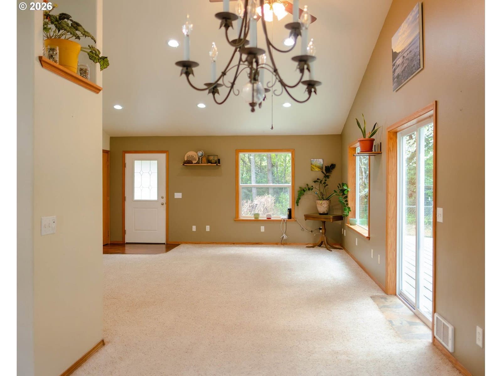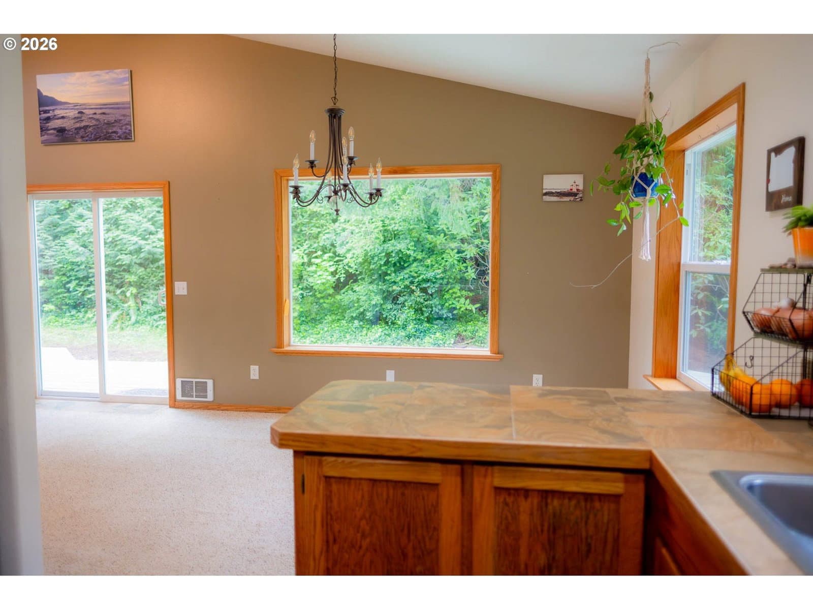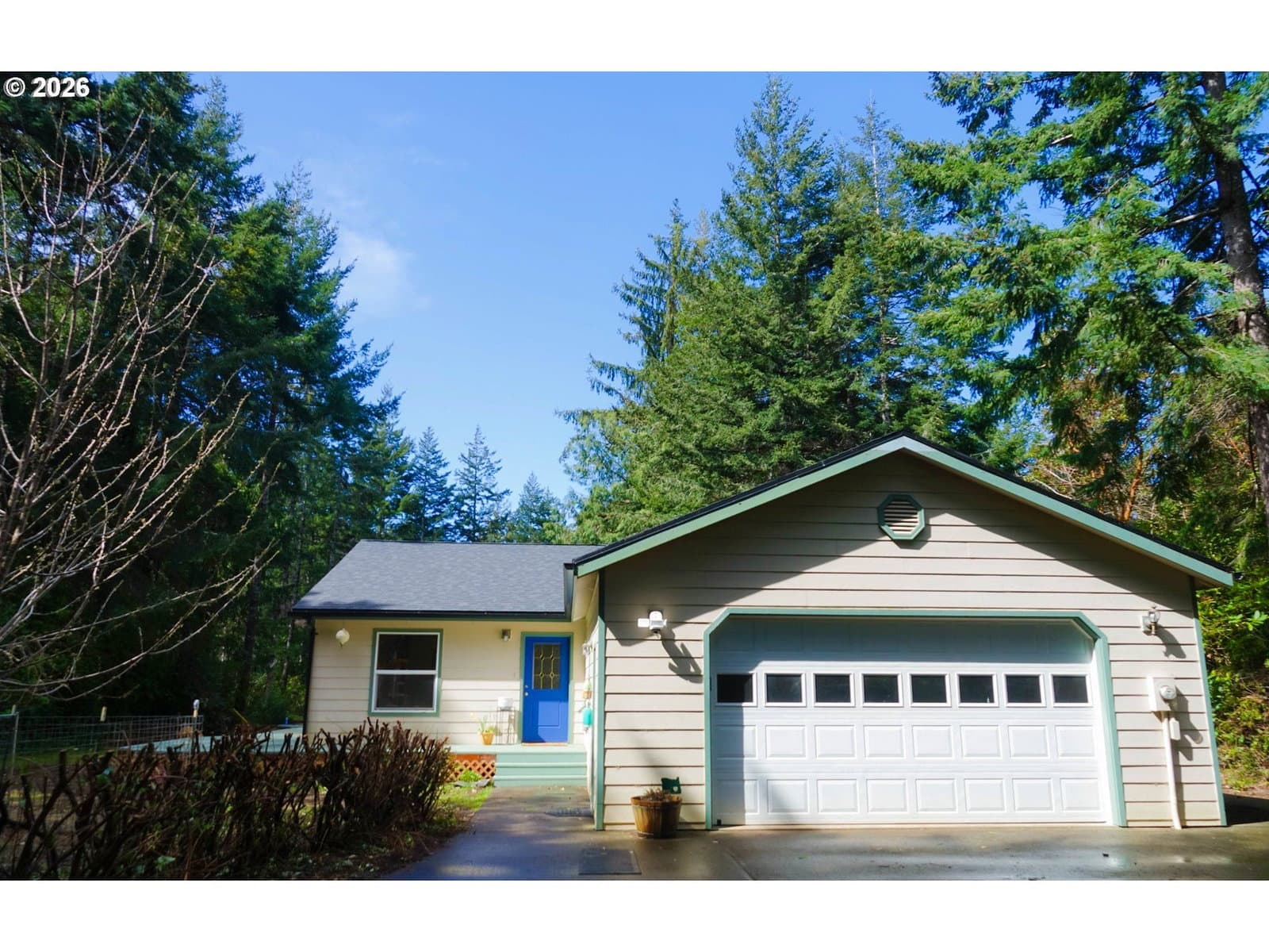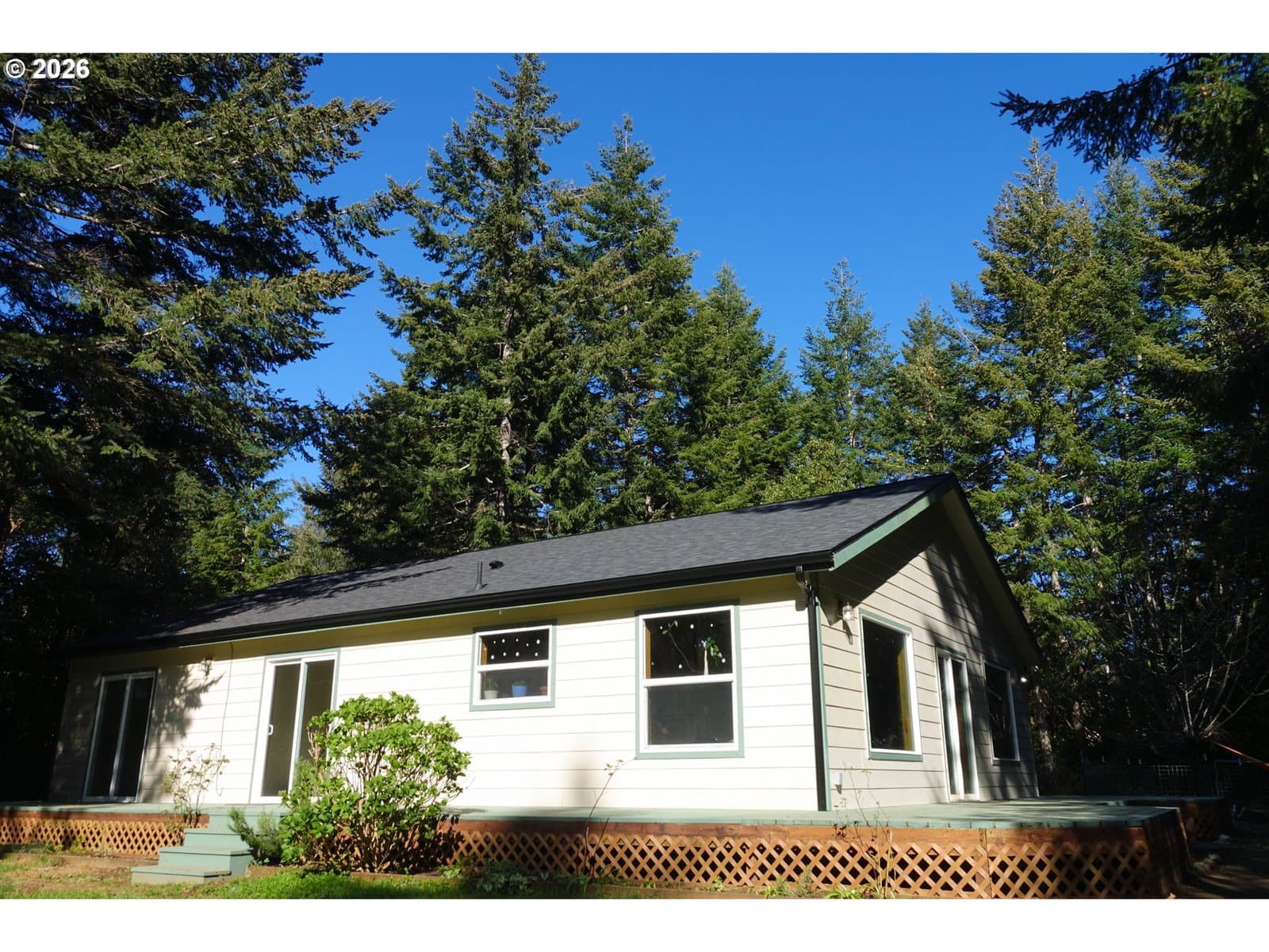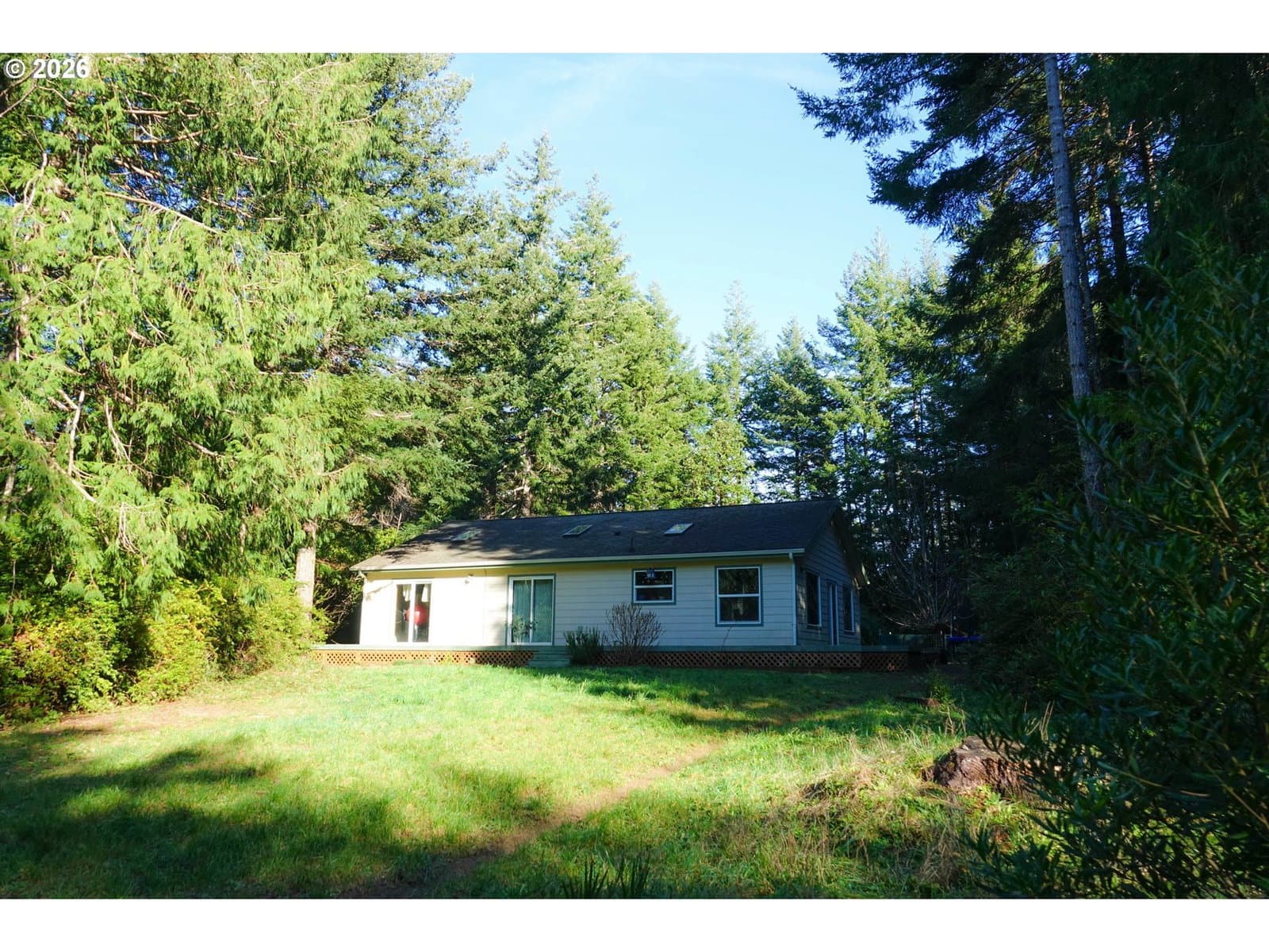 Tucked into a private, tree-lined acre just minutes from the coast, this 3 BD, 2 BA, 1,568 SF home offers a quiet, nature-filled setting in Bandon, Oregon. Recent 2026 upgrades include a brand new roof with warranty, new gutters, new light fixtures, new exterior deck paint + a new and expanded septic drain field which means fewer expenses for a new owner! A wraparound deck extends the living space outdoors, overlooking a spacious yard and a small private trail that adds a simple way to step out and enjoy the surrounding woods. Seasonal highlights include wild pacific golden chanterelles in the fall and huckleberries in the summer ~ an ideal setting for those who appreciate the outdoors. Inside, large windows and sliding glass doors in every bedroom bring in beautiful natural light. Vaulted ceilings in the main living area, along with the layout of this custom built home, makes for comfortable space for everyday living and gathering. The kitchen features custom tiled, heat-resistant countertops, and there is ample storage throughout as well. The property is both usable and flexible, with room in the backyard for a large garden or future projects! A spacious two-car garage adds additional functionality. Set in a wind protected location, this home offers privacy without sacrificing convenience. It is just 10 minutes from Bandon’s beaches, Old Town, Bandon Crossings Golf Course, Lost Lake trails, and the proposed new Bandon Dunes course. A rare combination of privacy, usability, and proximity to the beach. Ask your favorite real estate agent for a link to the home docs & upgrades and schedule your showing!
