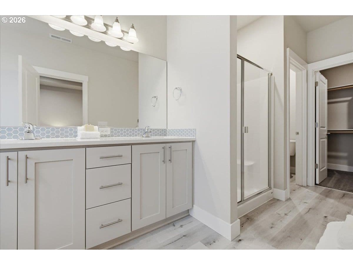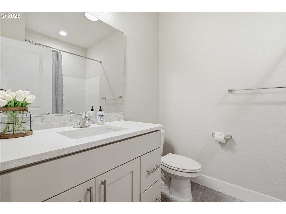 Beautiful 4-bedroom, 3-bathroom home built in 2022, meticulously maintained and truly move-in ready. This thoughtfully designed floor plan features a spacious great room filled with natural light, high ceilings, and quality finishes throughout.The kitchen is designed to impress, showcasing 3 cm slab quartz countertops, subway tile backsplash, stainless steel appliances, gas cooktop, a large island with eating bar, and spacious pantry.Just off the entry, two bedrooms share an adjoining full bath, ideal for guests or a home office set up. The primary suite is complete with double sinks, a soaking tub, walk-in shower, stylish tile accents, and a generous walk-in closet. The fourth bedroom is privately situated down its own hallway. Additional features include a cozy fireplace, laminate plank flooring, an oversized laundry room, motorized retractable awning, energy-efficient heat pump with A/C, a 3-car garage with ample storage, and fully landscaped grounds with fencing and a sprinkler system for easy maintenance.Located in the desirable Creekside Heights community, just under a mile from downtown Battle Ground, this home reflects true pride of ownership and is ready for its next chapter.