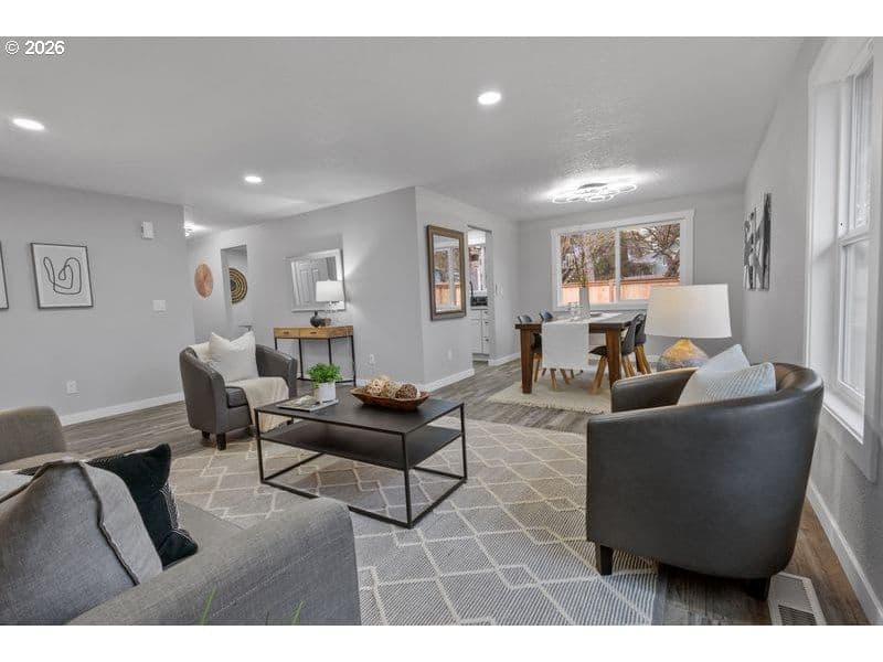 Welcome home to this beautifully renovated single-level 3-bedroom, 2-bath home with two spacious living areas—perfect for everyday living and entertaining. Fresh interior and exterior paint and brand-new LVP flooring create a clean, modern feel throughout the home.The kitchen is perfectly positioned between the dining area and one of the living spaces with a cozy fireplace, and features quartz countertops, stainless steel appliances, an undermount sink, and soft-close cabinetry.The primary suite offers a walk-in closet and a fully remodeled bathroom with a walk-in shower. The hall bathroom has also been tastefully updated with quartz countertops, an undermount sink, and new flooring.Enjoy the large, fully fenced backyard—ideal for relaxing, entertaining, or pets to play. Move-in ready with thoughtful updates throughout!**Seller is a licensed broker.