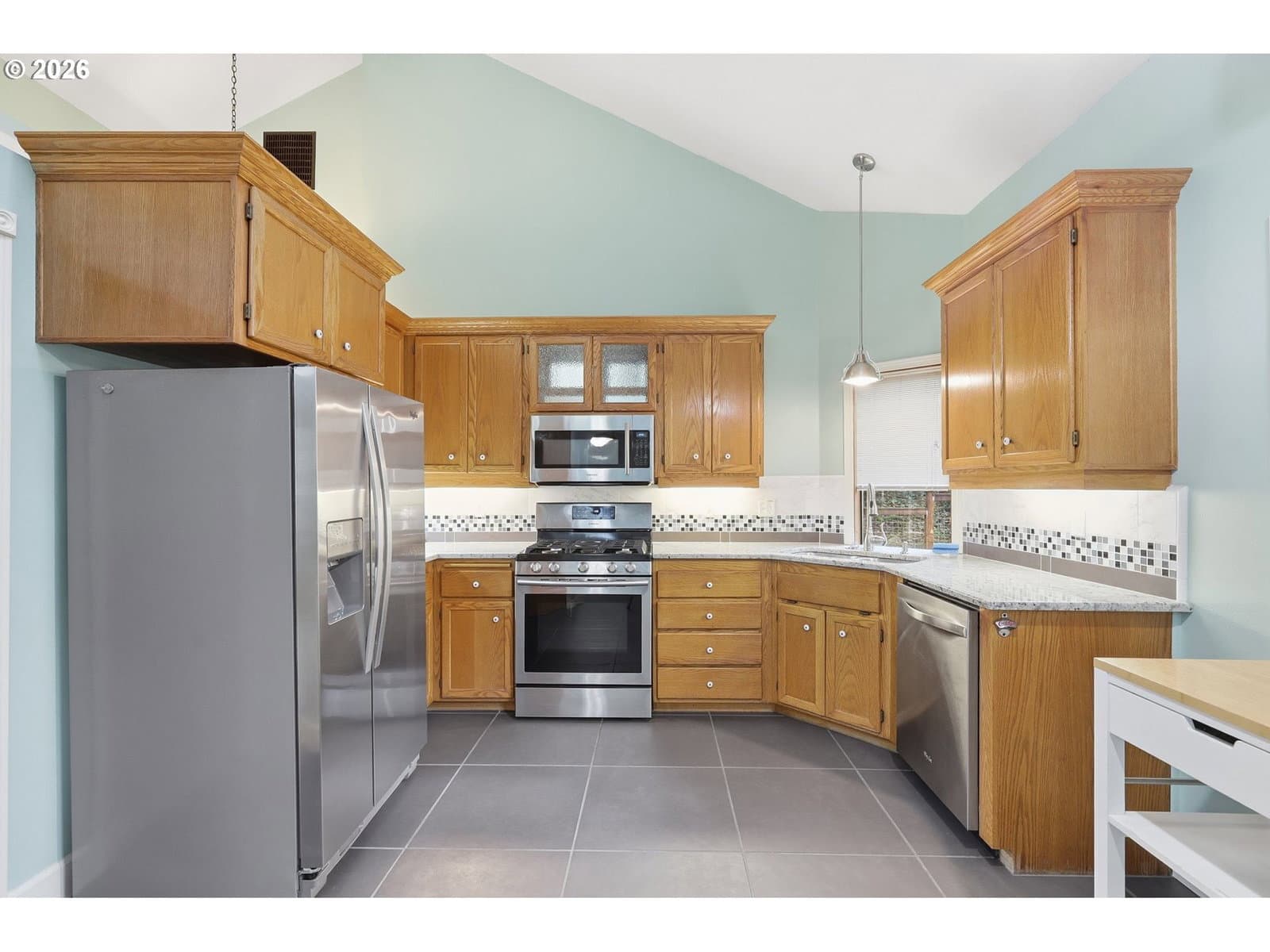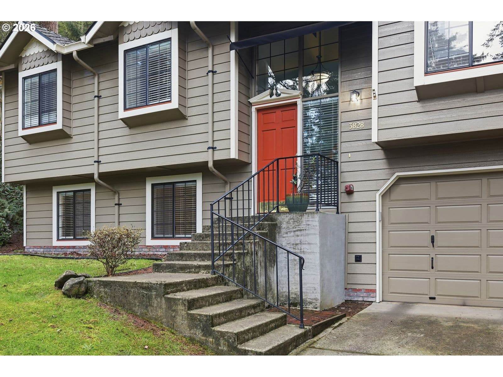 Modern Pacific Northwest Split-Level (and level driveway) — Your Family Retreat in the Southwest Hills: Tucked away on a quiet, wooded cul-de-sac just off Timberline, this storybook Southwest Hills home is as functional as it is beautiful. With its rare level driveway—a true find in this hillside neighborhood—access is effortless for guests, family, and everyday living. Step inside and you’ll immediately feel at home. Sunlight pours through celestial and bay windows, filling the open-concept living area with warmth. Vaulted ceilings create an airy sense of space, while the gas fireplace anchors the room in cozy Northwest comfort. Tasteful updates include beautiful hardwood floors, granite countertops, gas stainless-steel appliances, a ductless heat pump as well as forced air, and newer roof and exterior paint. Every detail has been thoughtfully chosen to blend timeless style with modern convenience. The home’s split-level design offers the perfect balance of connection and separation. Upstairs, you’ll find bright main living spaces and restful bedrooms; downstairs, a full family room, additional bedroom, and bathroom create the ideal setup for extended stay guests, multi-generational living, or a private home office suite. Outside, the fenced backyard feels like a private sanctuary. A spacious deck with a gazebo invites summer gatherings and quiet evenings under the trees. Mature landscaping provides a mix of shade and sunlight, bringing the natural beauty of the Pacific Northwest right to your doorstep. If you’ve been searching for a home in the Southwest Hills that combines warmth, functionality, and a touch of magic, this Modern Pacific Northwest Gem delivers it all—luxury living with everyday ease in one... and again, not to beat a dead horse, but a Level Driveway!!
