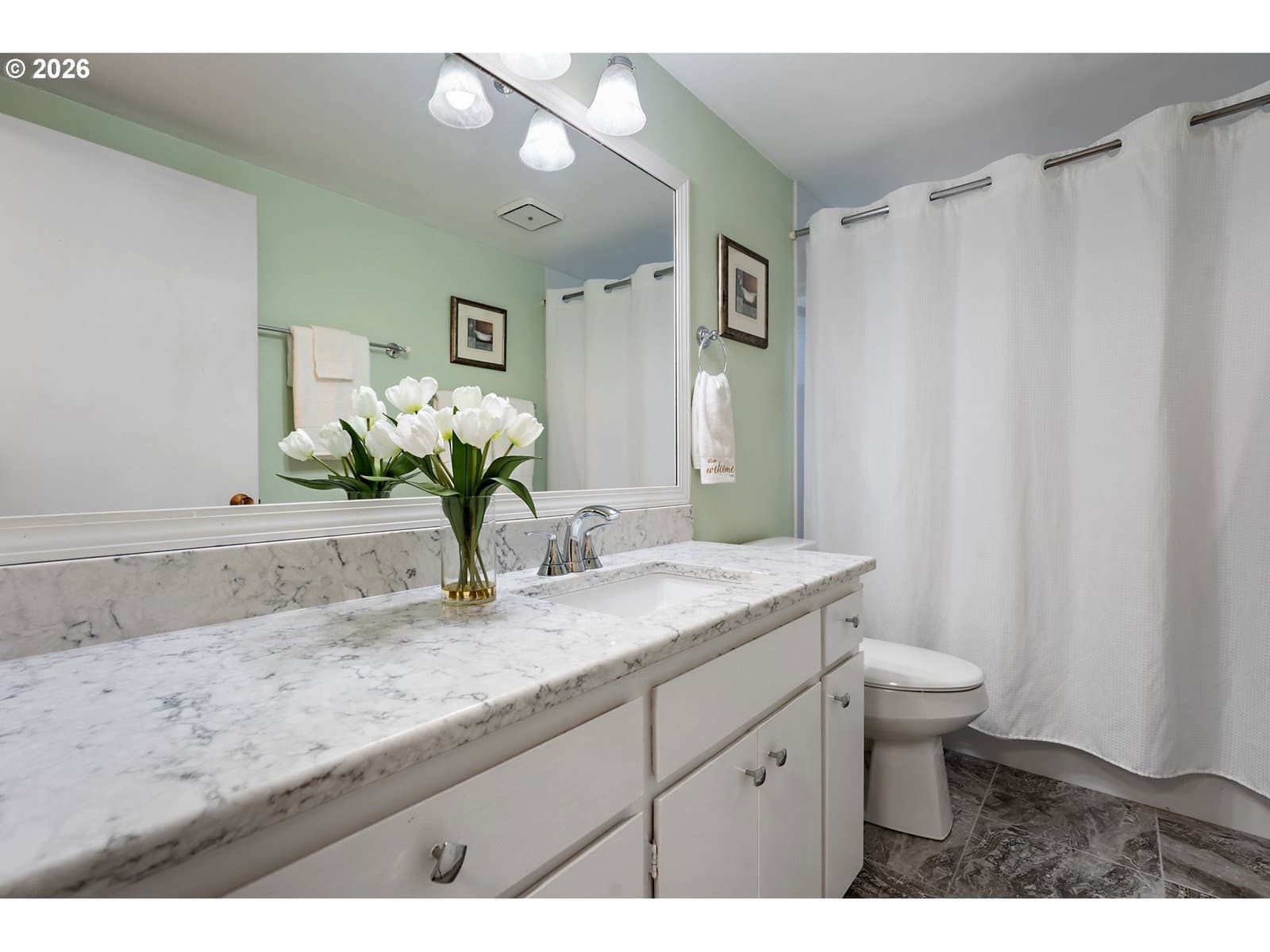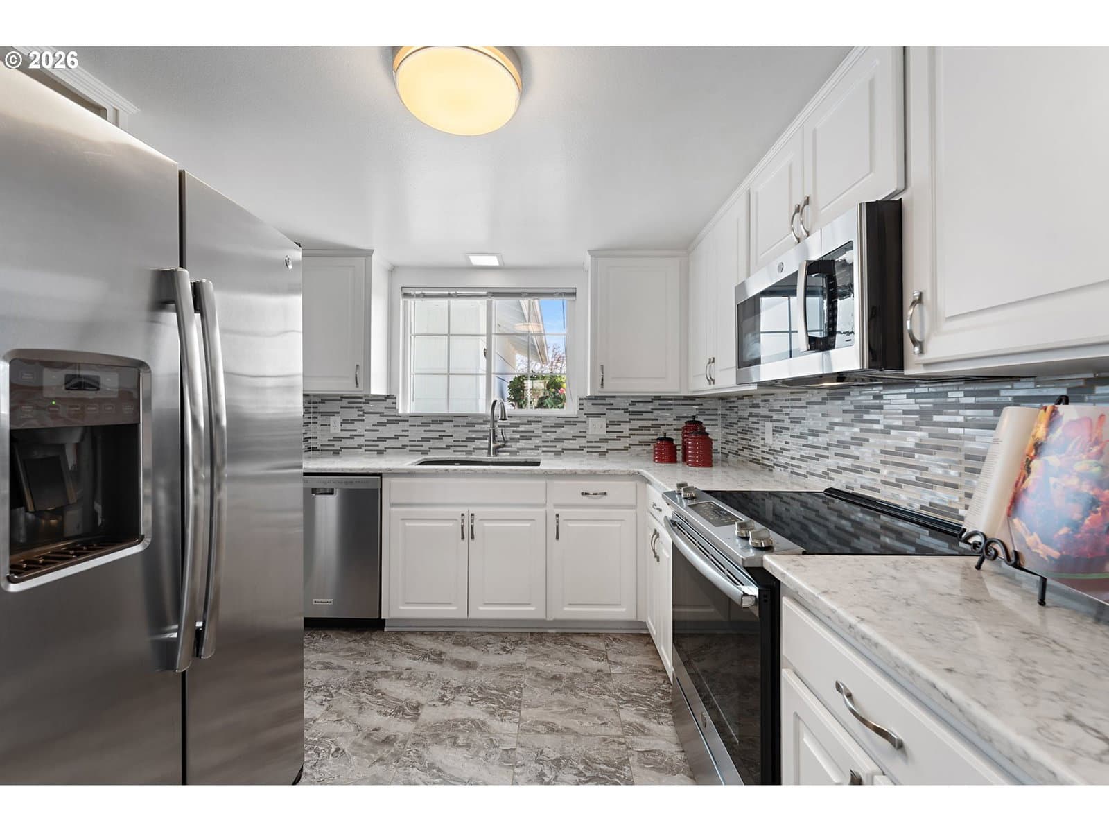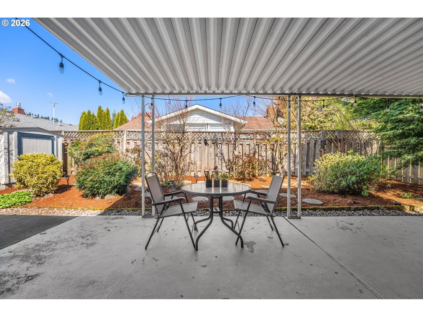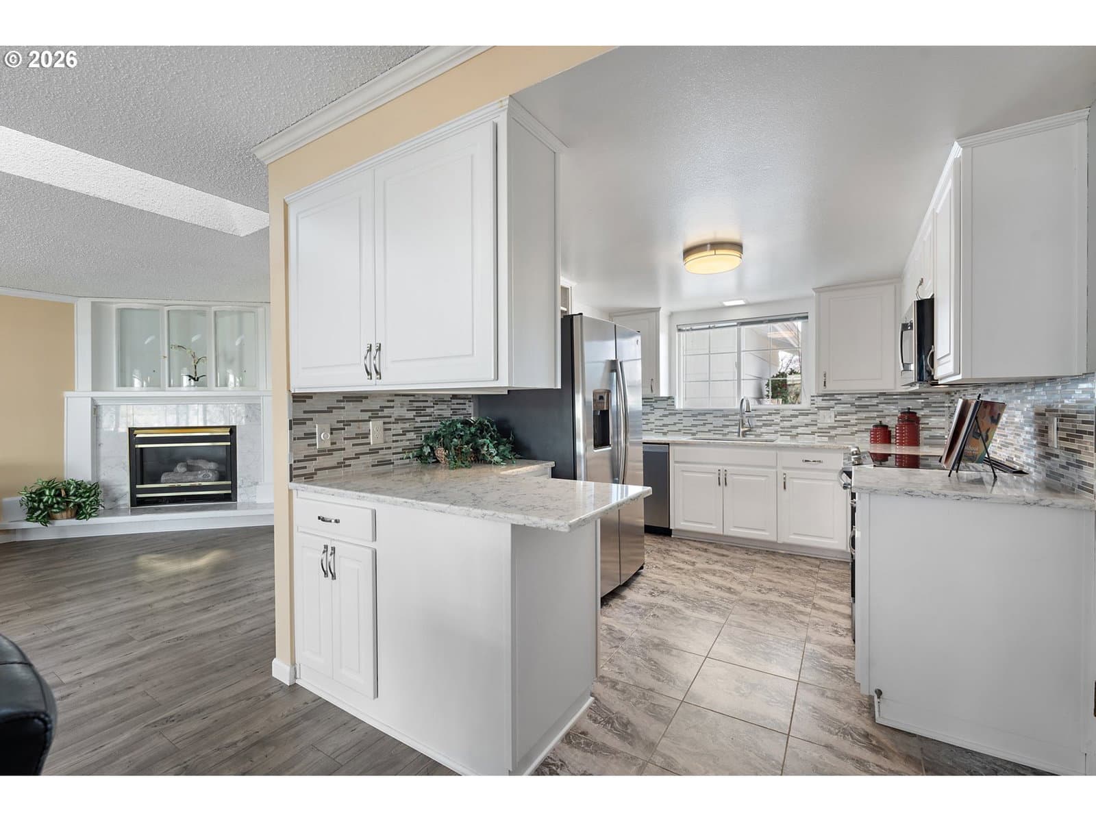 Welcome to 15430 SW King George Dr., where comfort, convenience, and community come together in the heart of the vibrant, award-winning King City Civic Association. This beautifully updated 1,034 sq ft single-level home invites you in with abundant natural light, enhanced by a skylight that brightens the living room. Picture cozy evenings by the gas fireplace, surrounded by built-ins and warm luxury vinyl flooring that flows seamlessly through the main living spaces. The remodeled kitchen is both stylish and functional, featuring quartz countertops, stainless steel appliances, a built-in microwave, an undermount sink, and updated cabinetry—all opening effortlessly to the living area for easy entertaining and everyday living. Both bedrooms feature ceiling fans for year-round comfort, with hardwood floors beneath the carpet awaiting future possibilities. The spacious bathroom features quartz countertops and an oversized layout, adding a touch of luxury to your daily routine. Thoughtful updates—including a new roof (2018), new furnace and A/C (2021), and double-pane vinyl windows—provide peace of mind, while the oversized one-car garage offers excellent storage. Step outside to your private retreat: a nicely landscaped, easy-care fenced backyard with a covered patio perfect for relaxing mornings or evening gatherings. Front yard sprinklers make maintenance simple. Located just moments from golf, pool, library, and a wide array of clubs and activities, this home places you at the center of everything King City has to offer. With easy access to shopping and highways, it’s the perfect blend of serenity and convenience. More than a home—it’s your gateway to an active, connected, and carefree lifestyle. Resolution of Full Pool Settlement Litigation is available at https://mykcca.com/news/resolution-of-full-pool-settlement-2024/. Rentals are not allowed in KCCA.