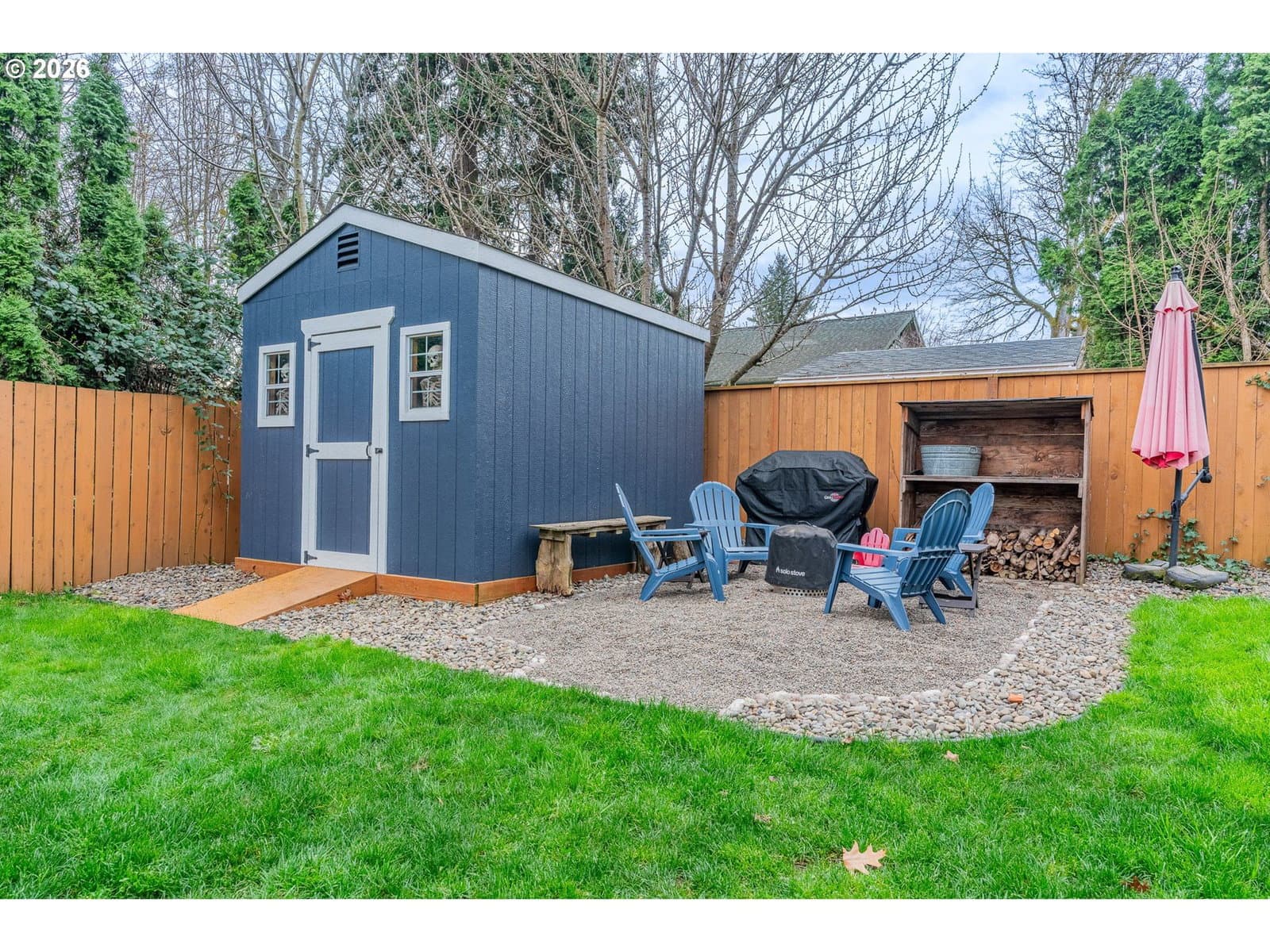Offer deadline Sunday 3/22 @5pm.Open Houses Saturday 2-4 & Sunday 1-3pm.Tuck yourself behind the verdant native landscaping under the expansive covered porch to tour this sweetheart! Classic hardwood floors draw you into the cozy, functional floor plan of this home. The fireplace mantel and large picture frame window center the heart of this single-level ranch you've been waiting for. The home includes three bedrooms and two full bathrooms, plus a dedicated laundry room, a built-in work bench in the garage, and a large storage shed in the backyard. The dining area seamlessly connects the ample kitchen with stainless steel appliances and gas range, to the outdoor covered patio and backyard. Imagine the seasonal opportunities for grilling and entertaining! Spread out the festivities to the outdoor fire pit in the spacious green lawn. This fully fenced yard is primed for your horticultural passions within the raised garden beds, with room for activities to spare.