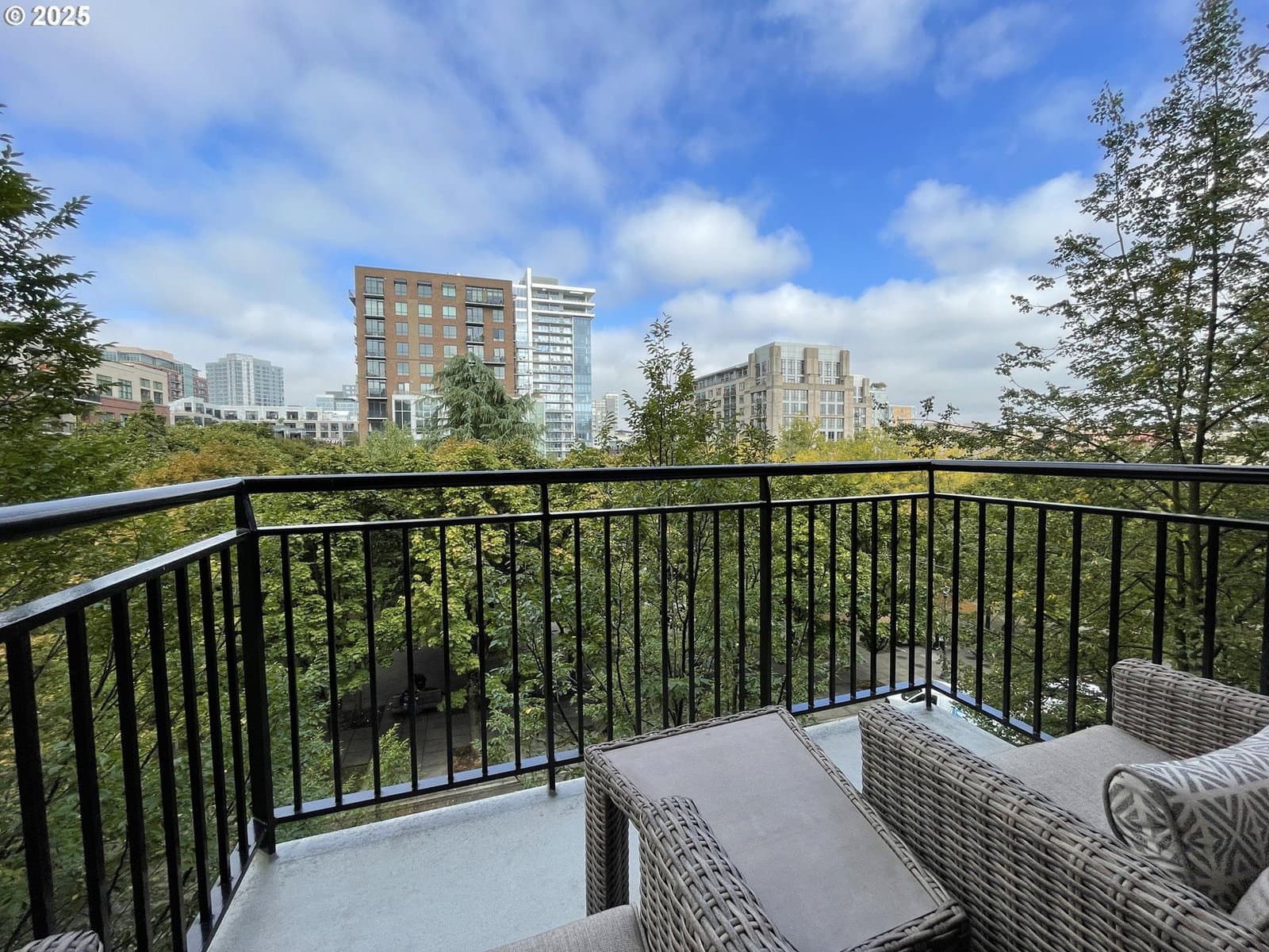 Enjoy all the perks of urban living, while being nestled into this cozy, yet chic, light filled contemporary! Located in the landmark building, Tanner Place, with secure access and a private courtyard. Offering views of Jamison Square from the covered deck and through the stunning floor to ceiling windows throughout. This unique floorplan is ideal as a turnkey pied a terre or primary residence suitable for live/work lifestyle with spacious primary suite and second bedroom functioning as an office / guest space. The wood flooring and wide open floorplan seamlessly flow into the kitchen with limestone tile floors, stainless appliances, slab granite and a peninsula with plenty of bar seating! Built-ins in every space, storage galore and lives large! This unit is perfect for entertaining with generous space for any sized dining table, a cozy gas fireplace and built in bar. The plush owner's suite includes double walk-in closets, spa bath, double sinks in vanity and walk in shower. All utilities are included in monthly dues aside from electric. Deeded parking space and storage unit are part of the sale. New HVAC system installed specific to the unit and new roof on the building - paid in full - no outstanding assessments.