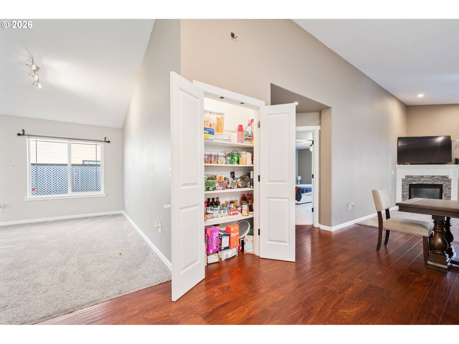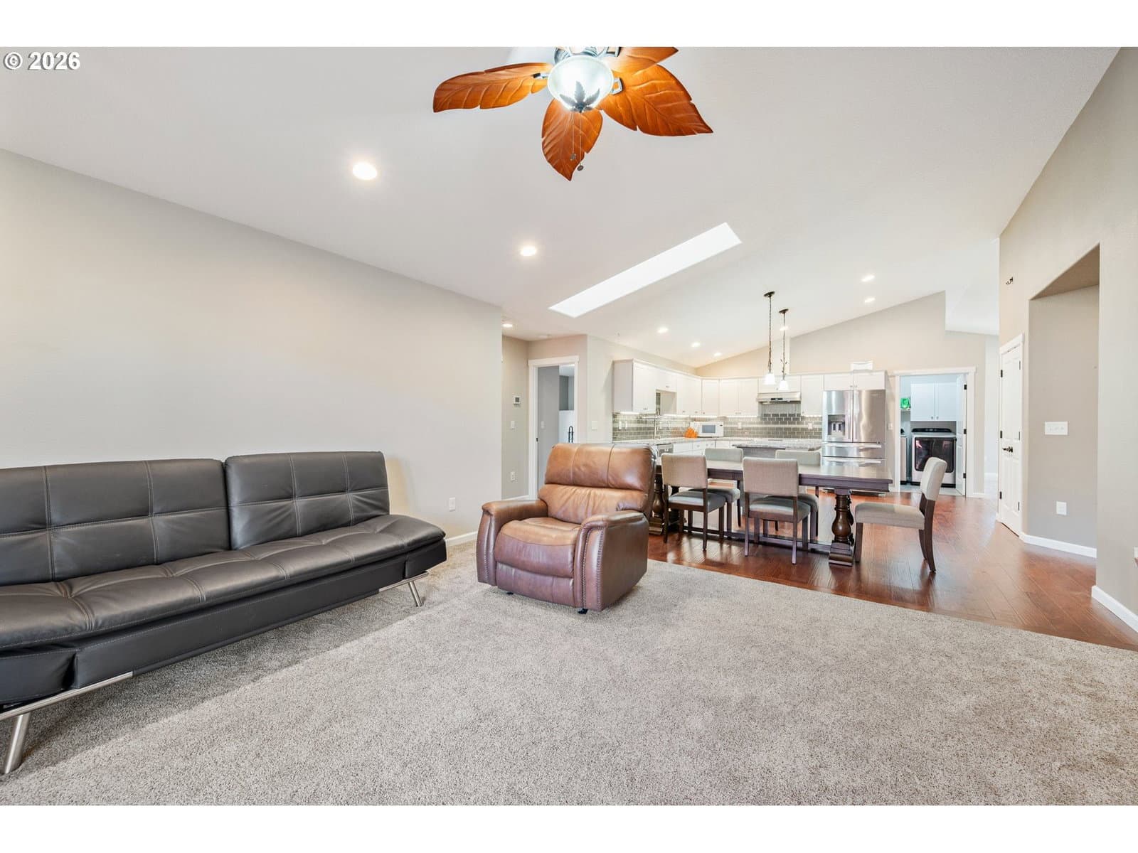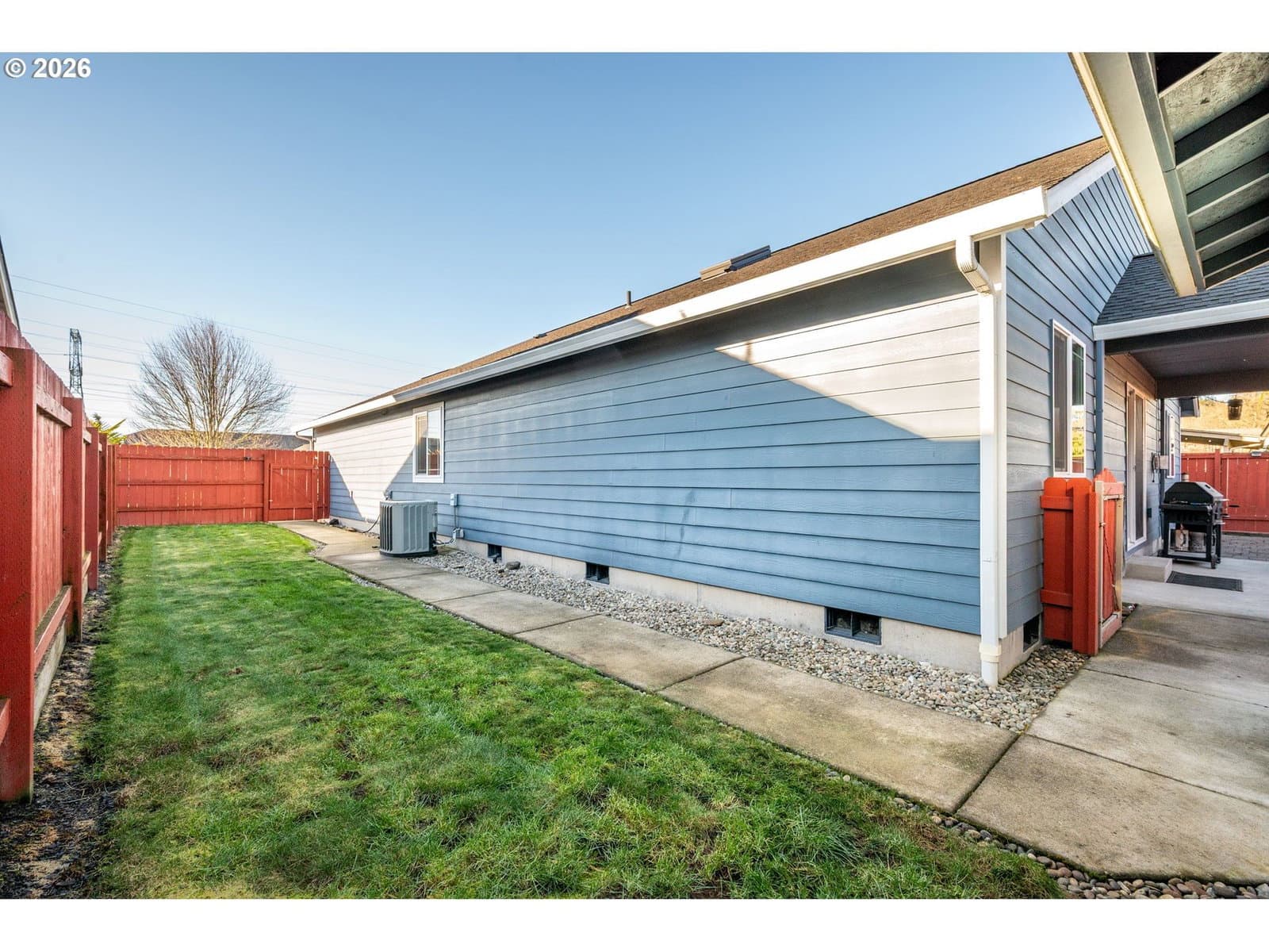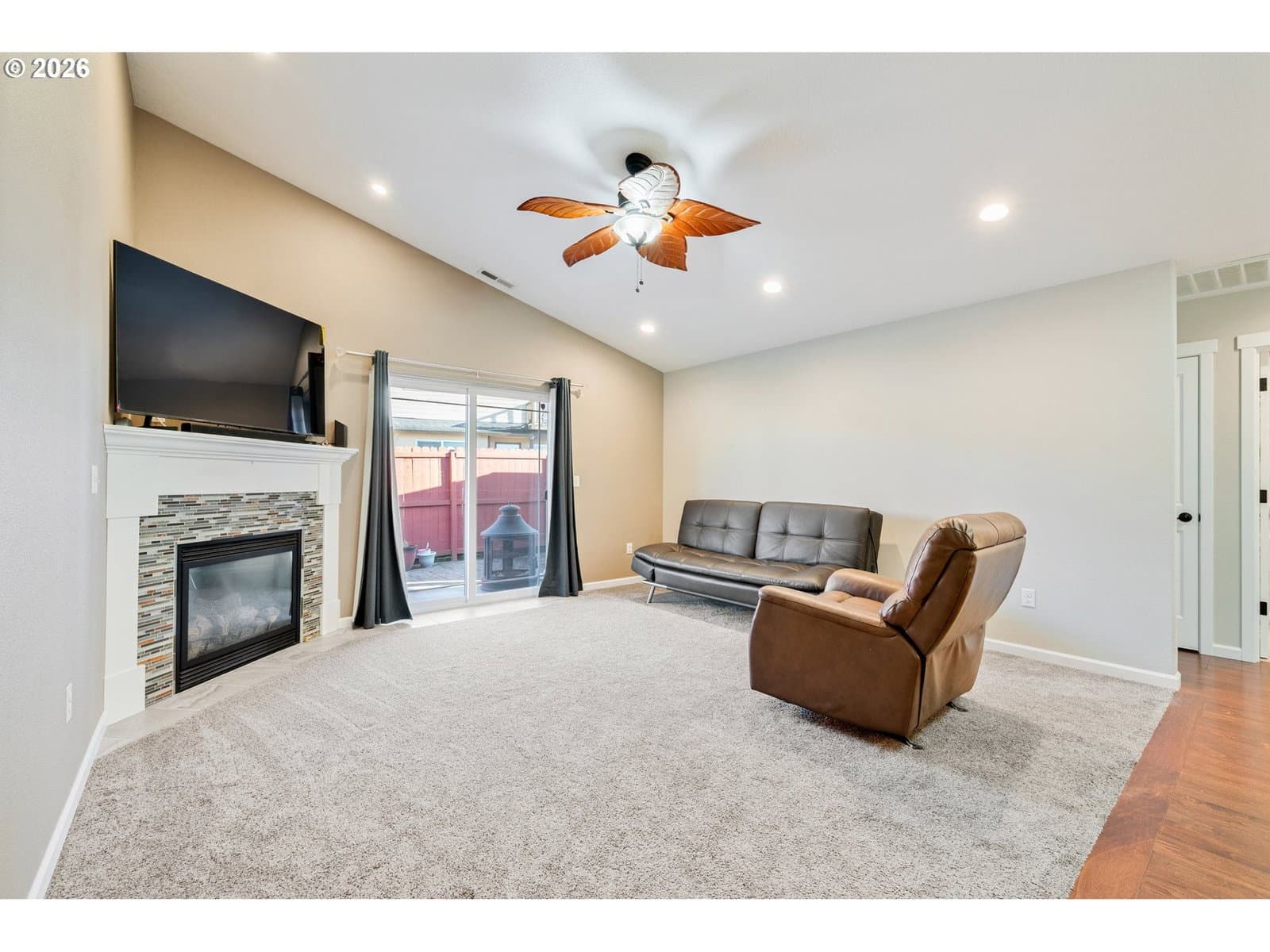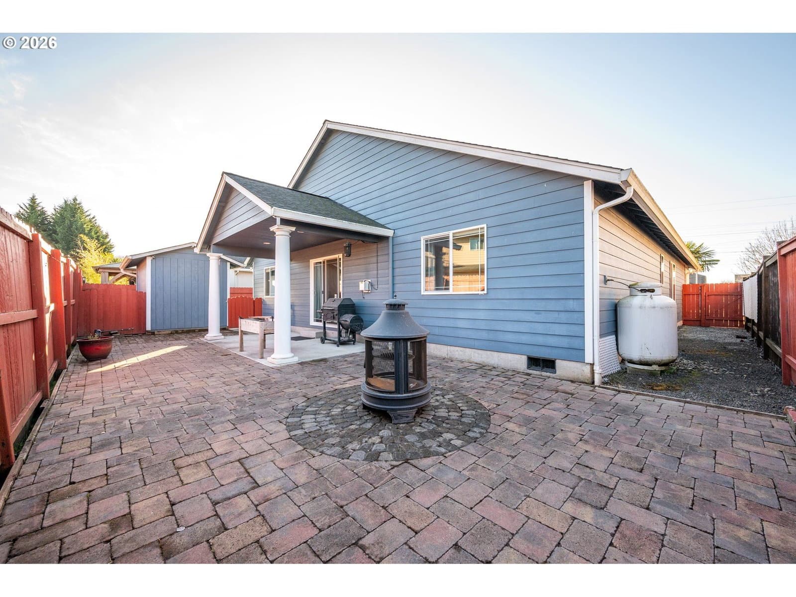 Welcome home to this beautifully maintained newer construction 3-bedroom, 2-bath featuring a great room concept with an additional vaulted front living room that adds space and charm. The custom kitchen is a true standout with granite countertops, stainless steel appliances, a massive island perfect for entertaining, and upgraded pull-out cabinetry for maximum storage and functionality.The spacious primary suite features a walk-in closet, double sinks, and a tiled walk-in shower. Cozy up in the living room next to the propane fireplace, or step outside to enjoy the fully fenced backyard complete with a covered patio—perfect for year-round outdoor living.Additional highlights include an oversized driveway with room for RV parking, a storage shed, and a low-maintenance yard ideal for easy living. This home checks all the boxes—don’t miss your opportunity to make it yours!