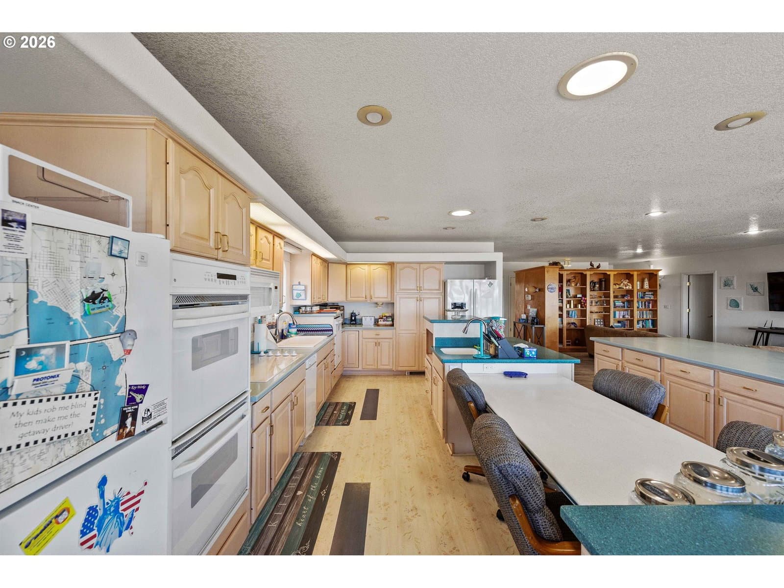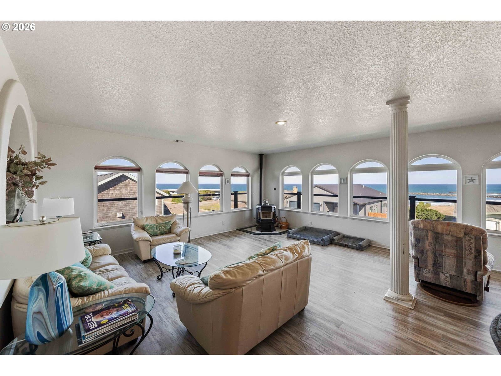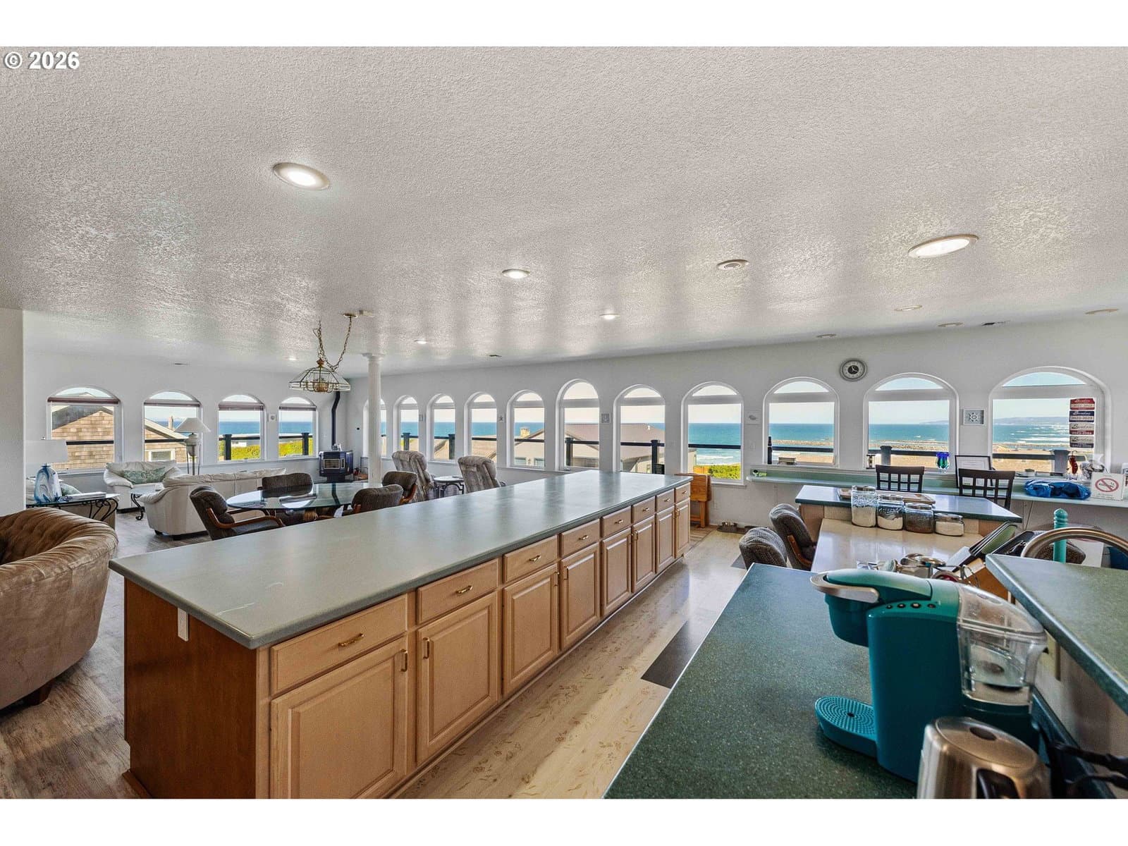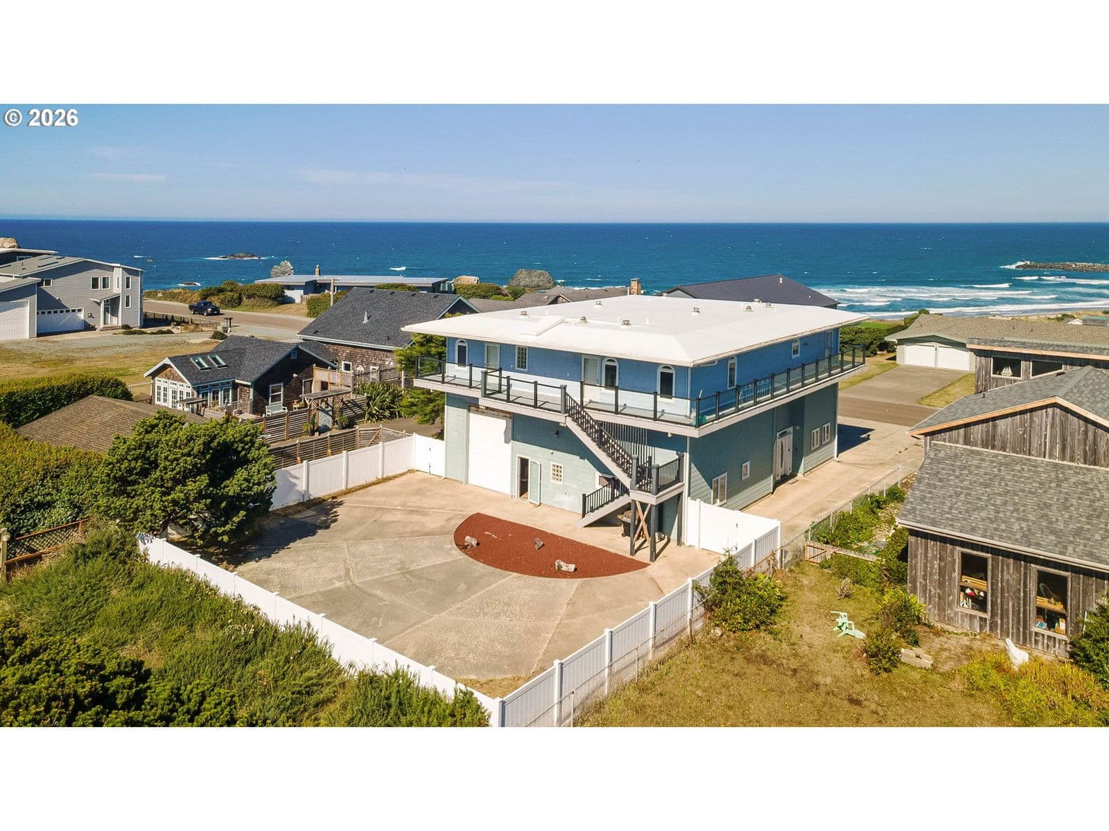 ONE-OF-A-KIND CUSTOM HOME AT AN UNBEATABLE PRICE WITH UNMATCHED OCEAN VIEWS/ NEARBY BEACH ACCESS & ELEVATOR! For the first time since it was built in 1997, this extraordinary home is available, offering a level of design, functionality and setting you won’t find anywhere else. County values at $895k and from the ground up, this property was crafted to be truly unique. The home is centered around 3 massive RV garages cleverly tucked beneath the residence and designed with both front and rear access so you can pull in and out with ease. Just off the garage, you'll find a main-level bedroom and an attached en-suite bath that has been fully remodeled, offering ideal space for guests. From the foyer, step into the home’s elevator and ride effortlessly to the second and third floors. The second level provides abundant storage and opportunity for expansion, while the third floor is the heart of the home. Featuring 3 generously sized bedrooms and 2 full bathrooms. The primary suite offers a double door entry, walk in closet and a spa-like ensuite with double sinks and an oversized walk-in shower. All 3 bedrooms include private access to the wraparound covered deck, where you can soak in jaw-dropping panoramic views of the Pacific Ocean, Lighthouse and a front row seat to Bandon’s iconic Table Rock. The open-concept living area and chef’s kitchen are framed by over 15 windows that capture the unbelievable scenery. The kitchen includes double ovens, a cook island with prep sink, a second island with pull-out cabinetry and built-in seating to enjoy the view. A custom bookcase, built-ins and a pellet stove add warmth and character to the living room. The fully fenced backyard is low maintenance and perfect for outdoor enjoyment. Built with full accessibility in mind and located in one of Bandon's most sought-after neighborhoods, just cross the street to multiple beach access points. This is not just a home; it’s a statement piece on the Oregon Coast.