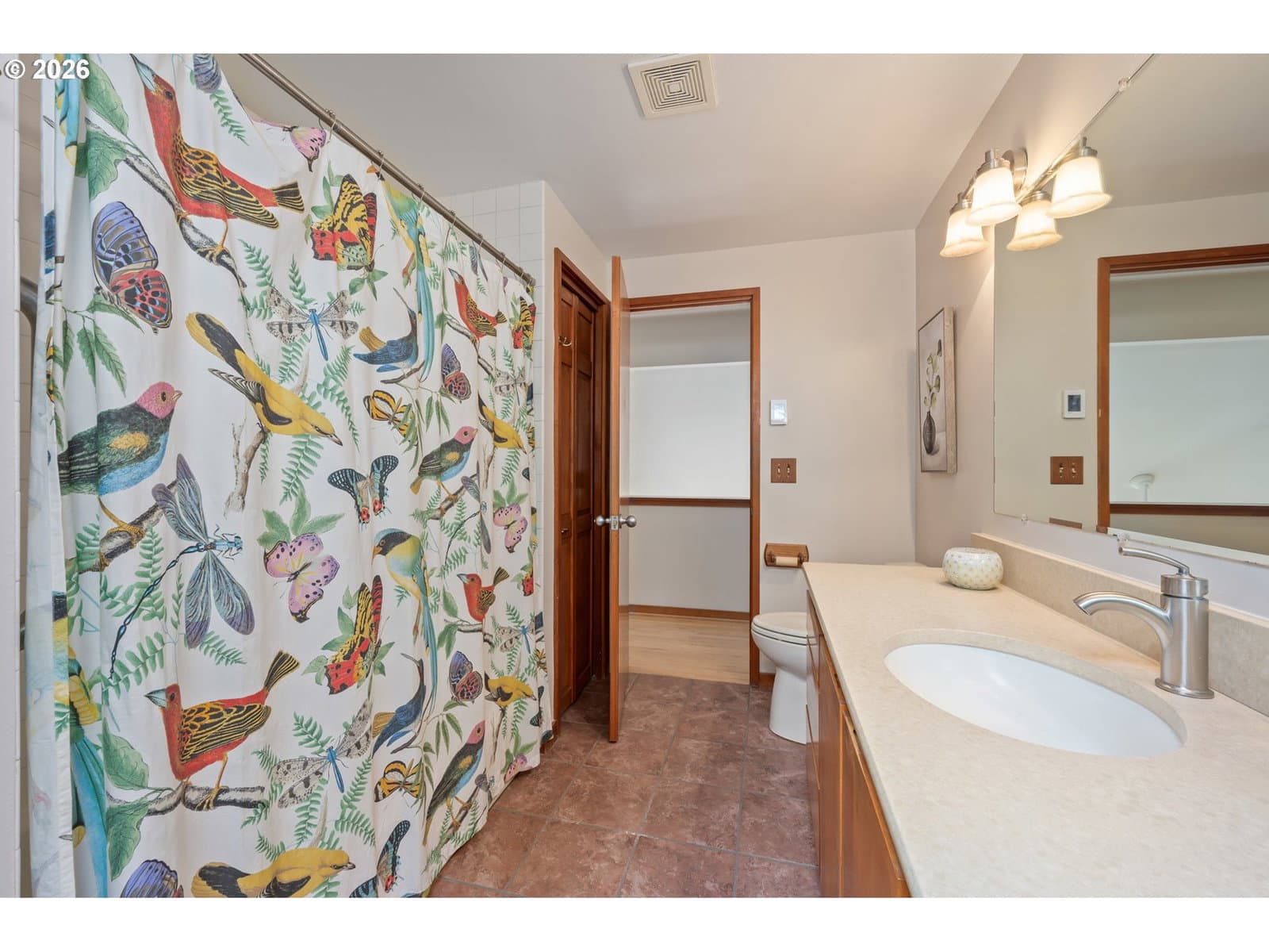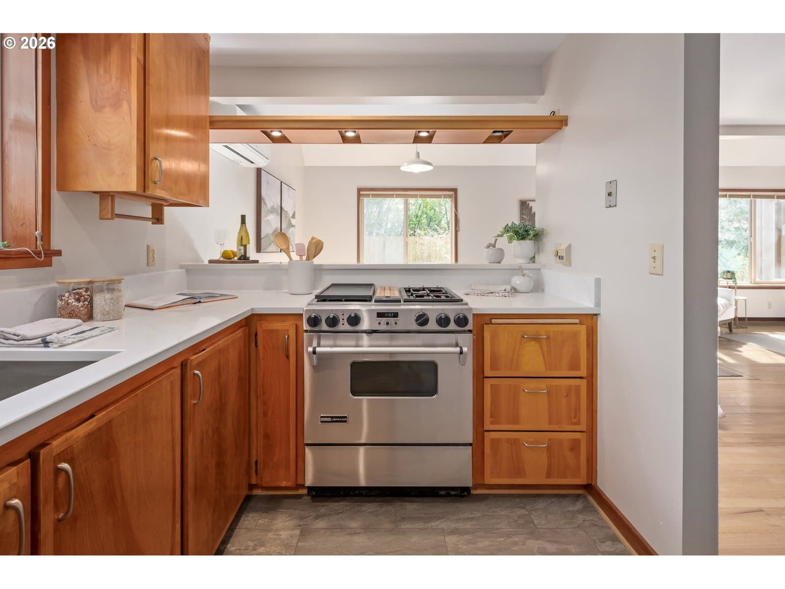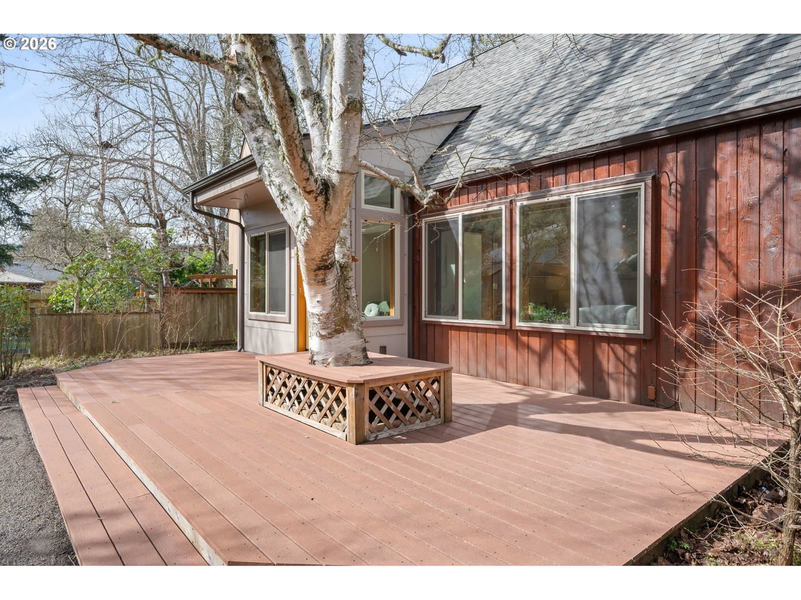 1642 E 43rd Ave is authentic Northwest Contemporary architecture in sought-after South Eugene, defined by vaulted ceilings, tall windows and skylights, cedar siding, and quality wood craftsmanship. Rich fir wood accents, including baseboards, window trim, doors, and hardwood floors, showcase the original design, while thoughtful updates and fresh paint throughout support modern living. The updated kitchen features quartz countertops, tile floors, stainless steel appliances, and a garden window that brings in additional light while maintaining the home's theme of bringing the outdoors in. The flexible layout offers great separation of space, with two bedrooms and a full bath upstairs, in addition to a bedroom, bathroom with shower, and laundry on the main level, offering ideal spaces for guests, work from home, or multi generational living. A gas fireplace creates warmth in the center of the home, and the sunroom is a true year round extension of the house with heated tile floors for comfort in every season. Step out onto the back deck and take in the fully fenced front and back yards that feel peaceful and secluded. With zero grass to maintain, the treed and wooded garden is weeks away from beautiful blooms and includes walking paths and an irrigated drip system designed to keep the landscape thriving. A new roof, passive solar design, zonal heating and cooling, and a tankless gas hot water heater add modern efficiency. Located blocks from Shadow Wood Park and multiple trails including Rexius Trail, Amazon Parkway and Headwaters Trail, and Ridgeline Trail. Approximately 0.3 miles to bus stops on Amazon Dr. Within two miles or less are restaurants, coffee shops, grocery stores, as well as Ridgeline Montessori, Charlemagne, Edgewood, Spencer Butte, and Village schools. Schedule your private showing to see all this beautiful home has to offer!