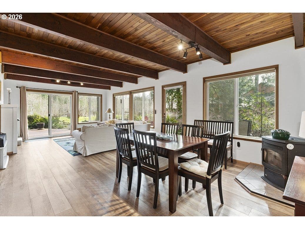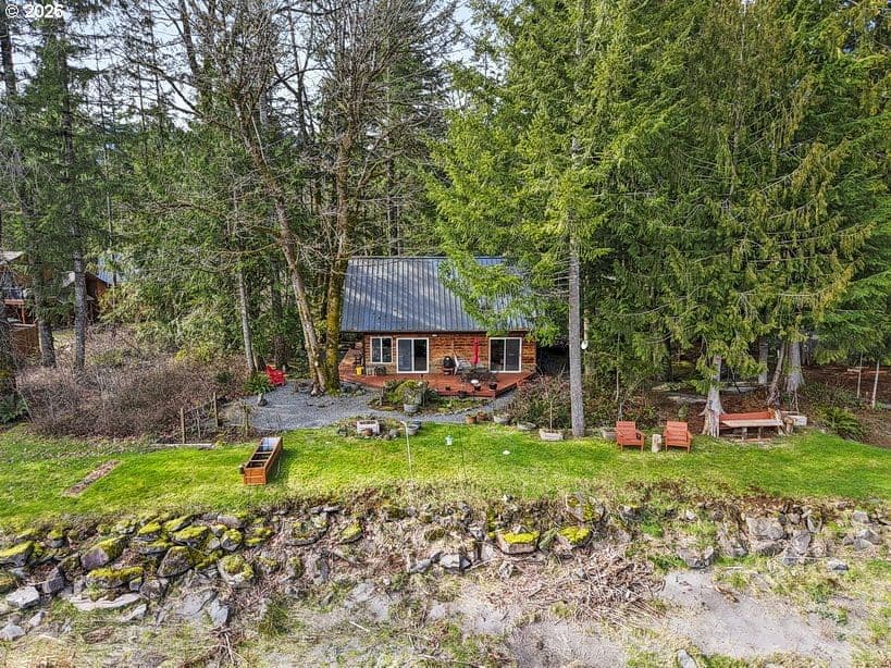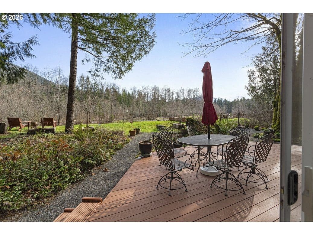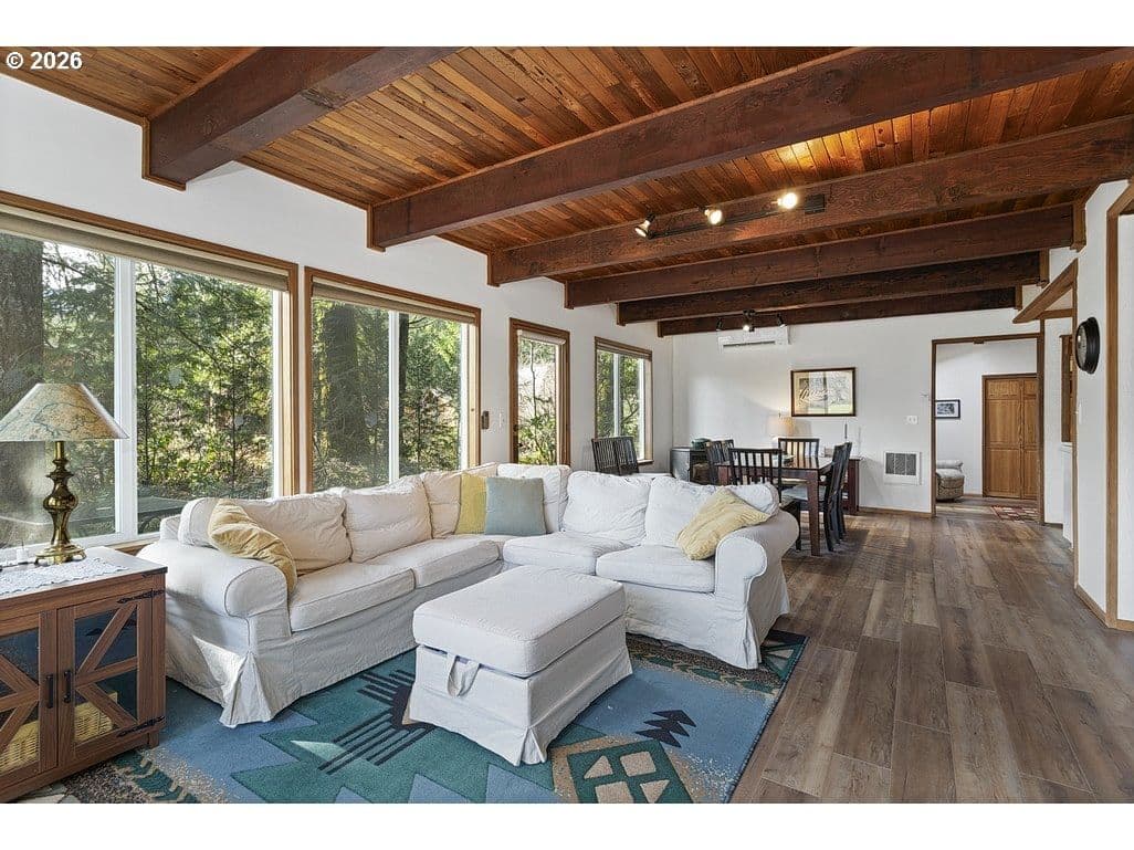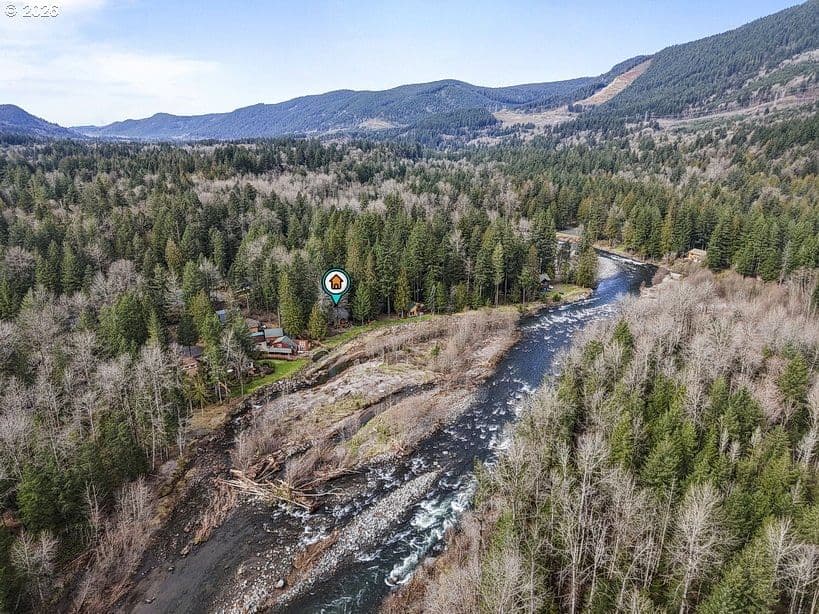 This charming 3-bedroom, 2-bath cabin-style home is being sold together with the adjoining separate tax lot with river frontage, creating a rare .36-acre sanctuary of tranquility. The home itself enjoys stunning river views, the perfect combination for a true nature-lover’s escape. Wake each morning with coffee on the deck as birds dive and dance along the water, and unwind in the evenings to the soothing sounds of the river as the day fades away. This is not just a home—it’s a lifestyle.Inside, the cozy cabin features an open living room, abundant windows and sliding doors that frame spectacular downriver views, newer luxury plank flooring throughout, a durable metal roof, and a heat pump added in 2024. The main-floor primary bedroom includes an attached full bath, while two additional upstairs bedrooms share a second bathroom, ideal for guests or family.Both the home and the separate tax lot are being sold together as one package, opening the door to exciting possibilities—perhaps an ADU, guest retreat, or additional outdoor living space. Nestled on a quiet cul-de-sac, this well-loved home offers the best of location and serenity: Welches and Mt. Hood to the east, Sandy to the west, and nature at your doorstep. With your vision and personal touches, this special property will become your dream river escape.