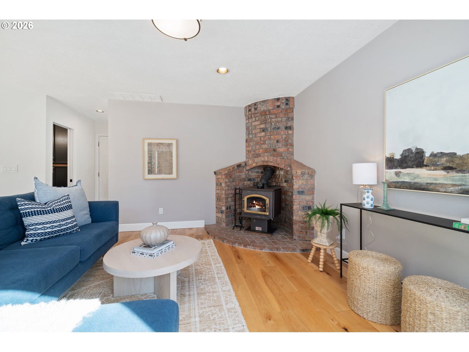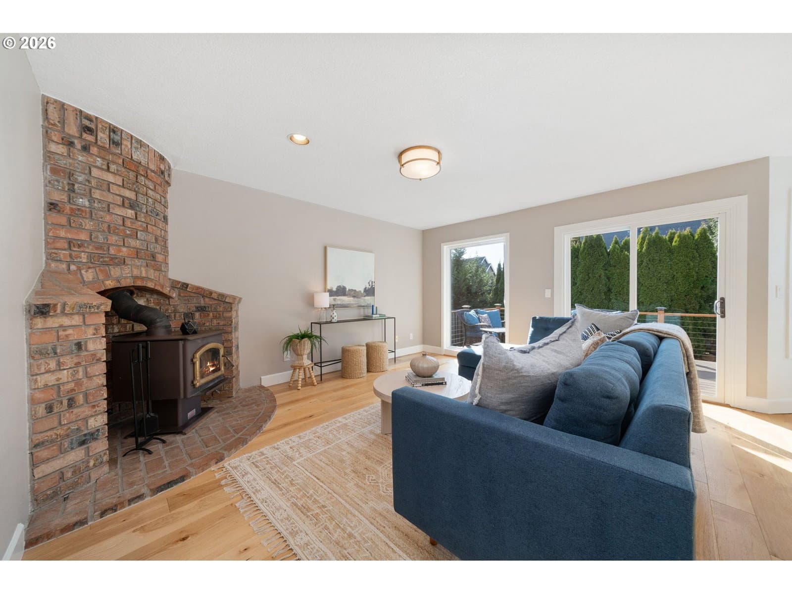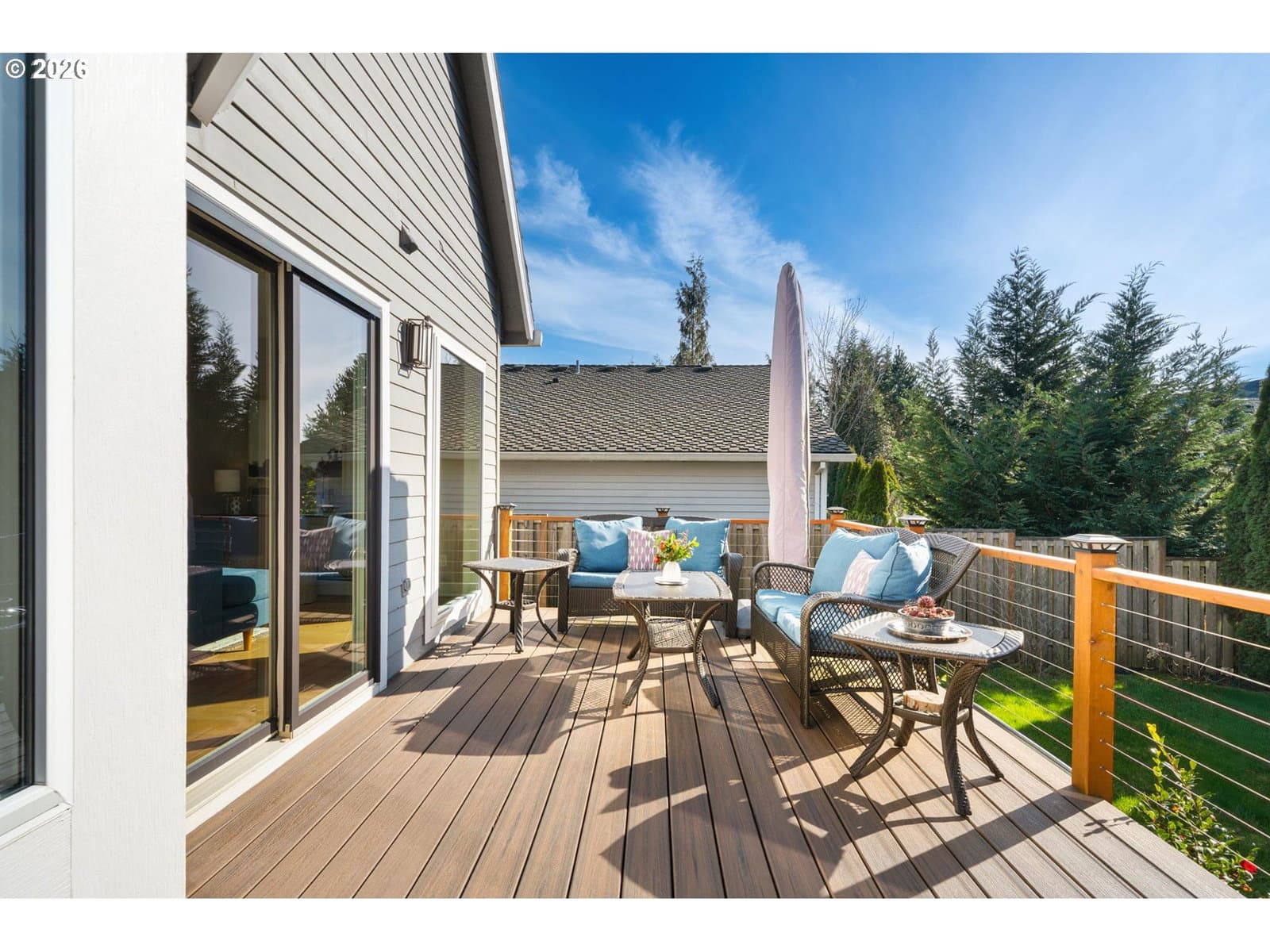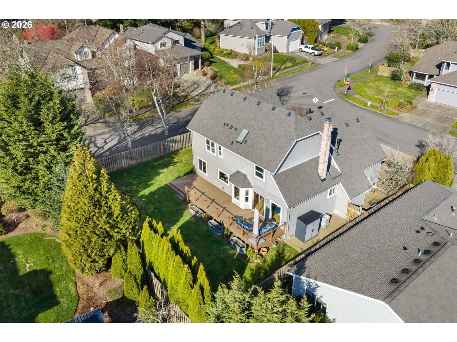 Located on a quiet cul-de-sac in West Linn’s Hidden Springs neighborhood, this well-maintained 4-bedroom, 2.5-bath home offers 2,389 square feet of comfortable living on a flat, fenced corner lot. Known for its established streets and convenient access to parks, pathways, and everyday amenities, Hidden Springs offers a peaceful residential setting with excellent connectivity, and is extremely close to top-rated neighborhood schools - both Trillium Creek Primary and Rosemont Ridge Middle Schools are under 0.3 miles away. The corner-lot placement provides added privacy and flexibility for outdoor use. The main level features a classic circular floor plan with formal living and dining rooms, flowing into the beautifully remodeled kitchen and family room. Completed in 2020, the kitchen showcases quartz countertops, bright shaker cabinetry with cooktop island, and updated appliances—creating a clean, timeless aesthetic. The family room is anchored by a cozy wood-burning stove with brick hearth and opens to a private backyard and deck, ideal for indoor-outdoor living. This space functions as the true gathering area of the home. Upstairs includes four bedrooms and two full bathrooms, with the primary suite thoughtfully separated for added privacy and offering a functional layout ready for future personalization. Major updates include a 50-year roof (2015), crawl space upgrades (2015), new windows, siding, and exterior paint (2017), wide-plank hardwood floors (2018), kitchen remodel and new furnace and A/C (2020), and deck improvements. (2024). Conveniently located near downtown West Linn and Lake Oswego, with easy access to major commuter routes. A well-cared-for home offering comfort today and opportunity to personalize over time.