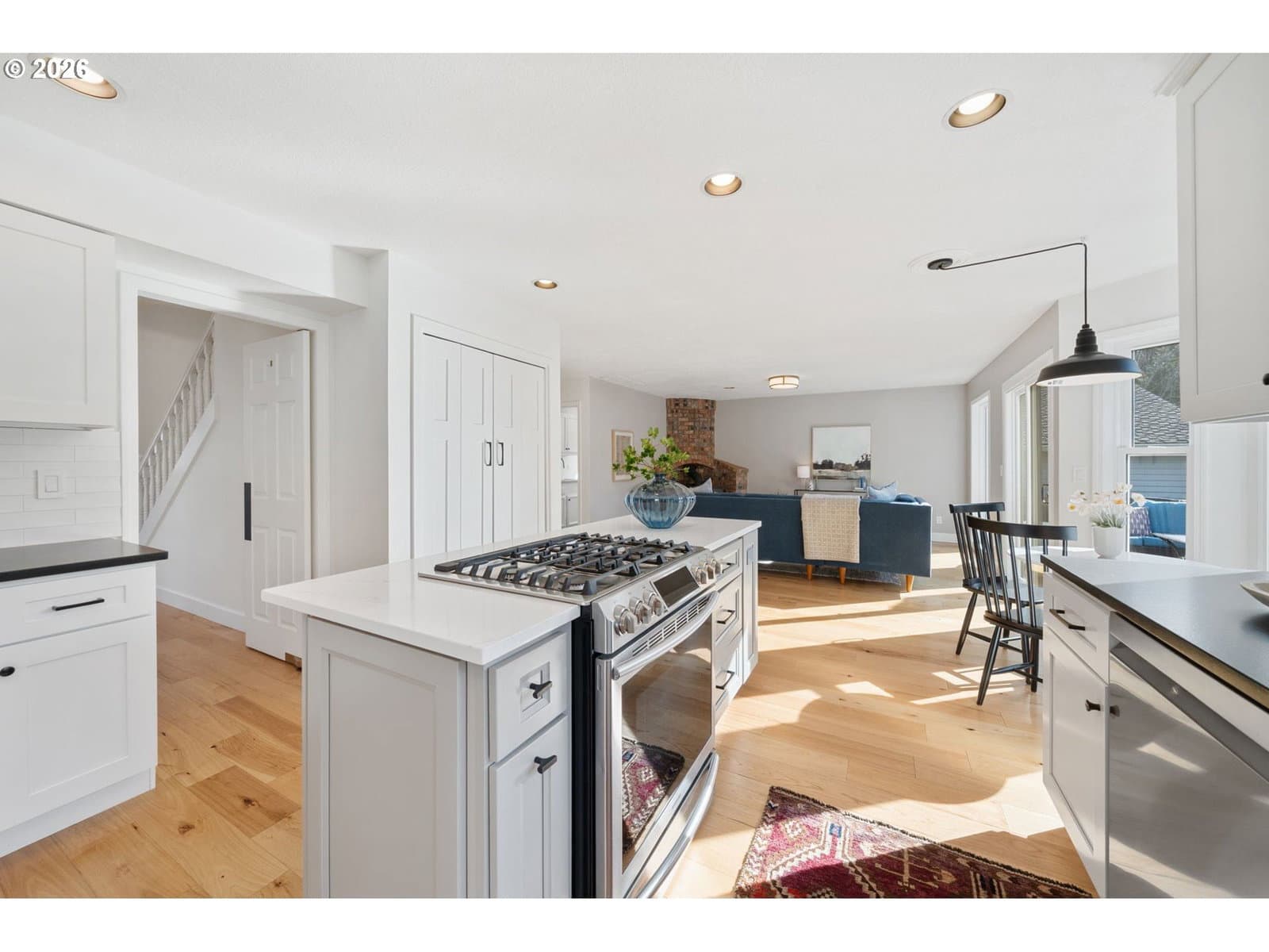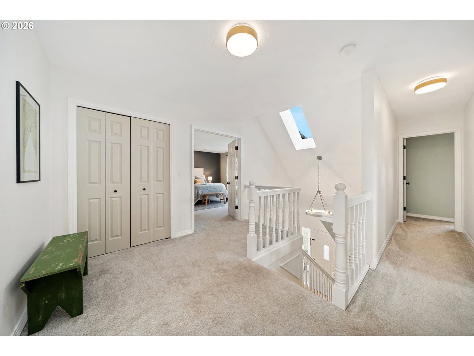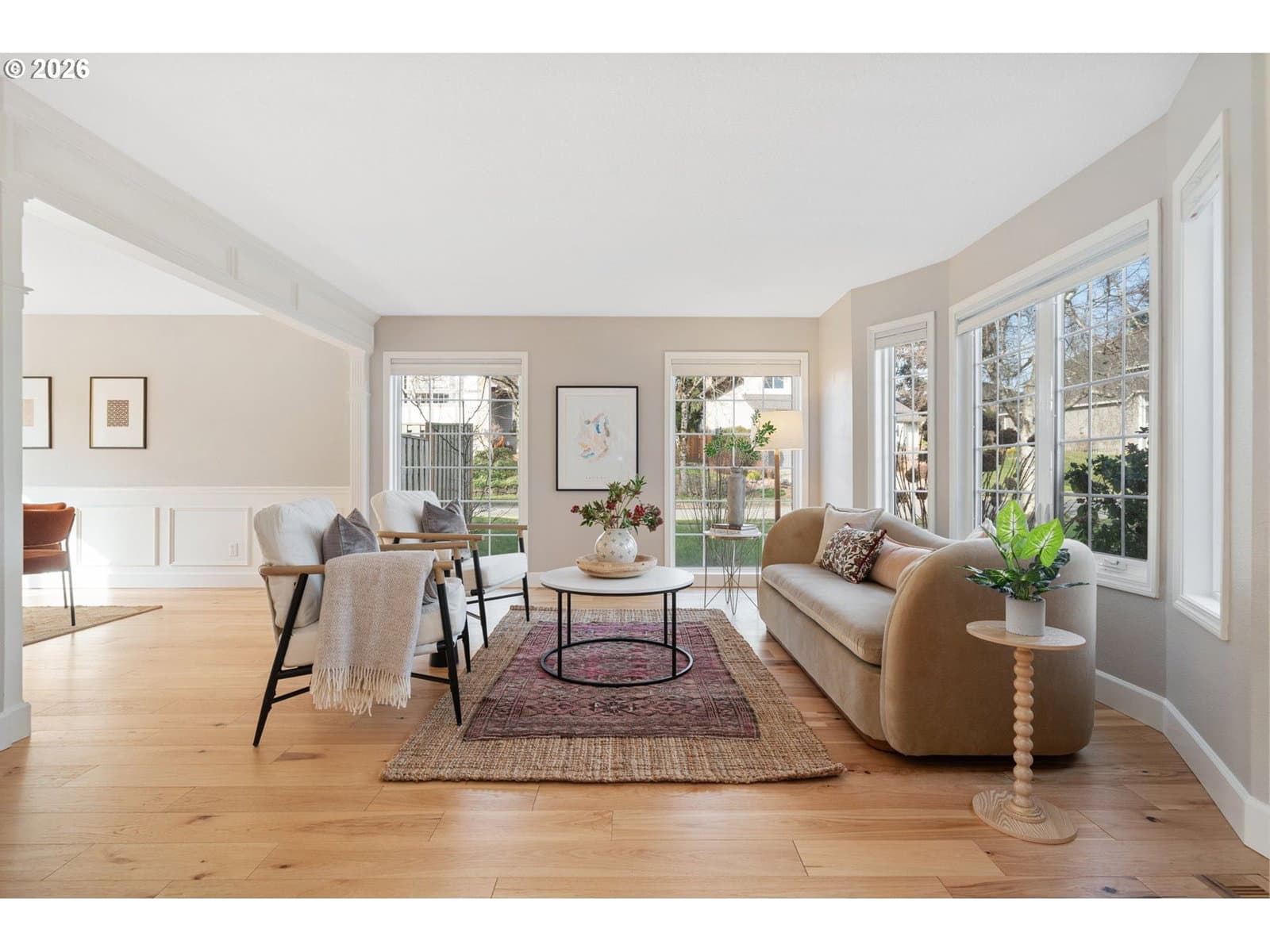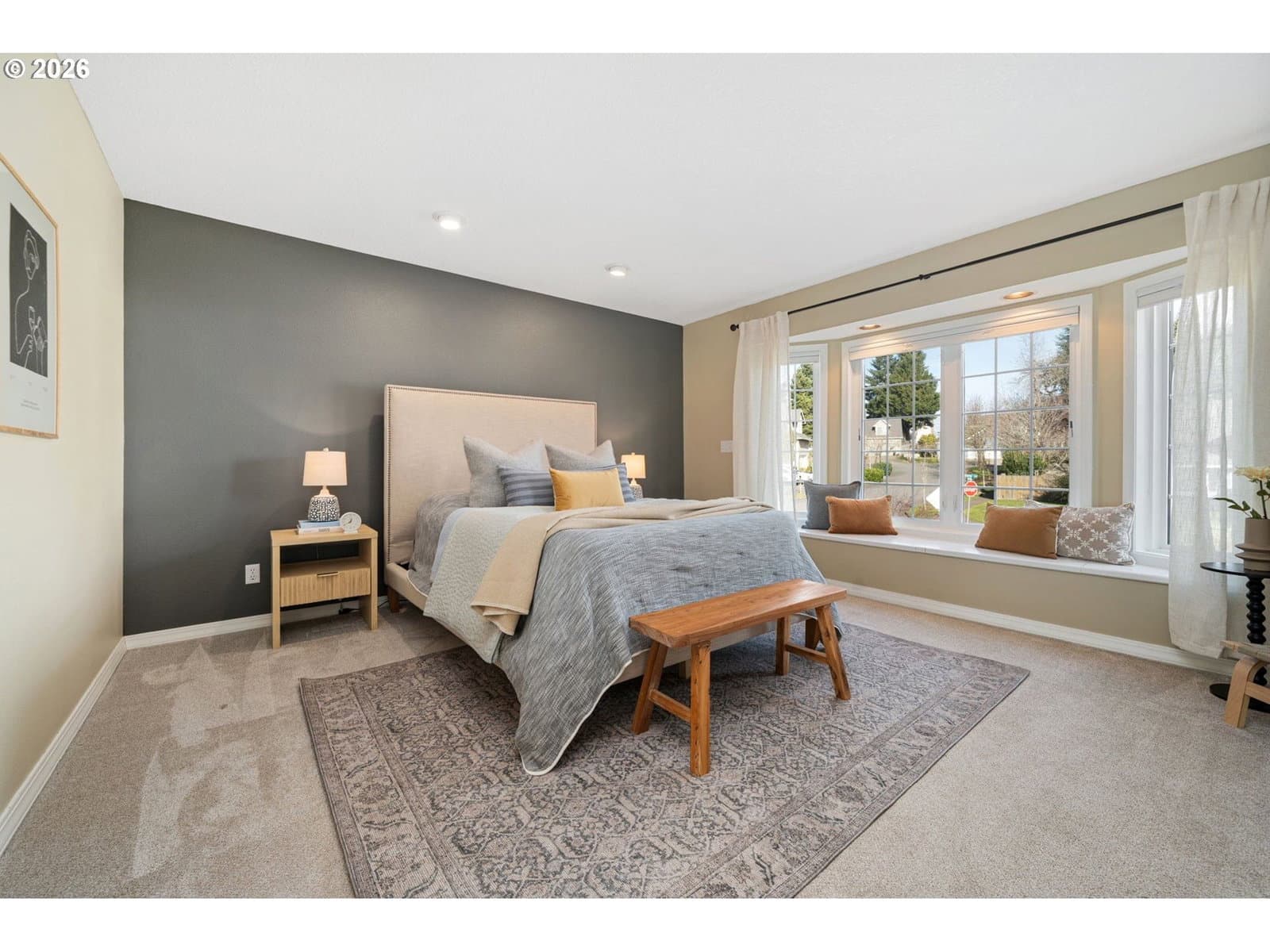 Located on a quiet cul-de-sac in West Linn’s Hidden Springs neighborhood, this well-maintained 4-bedroom, 2.5-bath home offers 2,389 square feet of comfortable living on a flat, fenced corner lot. Known for its established streets and convenient access to parks, pathways, and everyday amenities, Hidden Springs offers a peaceful residential setting with excellent connectivity, and is extremely close to top-rated neighborhood schools - both Trillium Creek Primary and Rosemont Ridge Middle Schools are under 0.3 miles away. The corner-lot placement provides added privacy and flexibility for outdoor use. The main level features a classic circular floor plan with formal living and dining rooms, flowing into the beautifully remodeled kitchen and family room. Completed in 2020, the kitchen showcases quartz countertops, bright shaker cabinetry with cooktop island, and updated appliances—creating a clean, timeless aesthetic. The family room is anchored by a cozy wood-burning stove with brick hearth and opens to a private backyard and deck, ideal for indoor-outdoor living. This space functions as the true gathering area of the home. Upstairs includes four bedrooms and two full bathrooms, with the primary suite thoughtfully separated for added privacy and offering a functional layout ready for future personalization. Major updates include a 50-year roof (2015), crawl space upgrades (2015), new windows, siding, and exterior paint (2017), wide-plank hardwood floors (2018), kitchen remodel and new furnace and A/C (2020), and deck improvements. (2024). Conveniently located near downtown West Linn and Lake Oswego, with easy access to major commuter routes. A well-cared-for home offering comfort today and opportunity to personalize over time.