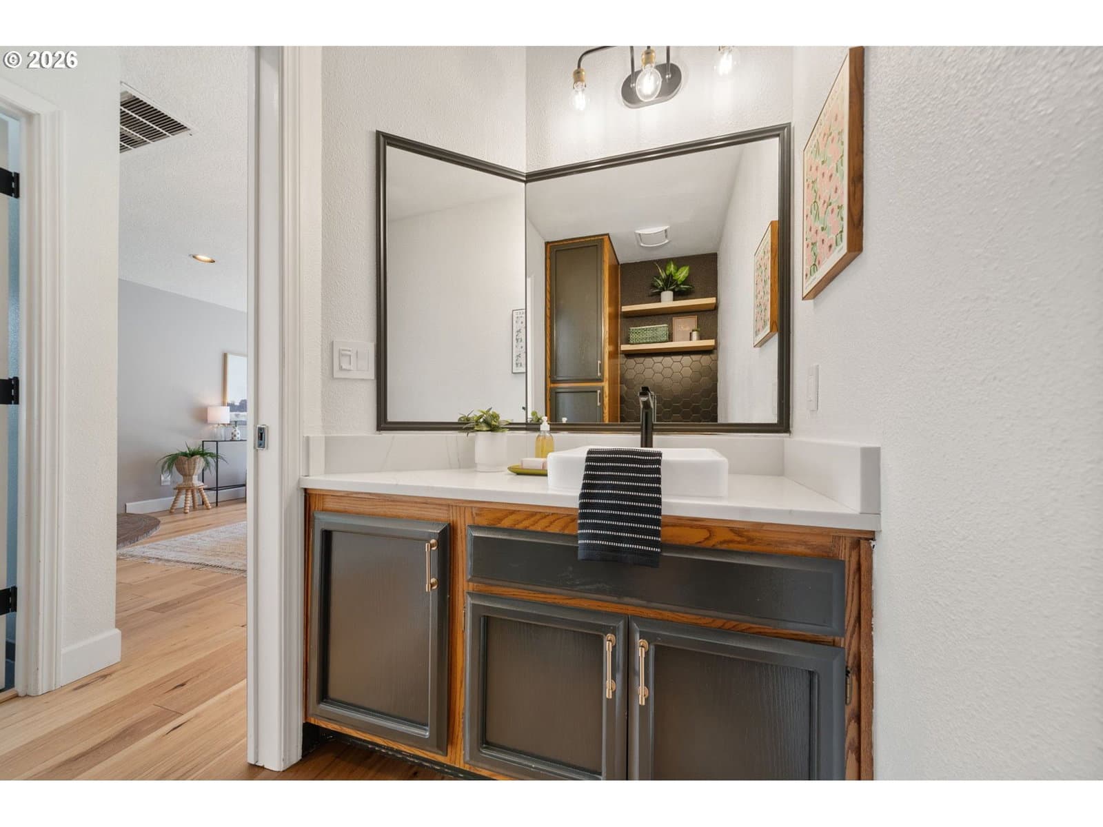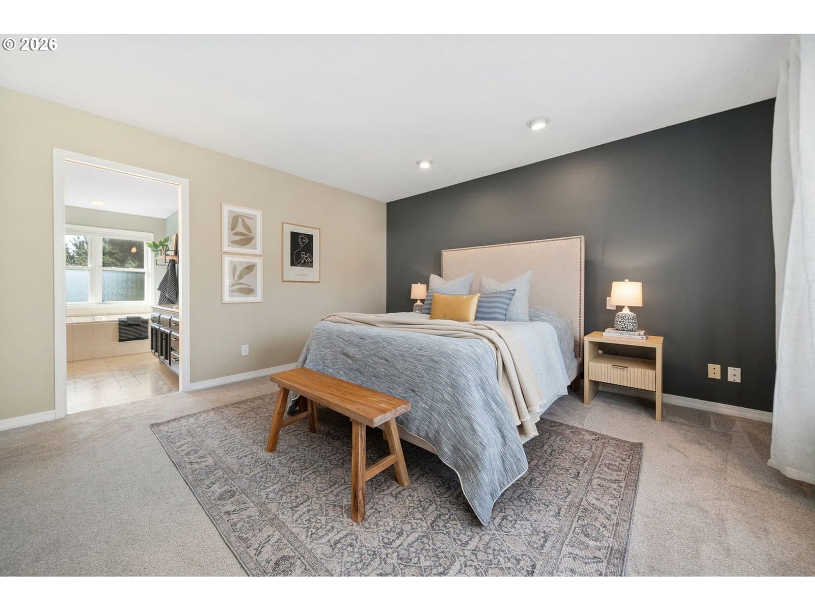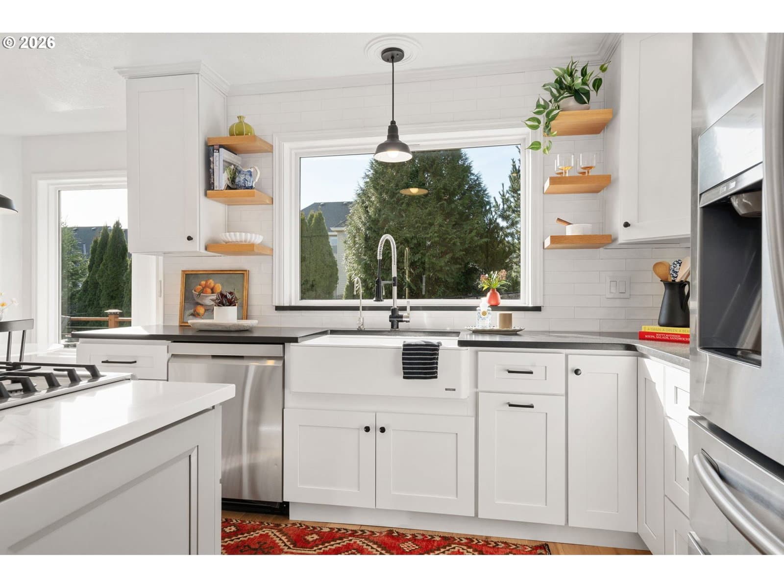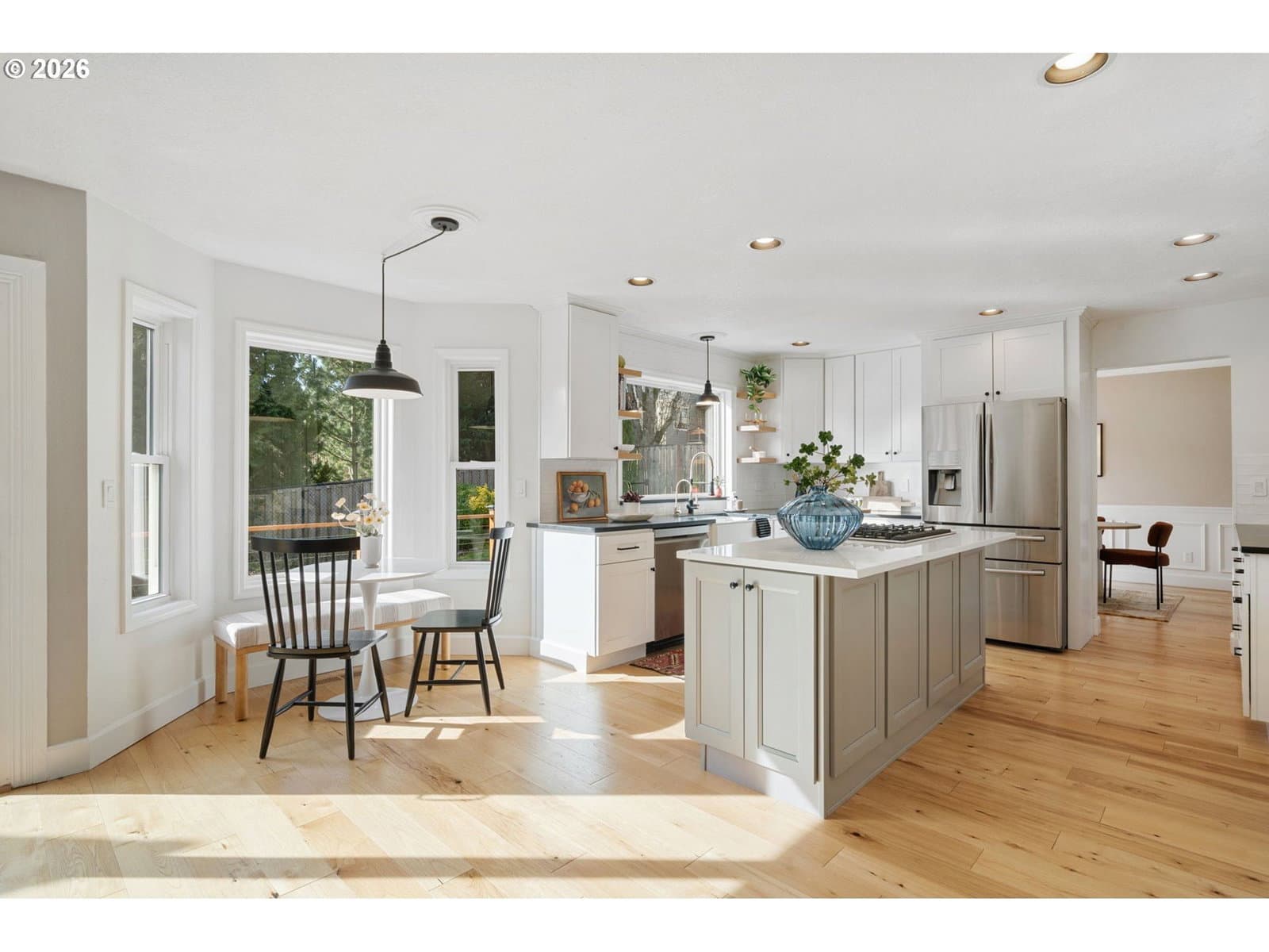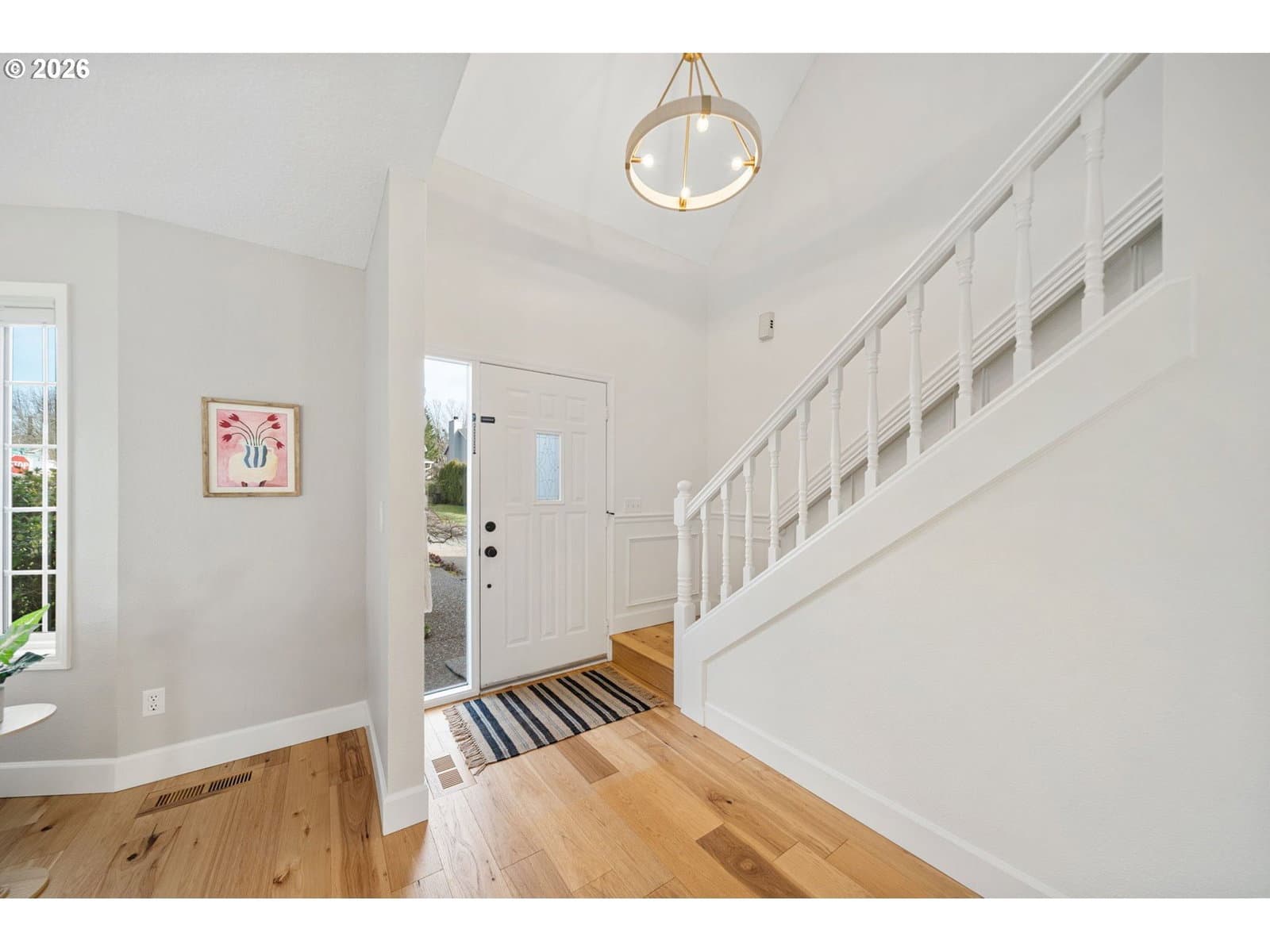 Located on a quiet cul-de-sac in West Linn’s Hidden Springs neighborhood, this well-maintained 4-bedroom, 2.5-bath home offers 2,389 square feet of comfortable living on a flat, fenced corner lot. Known for its established streets and convenient access to parks, pathways, and everyday amenities, Hidden Springs offers a peaceful residential setting with excellent connectivity, and is extremely close to top-rated neighborhood schools - both Trillium Creek Primary and Rosemont Ridge Middle Schools are under 0.3 miles away. The corner-lot placement provides added privacy and flexibility for outdoor use. The main level features a classic circular floor plan with formal living and dining rooms, flowing into the beautifully remodeled kitchen and family room. Completed in 2020, the kitchen showcases quartz countertops, bright shaker cabinetry with cooktop island, and updated appliances—creating a clean, timeless aesthetic. The family room is anchored by a cozy wood-burning stove with brick hearth and opens to a private backyard and deck, ideal for indoor-outdoor living. This space functions as the true gathering area of the home. Upstairs includes four bedrooms and two full bathrooms, with the primary suite thoughtfully separated for added privacy and offering a functional layout ready for future personalization. Major updates include a 50-year roof (2015), crawl space upgrades (2015), new windows, siding, and exterior paint (2017), wide-plank hardwood floors (2018), kitchen remodel and new furnace and A/C (2020), and deck improvements. (2024). Conveniently located near downtown West Linn and Lake Oswego, with easy access to major commuter routes. A well-cared-for home offering comfort today and opportunity to personalize over time.
