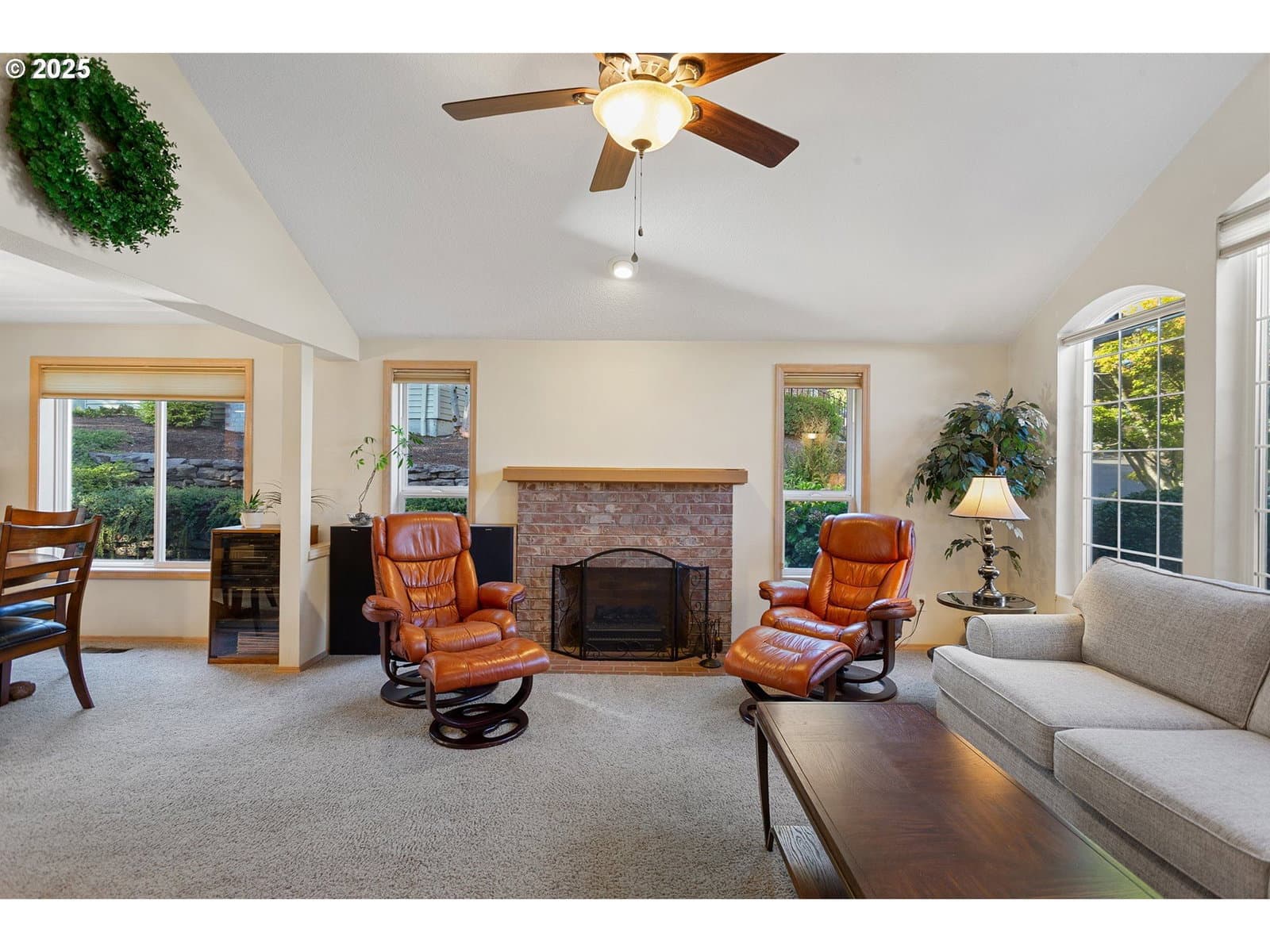 Thoughtfully updated 2-bedroom, 2-bath home in the welcoming Highlands 55+ community. The open living and dining area feels warm and inviting with vaulted ceilings and a brick fireplace. Sliding doors open to a covered patio and a private, landscaped backyard that offers a quiet place to relax or entertain. The home features updated major systems and newer kitchen appliances, including refrigerator, dishwasher, and microwave. Conveniently located near the clubhouse and close to shopping, dining, and golf. Annual HOA dues of $1,110 include basic Comcast cable service, grounds maintenance, and access to the clubhouse. A comfortable, low-maintenance home in a convenient setting.