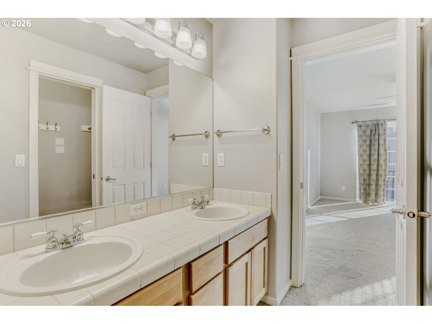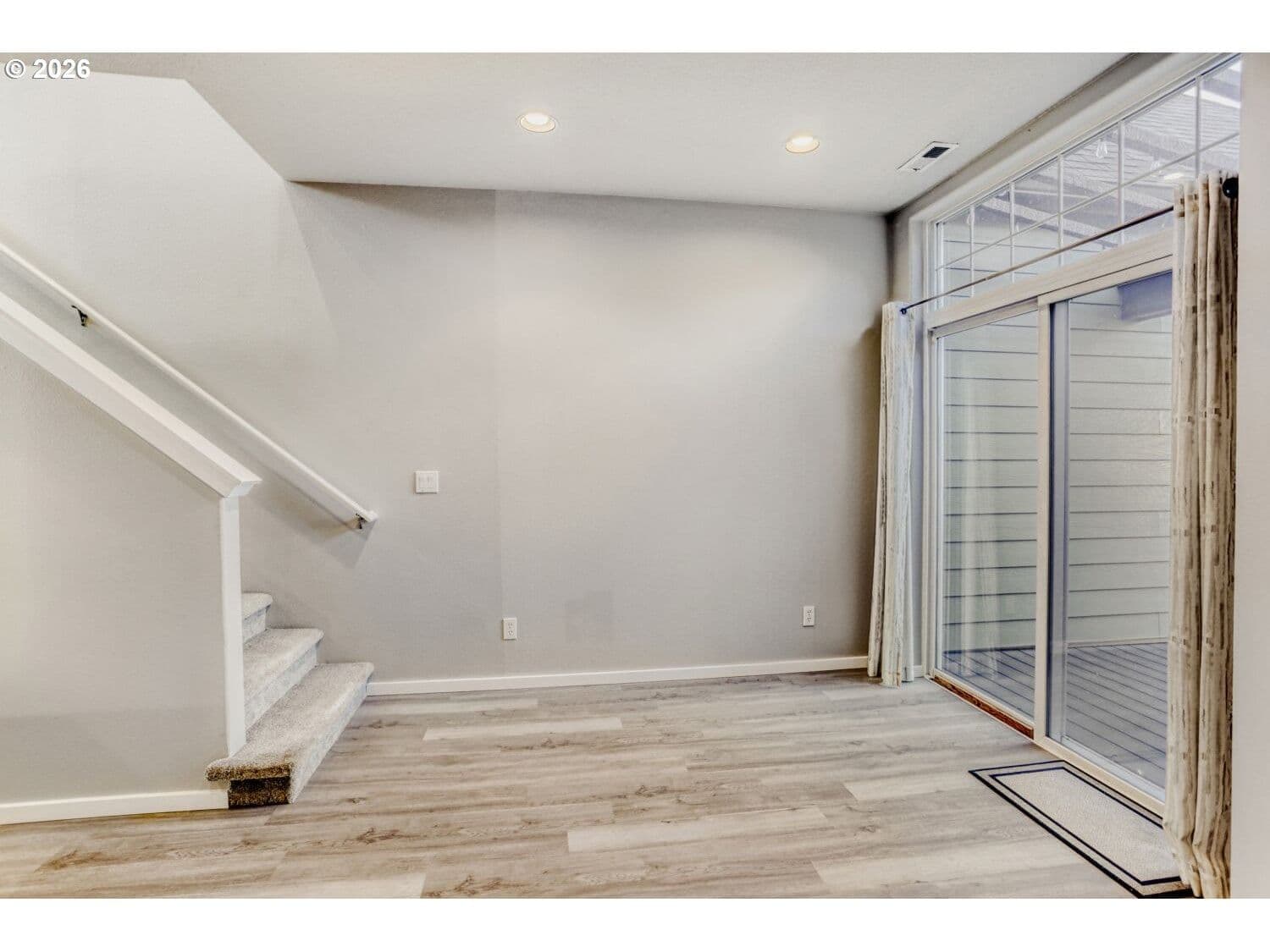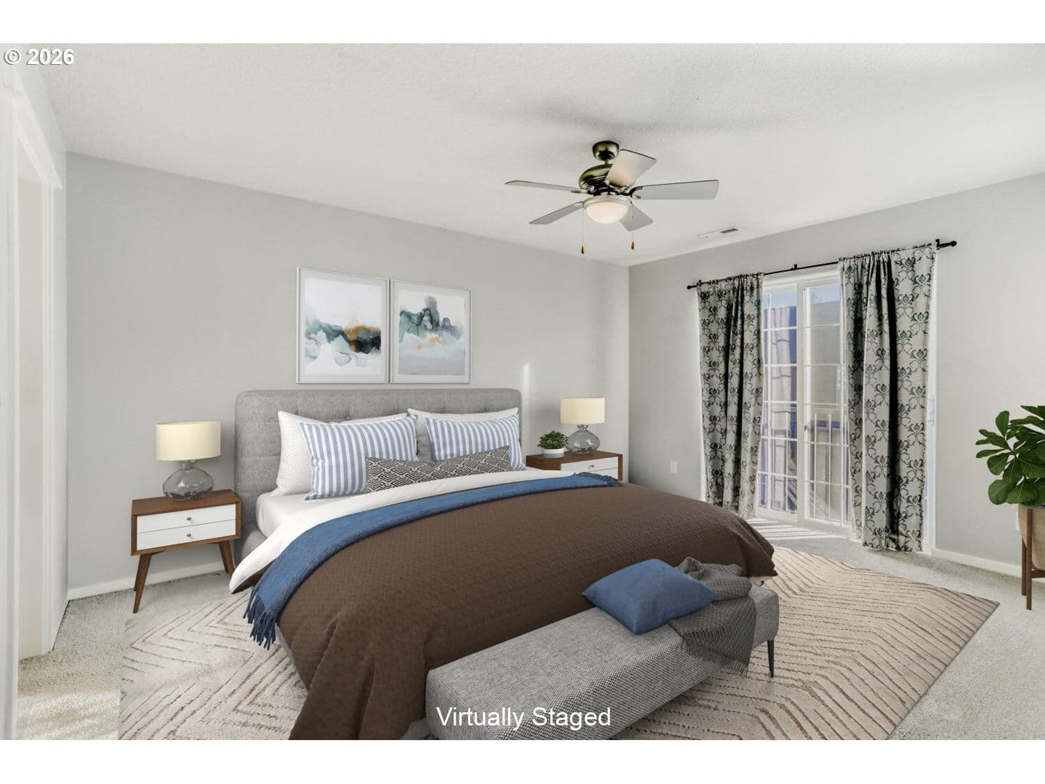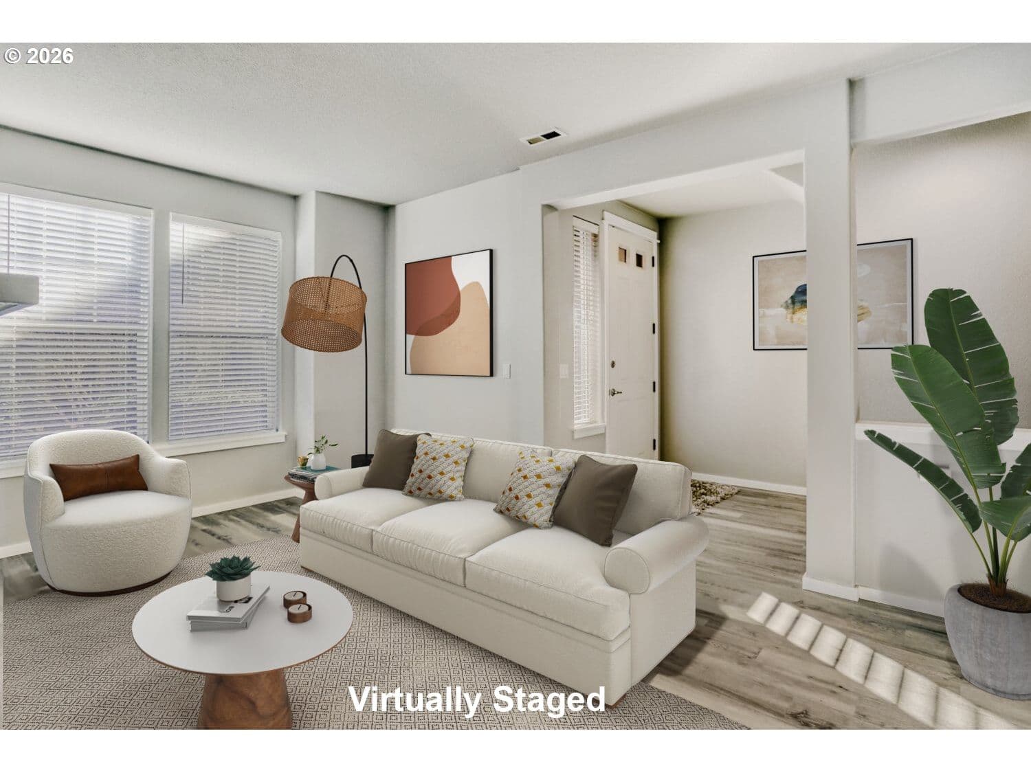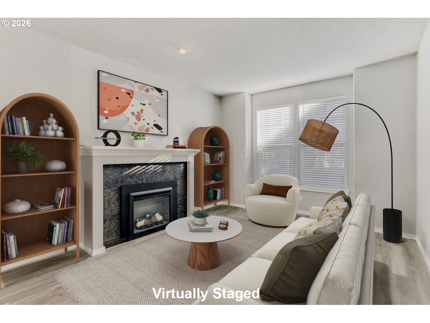 Welcome home to this beautifully updated townhouse-style attached residence offering comfort, convenience, and true move-in-ready living. This light-filled 2-bedroom, 2.5-bath home features a thoughtful floor plan designed for both everyday living and entertaining. Fresh new carpet and updated flooring create a clean, modern feel throughout, while the warm electric fireplace (plumbed for gas and can be converted) anchors the main living space and adds cozy ambiance year-round.The bright and open layout, with 9 foot ceilings, flows seamlessly into the kitchen and dining areas, making the home feel welcoming and functional. Step outside to your private back deck—an ideal spot for morning coffee, evening relaxation, or summer gatherings. Upstairs, both bedrooms offer generous space, with its each with it's own bathroom for added privacy and comfort.Recent upgrades provide peace of mind and long-term value, including a brand-new roof, updated HVAC system, new air conditioning, and included washer and dryer. The attached one-car garage offers secure parking and additional storage, while the overall design ensures low-maintenance living without sacrificing style or function. Garage attic space is not shared with neighbors and is set up for excellent storage.Perfectly situated for today’s lifestyle, this home boasts excellent walkability and a commuter-friendly location with easy access to major routes and nearby public transit. Whether you’re heading to work, meeting friends, or enjoying nearby amenities, everything you need is close at hand.Warm, bright, and thoughtfully updated, this inviting townhouse delivers the ideal blend of comfort, efficiency, and convenience. Simply unpack and enjoy—this home is truly move-in ready. [Home Energy Score = 8. HES Report at https://rpt.greenbuildingregistry.com/hes/OR10242130]