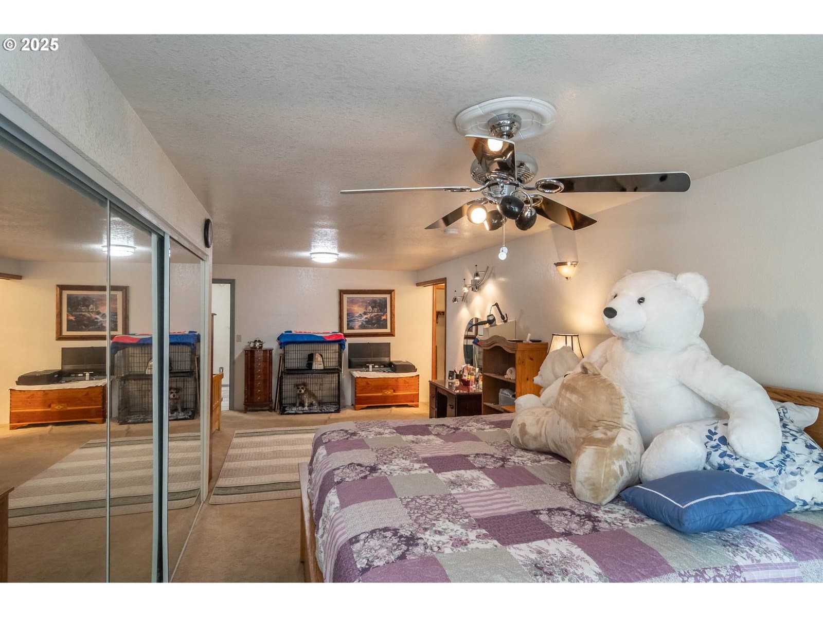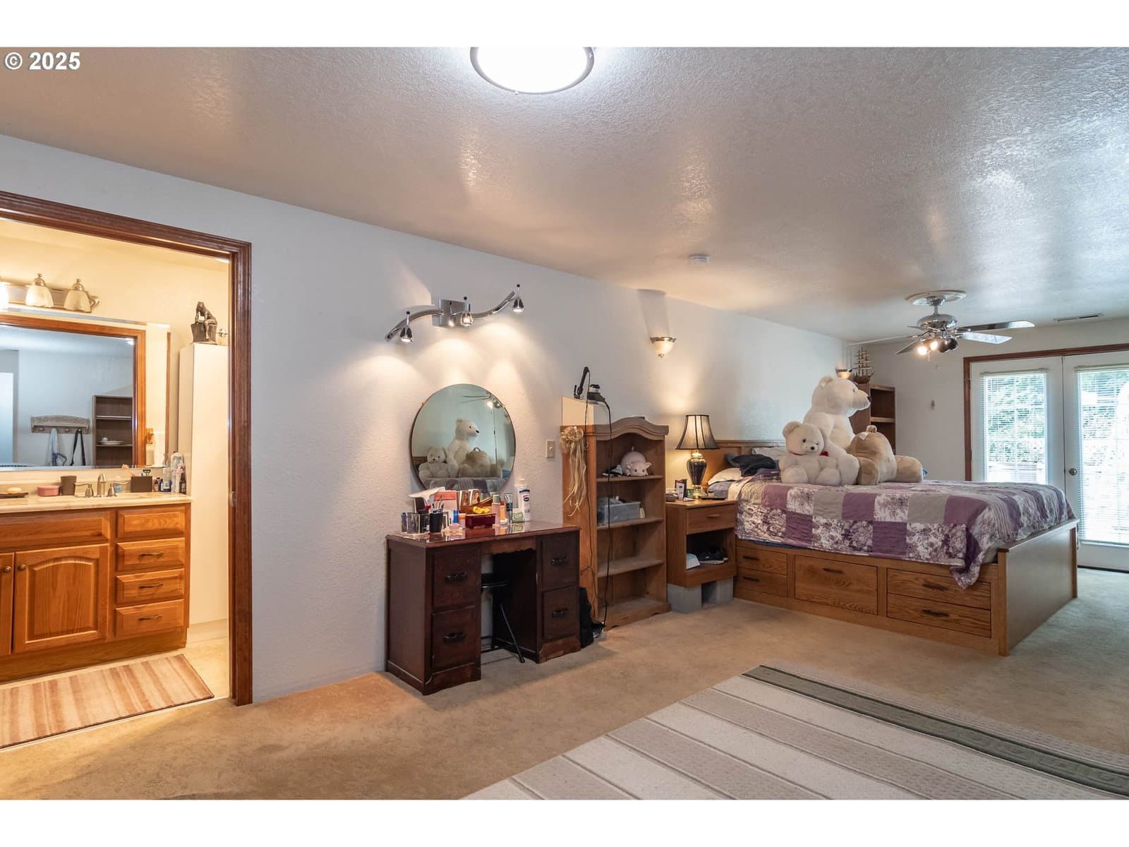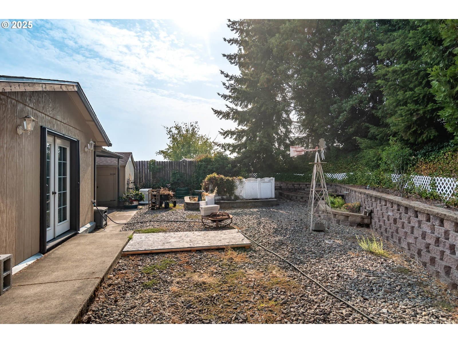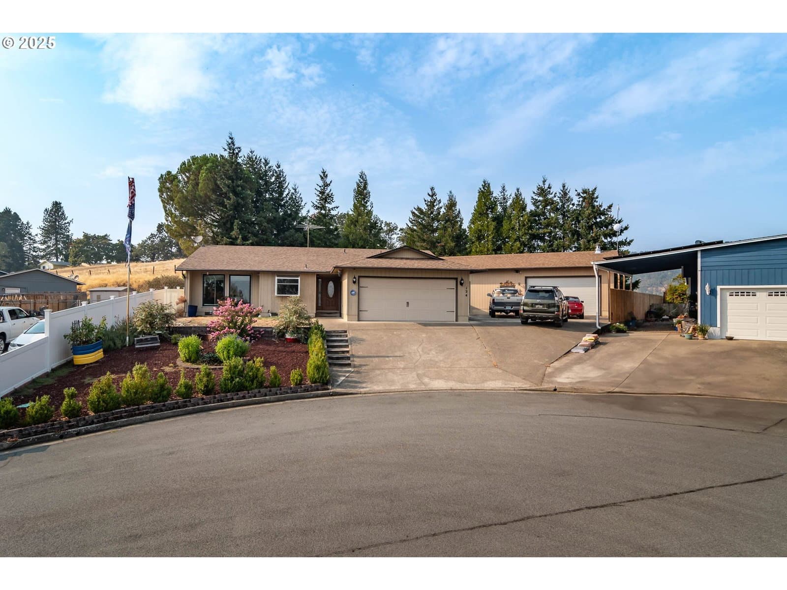 This spacious home is set on an oversized .25-acre lot in a quiet cul-de-sac. It features a spacious living room with French doors that open onto a covered patio area. The updated kitchen boasts granite countertops, custom cabinets, stainless steel appliances, and a garden window. New windows have been installed throughout the home. The expansive primary suite includes an oversized closet, a walk-in closet, and French doors that open to the backyard. Both the front and backyards are terraced, fenced, and designed for low maintenance, with the front yard featuring an in-ground sprinkler system. Off the covered back patio, there is a large garden shed. The property backs up to a large ranch, providing added privacy to the backyard. Additionally, there is a large shop equipped with 3 roll-up doors, a regular door, a separate office space, and a wood stove. Attached to the back of the shop is an extra room with multiple potential uses. Bonus features include ample parking and a propane Generac system. This home truly offers something for everyone to enjoy. Seller is motivated, bring offers.