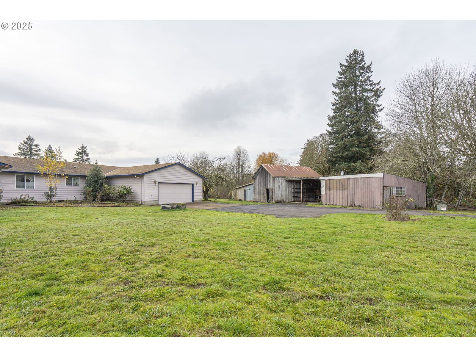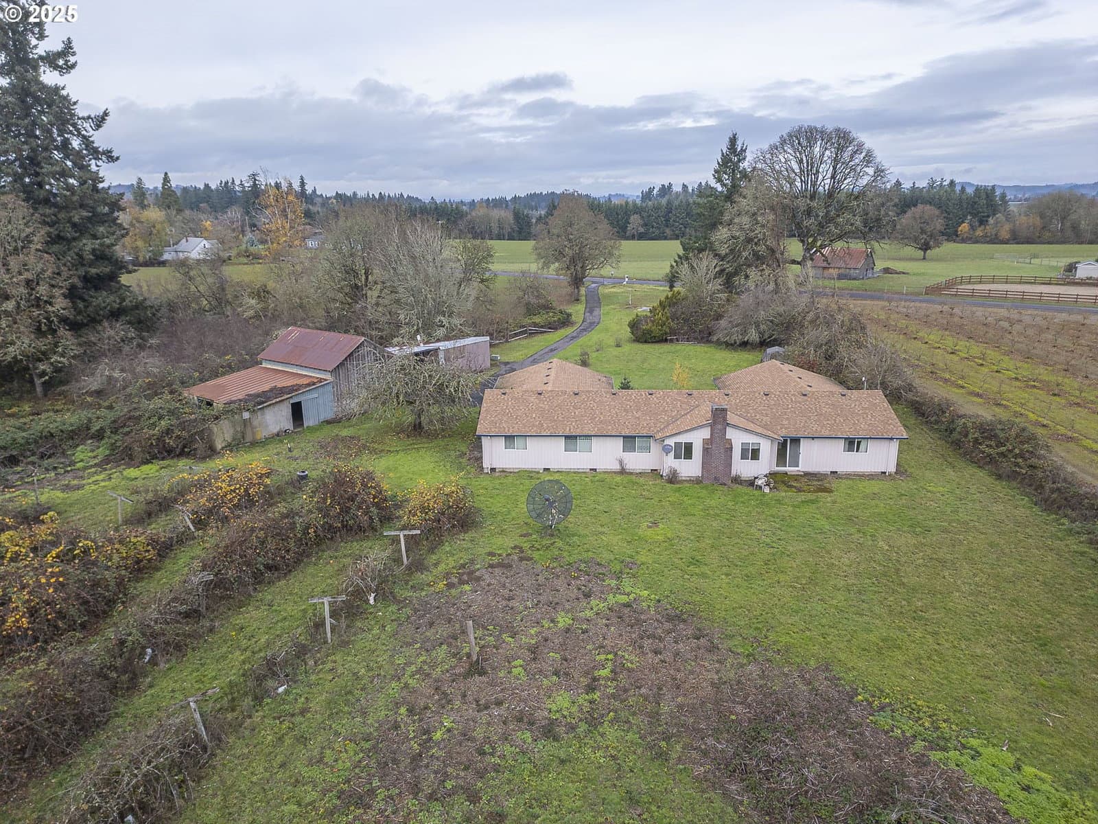 Location is everything! Situated in a peaceful, beautiful setting, this custom single-level home offers 2,800 sq ft on 18 acres. The main wing features three bedrooms, including a spacious primary suite with ensuite as well as an additional full bath. The separate guest suite/flex space includes its own exterior entry, access to the laundry area and garage, and full bath—perfect for guests, caretaker, bonus area or multi-generational living. Enjoy vaulted ceilings and a cozy fireplace in the living room, which connects to a versatile office with closet. The home also offers both formal and casual dining areas adjoining a large, open kitchen. Outside, explore the old barn, a path leading to Panther Creek, kiwi vines, holly berry trees and an apple tree. A good amount of level ground and a fully paved driveway add to the appeal. A must-see property—peaceful, private, and easy to show! Kiwi bushes and holly berry trees