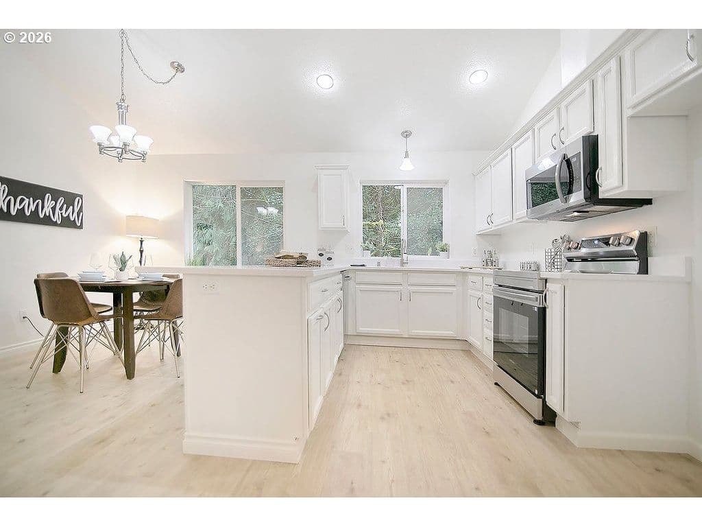 Kelso -- UPDATED Throughout -- 3 Bedroom / 2.5 Bathroom -- 1,448 SqFt -- Great Room Layout -- NEW Carpet & Laminate Flooring -- Vaulted Living Room -- Kitchen w/ NEW Quartz Countertops -- NEW Stainless Steel Dishwasher, Range & Microwave -- Dining Room -- Primary Bedroom w/ Full Bath & Walk-In Closet -- 2nd & 3rd Bedrooms with/ Walk-in Closets -- Laundry Room -- Heat Pump w/ AC -- NEW Interior & Exterior Paint -- Vinyl Windows -- Hardi Plank Siding -- NEWER Roof -- Covered Front Porch -- Deck -- Double Car Garage -- Dead End Street -- Minutes To Kelso / Longview Shopping & Services -- Easy Access to I-5 -- Approximately 45 Minutes Commute to Vancouver / PDX Areas