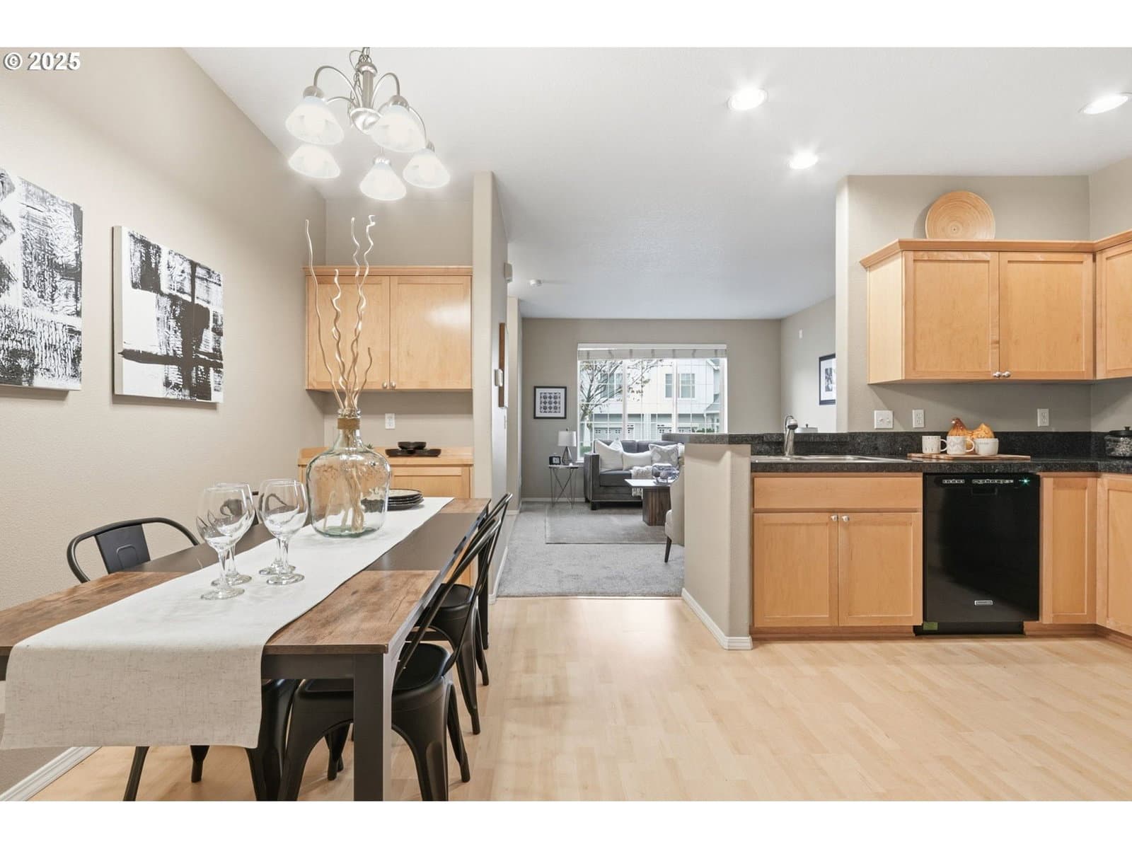 This exceptional bright and inviting townhome is situated on the tree-lined streets of Arbor Station, offering a serene setting. Featuring a spacious front patio enclosed by a wrought iron fence, a functional and efficient floorplan, with an open-concept that flows seamlessly between the living and dining area making it perfect for both everyday living, and entertaining. The main level features a living room with a cozy fireplace, while the kitchen is equipped with granite counters, gas cooking and a generous pantry. Right off the kitchen is a dining area with a built in cabinet, and a half bath. Upstairs is a large vaulted loft perfect for a family room, office or play room. The adjacent bedroom with vaulted ceilings has a walk in closet followed by a full bathroom and laundry room. The primary suite on the opposite side of the home for privacy has vaulted ceilings, french doors that lead to the en-suite bath with soaking tub, dual sinks, walk-in shower and closet. The home includes a 2 car finished garage with keyless entry and central air conditioning. The property is part of an exclusive community with a comprehensive HOA that is one of the lowest costs in the area and includes internet, exterior maintenance, insurance and access to the clubhouse party room, gym with all new workout equipment ,kitchen, pool, hot tub and community parks within. Located blocks from 2 community parks, near Max, Nike, Intel, major highways, bus routes, schools, dining, shopping and the scenic walking trails of the Tualatin Hills Nature Park.View the video walk through at: https://tinyurl.com/h2wzm3eb