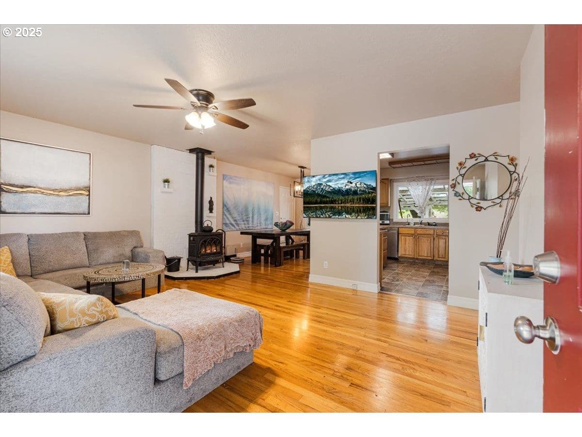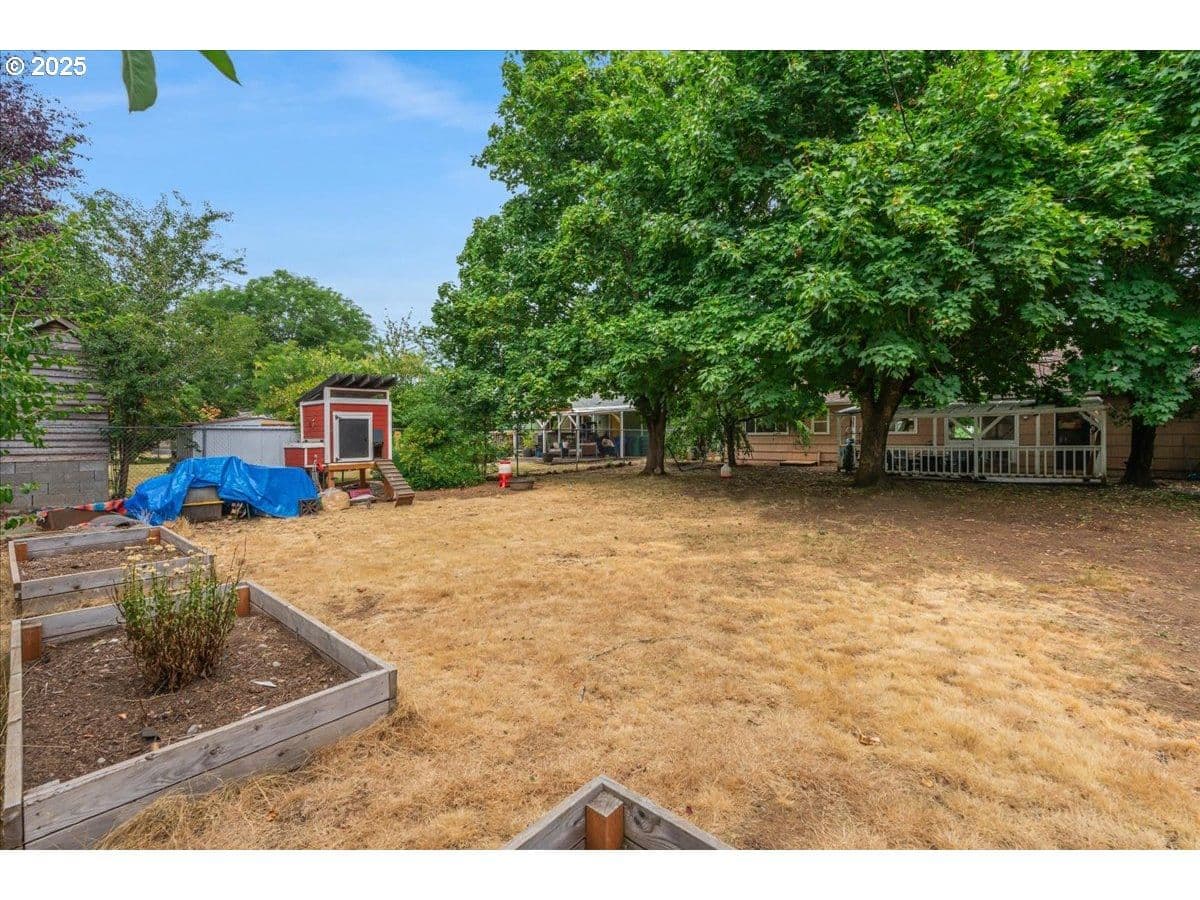 Ding dong! Your adorable new life is calling, and it comes with a brand-new hat! Get ready to kick off your shoes and feel instantly at home in this sweet, single-level charmer. With a recently installed roof (peace of mind, check!) and hardwood floors throughout, this place is ready for a dance party. It has an easy-breezy flow that makes entertaining a cinch.The kitchen is roomy enough for all your culinary adventures (hello, counter space!), and it opens right into the dining area. With three comfy bedrooms and one full bath, it’s just the right size. Laundry in the garage means an easy back door dash to the yard. But the real star? The HUGE backyard! It’s a blank canvas for summer BBQs, epic garden projects, or just chilling on the patio. Don’t wait—this one’s a keeper! [Home Energy Score = 3. HES Report at https://rpt.greenbuildingregistry.com/hes/OR10074546]