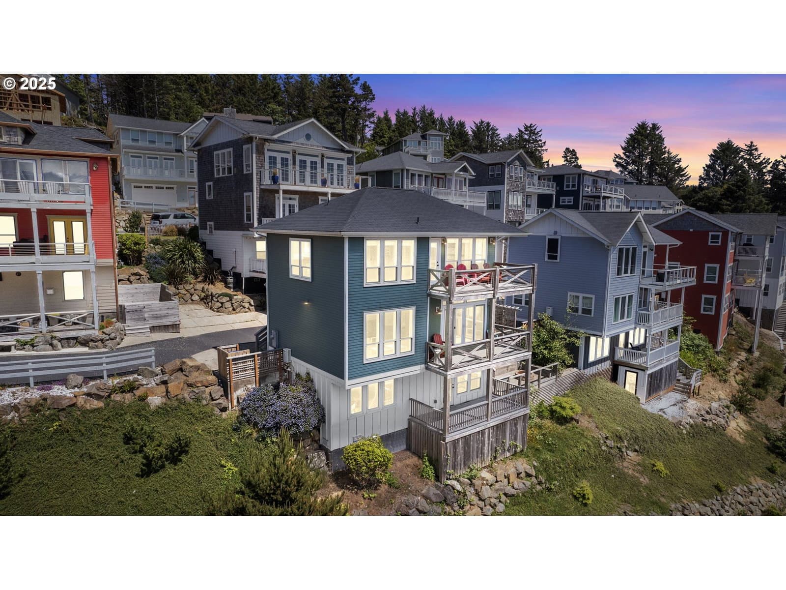 Welcome to this thoughtfully designed Olivia Beach home, where coastal charm meets modern comfort. Built in 2018, this furnished 3-bedroom, 2.5-bathroom property offers 1,871 square feet across three well-planned levels—perfect as a full-time residence, vacation retreat, or short-term rental investment.(This home has an active STR license -new owners can easily obtain license without being on waitlist, making it a seamless opportunity for investors).The upper level offers flexible use: it can serve as a traditional family room with an adjoining primary suite or be enjoyed as a spacious retreat with a private sitting area, 2nd gas fireplace, and deck with a peekaboo ocean view.From the second and third floor balconies, enjoy a clear view of Siletz Bay fireworks on the 4th of July! On the main level, hardwood floors and a ceiling fan set a warm tone in the living room, which is further cozyed by a gas fireplace. Thoughtful touches throughout enhance the home’s inviting ambiance. The open-concept kitchen, dining, and living spaces create a perfect environment for entertaining or unwinding. The kitchen boasts granite countertops and stainless-steel appliances, while the living area opens onto a covered deck with ocean glimpses. The lower level includes two comfortable guest bedrooms and a full bathroom, offering privacy and flexibility for family and visitors. Each level features its own covered deck, extending your living space outdoors rain or shine. Outside, you’ll find a built-in firepit, perfect for cozy evenings. Three parking spaces provide added convenience. A 10-minute walk takes you to the beach or the local Nelscott restaurants. Plus enjoy a wealth of community amenities including an outdoor pool, exercise room, playground, and sand volleyball courts, perfect for relaxation and recreation year-round. Whether you're after a turnkey investment or personal beach retreat, this well-kept home offers style, comfort, and a prime Oregon Coast location!