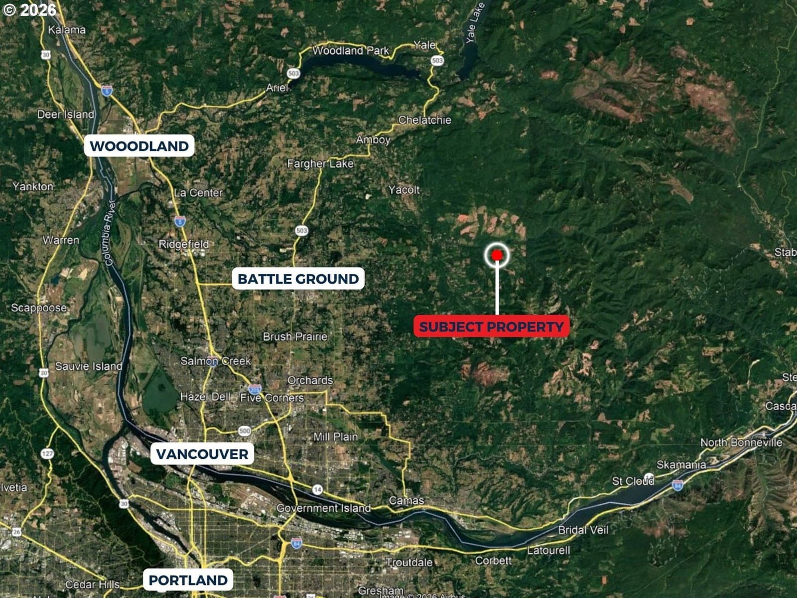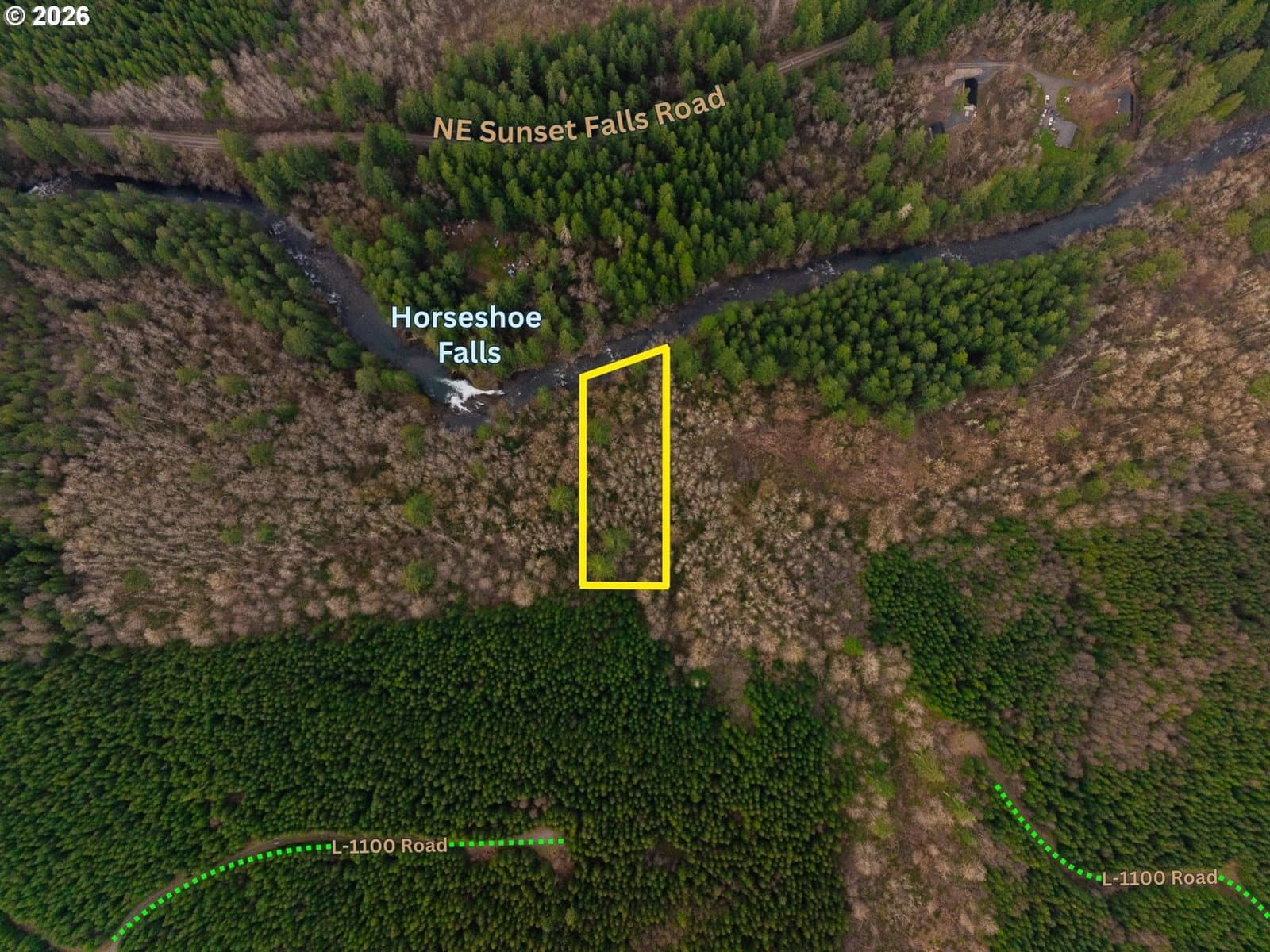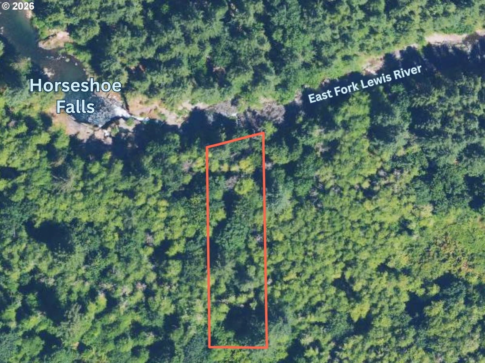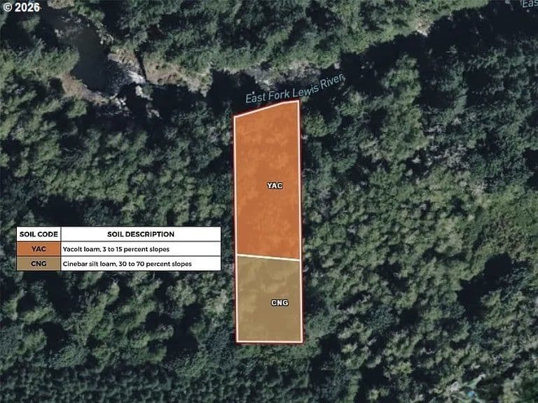 1-acre lot featuring over 100 feet of frontage on the East Fork Lewis River with views of Horseshoe Falls. It borders the Yacolt Burn State Forest, which spans over 90,000 acres and is known for hiking, mountain biking, horseback riding, ORV riding, and camping. The East Fork Lewis River is renowned for whitewater rafting and excellent fishing featuring salmon runs (chinook, coho, chum) and trout (rainbow, cutthroat, steelhead). This parcel is heavily secluded and private. It is accessed by traversing a network of forest service roads and culminates with a short hike to the property. It best-suited as a recreational basecamp, weekend getaway, or camping spot, but could offer potential for establishing a dry cabin. Located east of Battleground and within reasonable proximity of Portland. This is a rare opportunity to own an extremely private, secluded riverfront setting with a waterfall view surrounded by natural beauty & immense public land to explore.